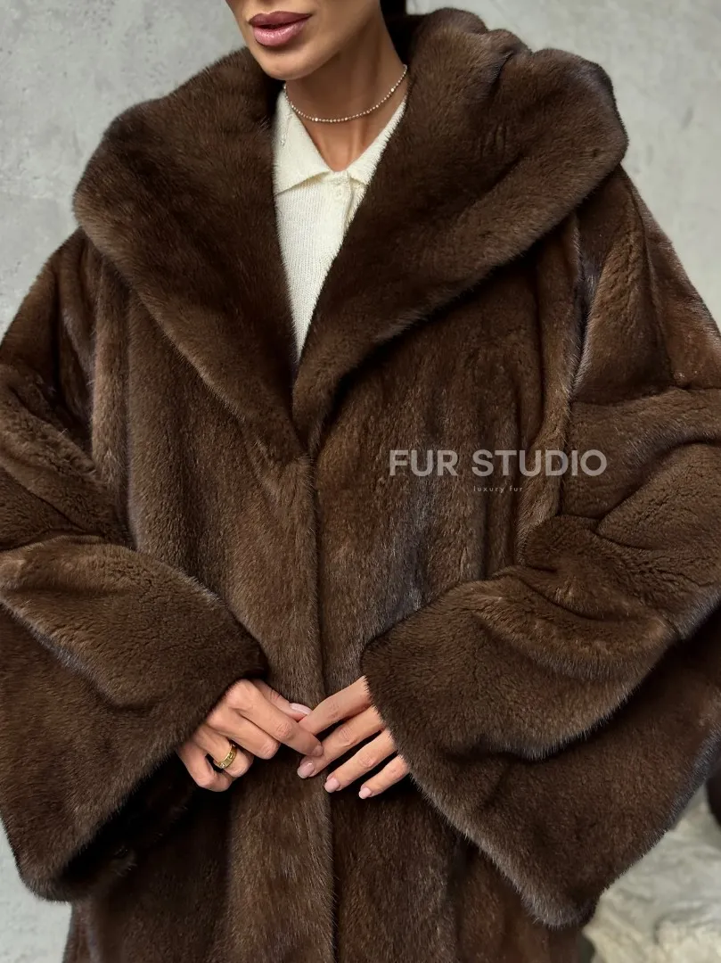 Мех данной шубы аукционная норка , цвет коричневый. Предлагается в размерах от 42 до 56 (oversize). Длина модели 70-75 см, что выгодно подчеркивает фигуру девушек. Эта модель идеально подойдет для девушек и женщин, предпочитающих роскошные натуральные меха.