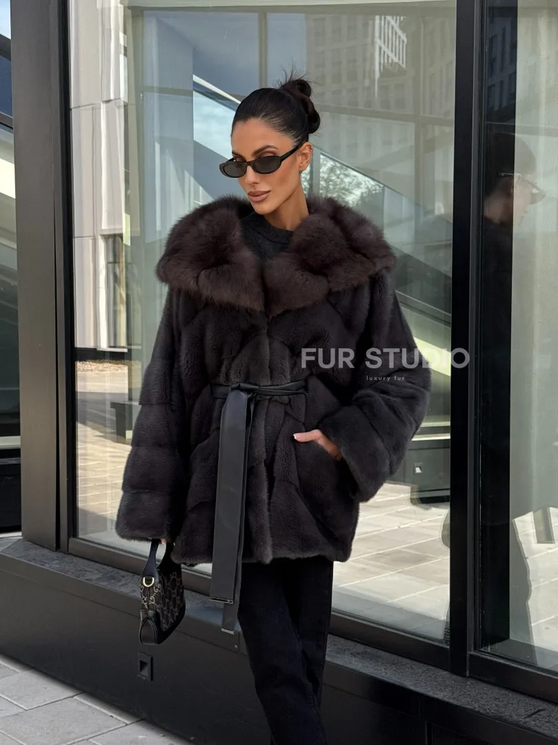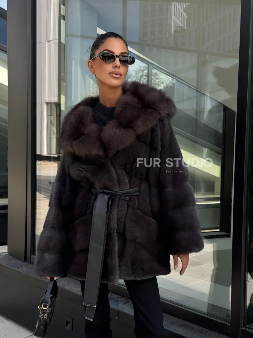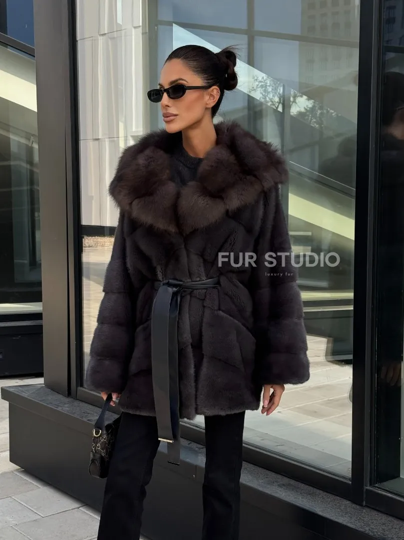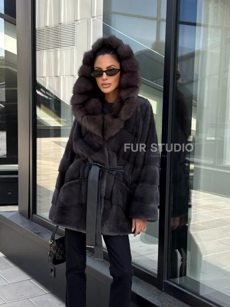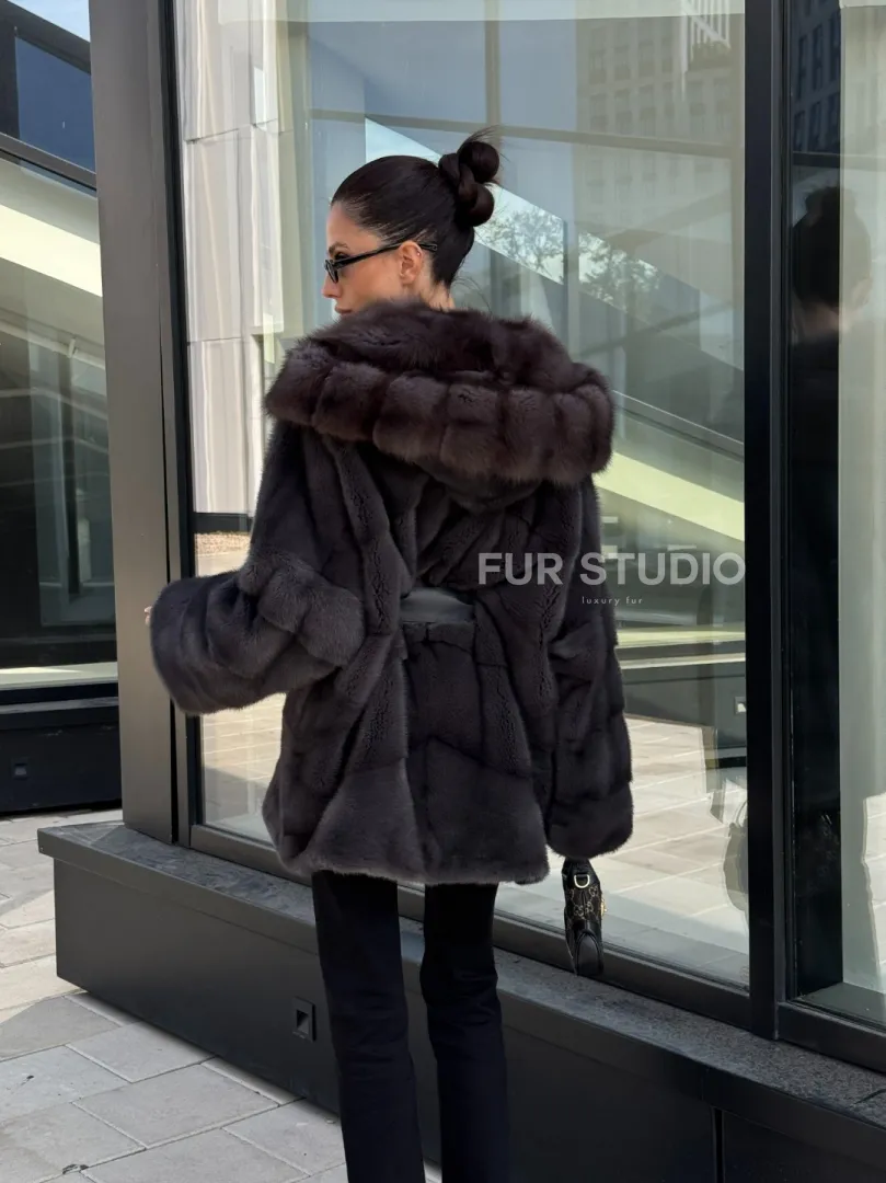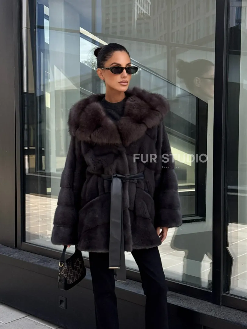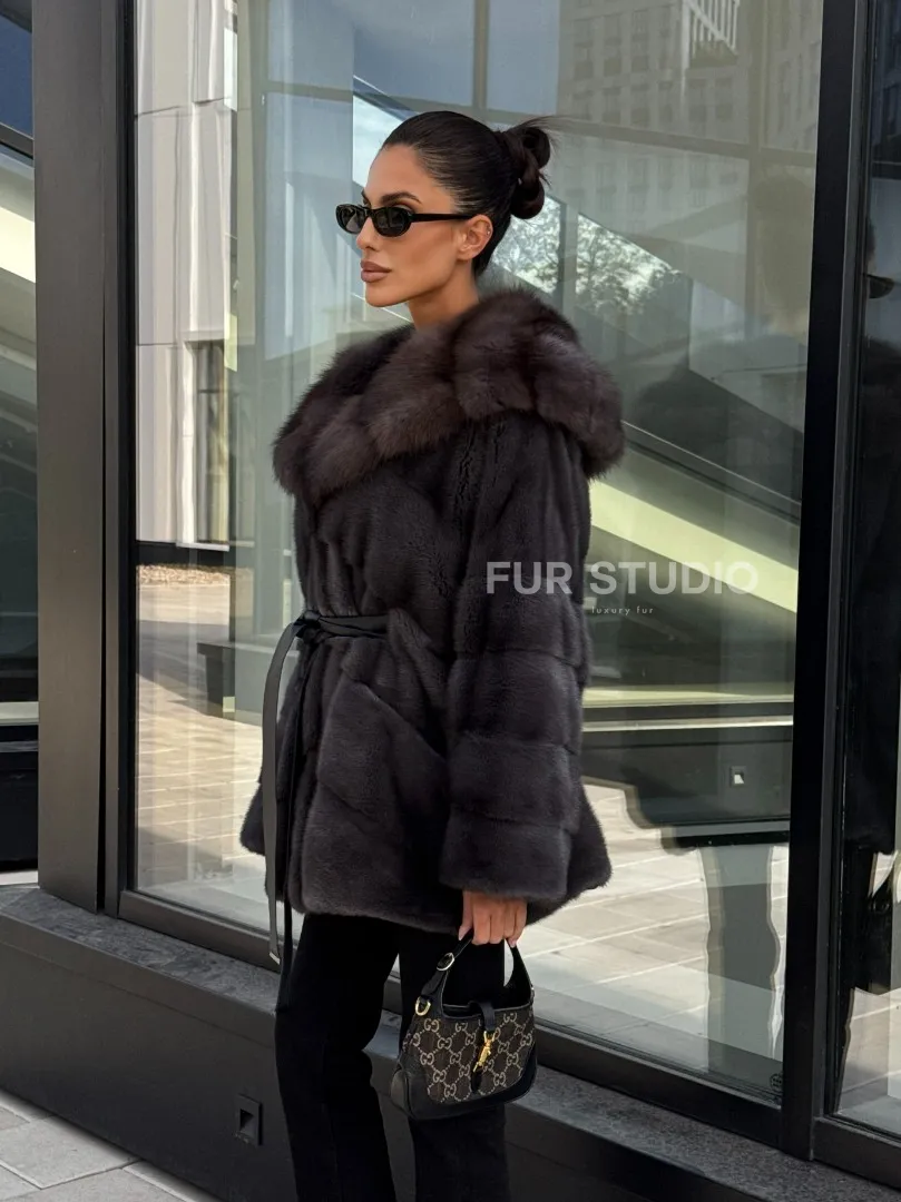 Норковый полушубок с меховым капюшоном из куницы, цвет графит доступна для покупки в нашем шоуруме Furs Studio в Москве. У нас так же есть доставка во все города России. Добавьте немного роскоши в свой гардероб с этой шубой, которая будет служить вам многие годы.