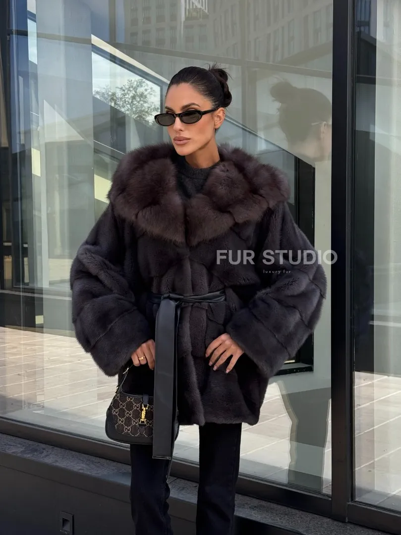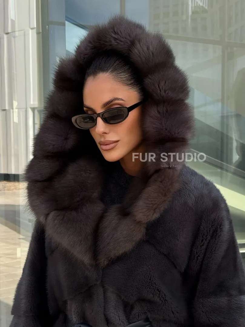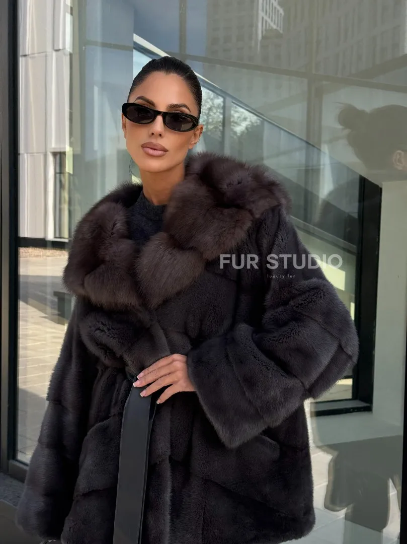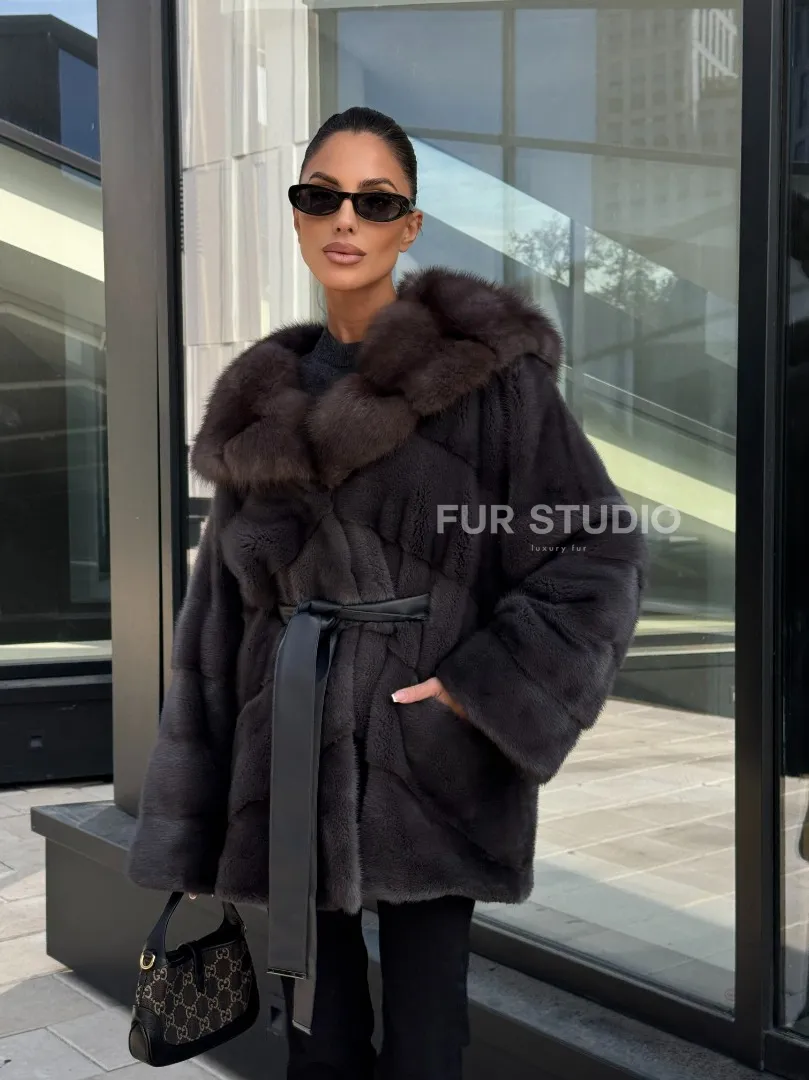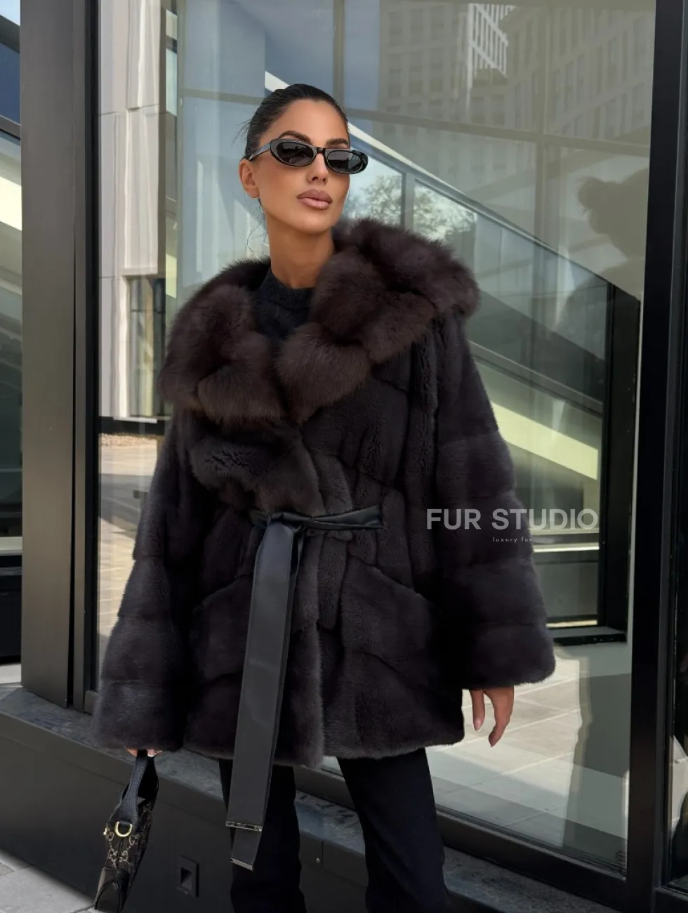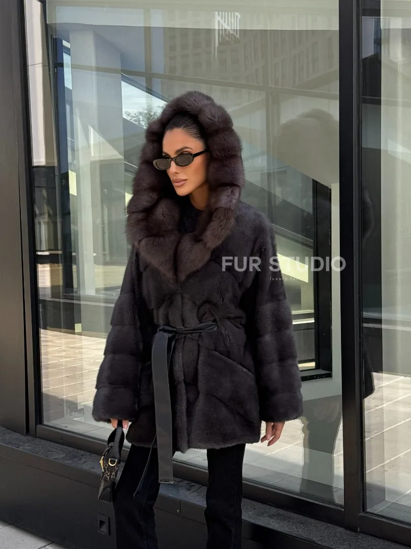 Норковый полушубок с меховым капюшоном из куницы, цвет графит доступна для покупки в нашем шоуруме Furs Studio в Москве. У нас так же есть доставка во все города России. Добавьте немного роскоши в свой гардероб с этой шубой, которая будет служить вам многие годы.