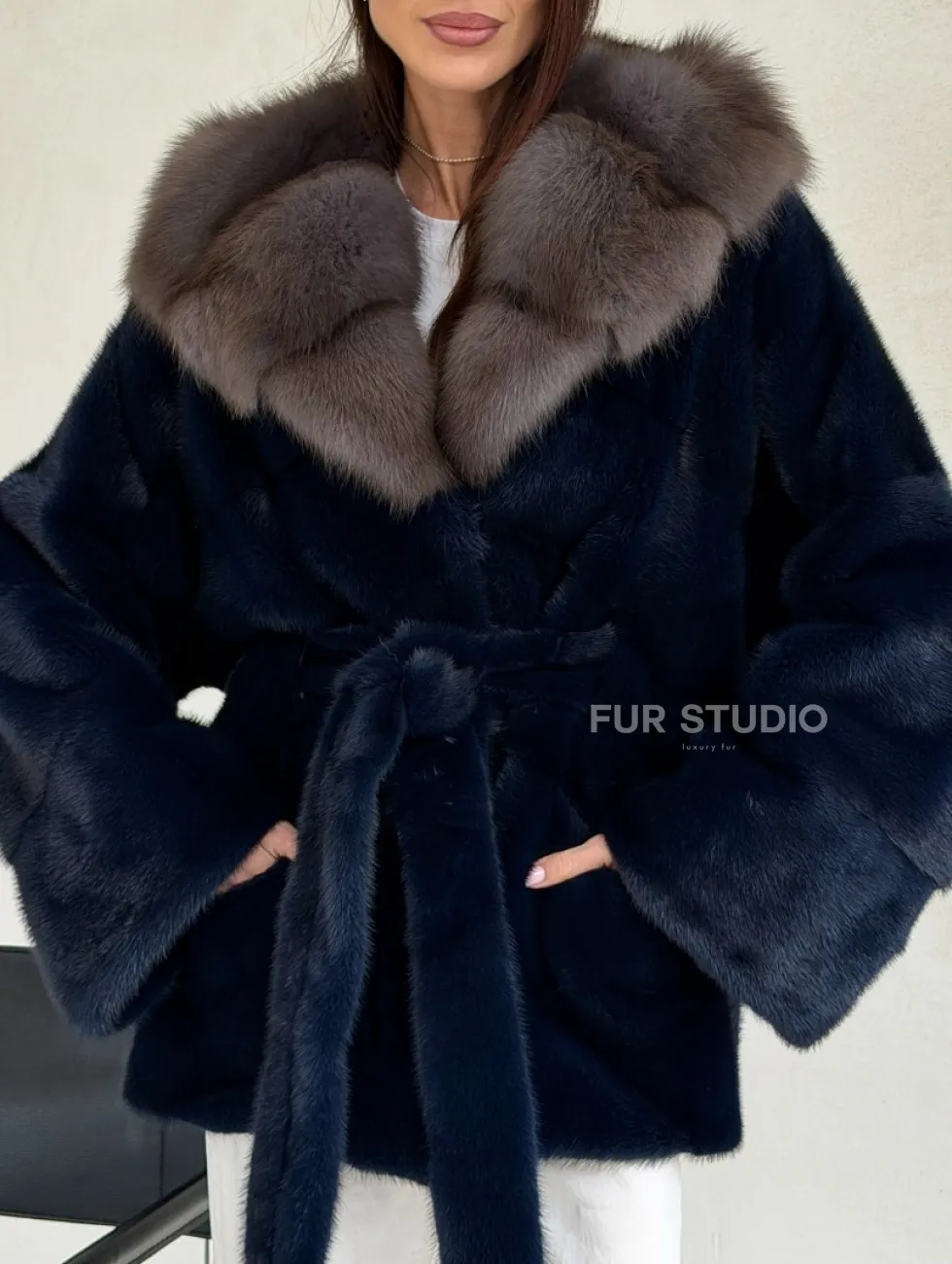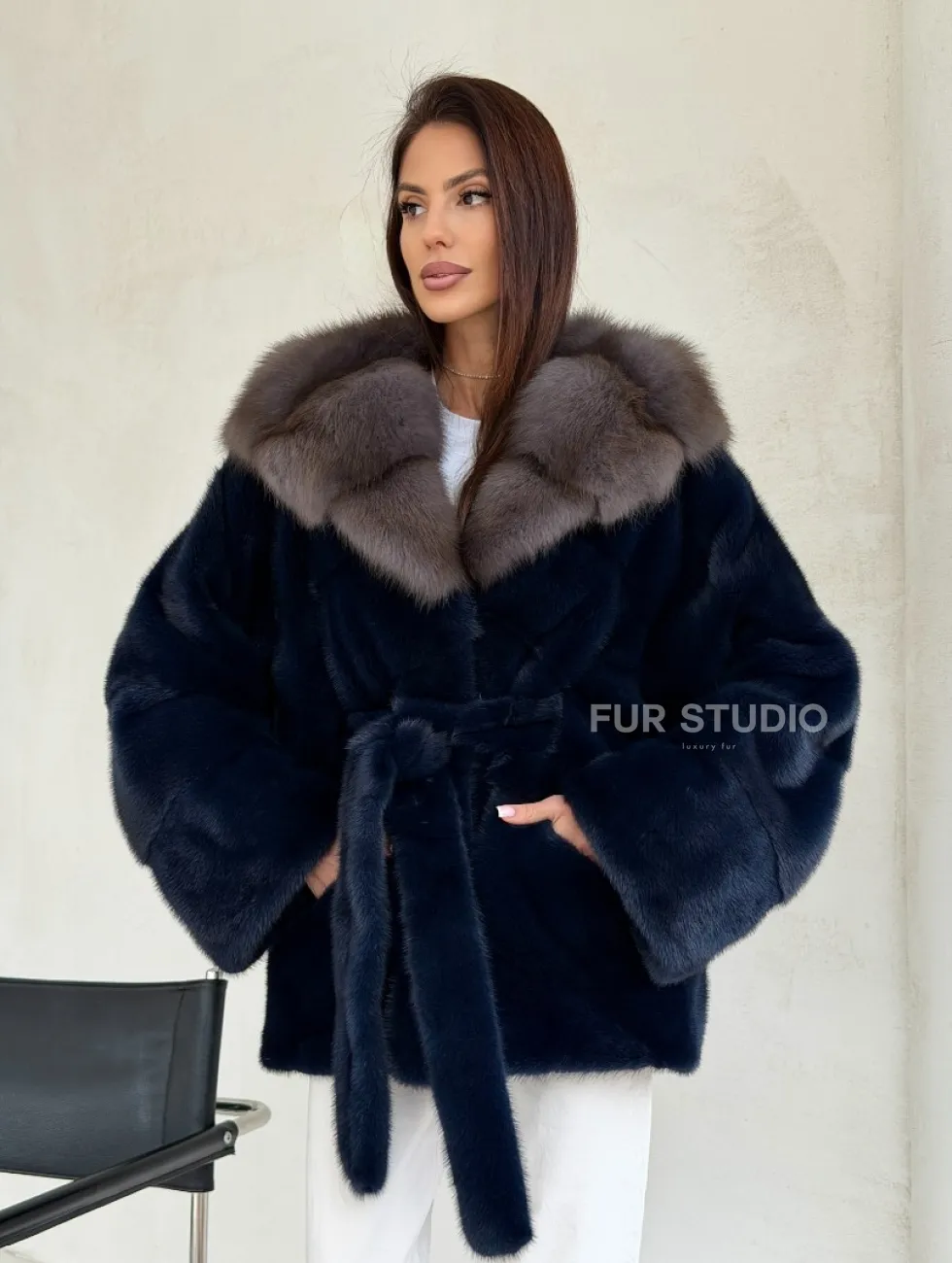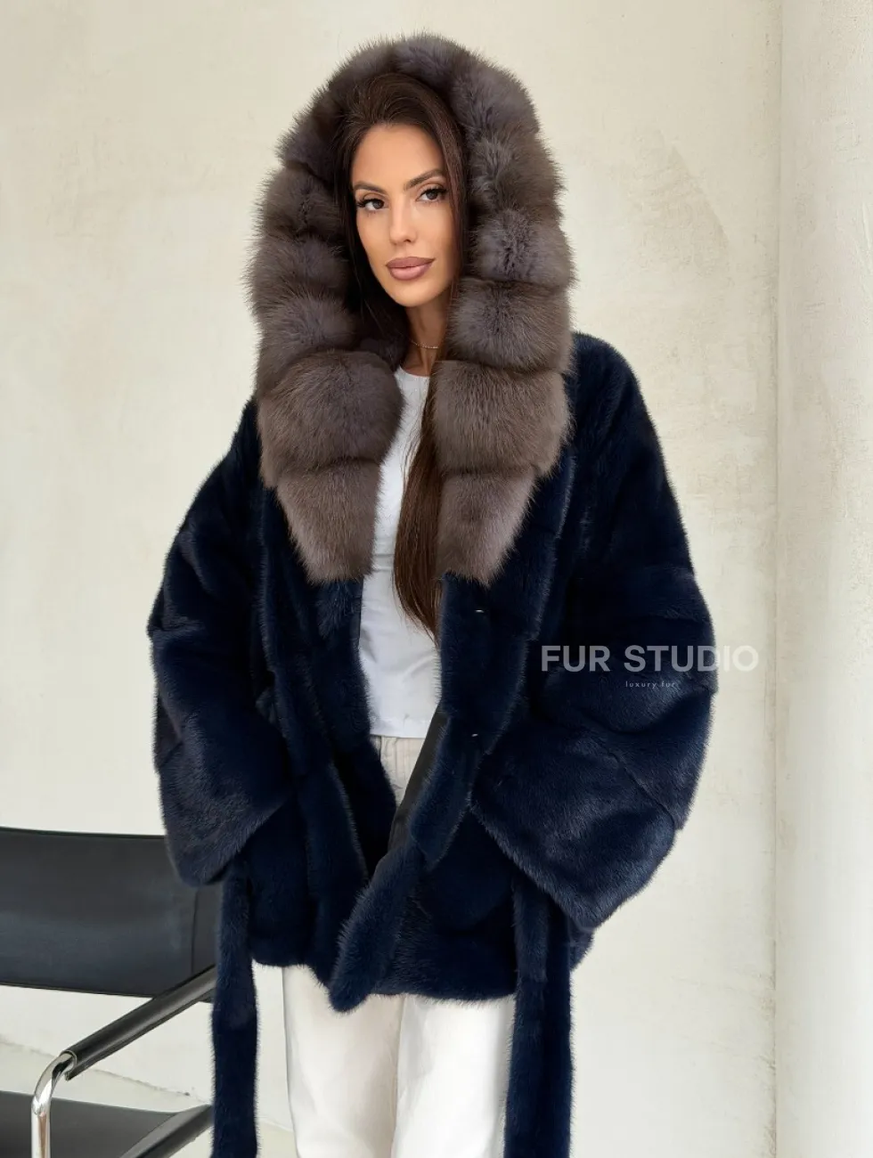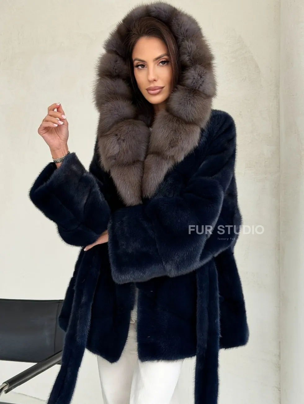 Норковый полушубок синего цвета с капюшоном куница доступна для покупки в нашем шоуруме Furs Studio в Москве. У нас так же есть доставка во все города России. Добавьте немного роскоши в свой гардероб с этой шубой, которая будет служить вам многие годы.