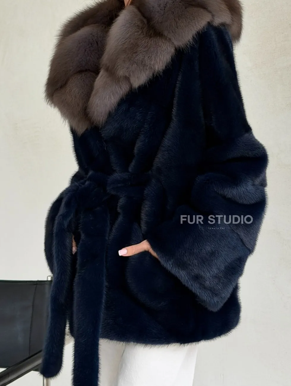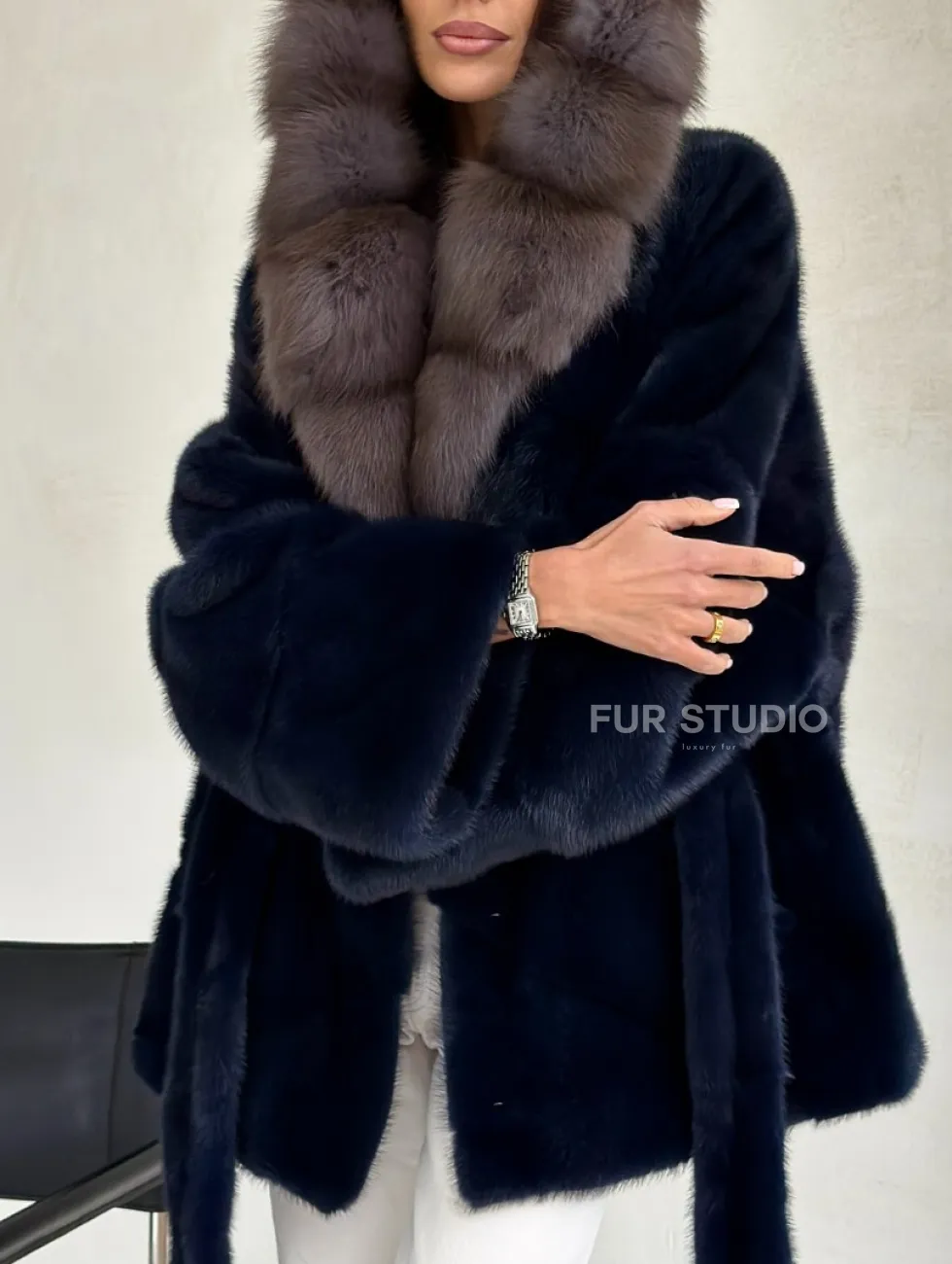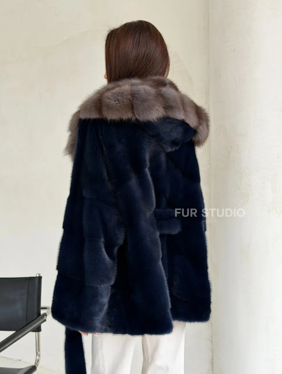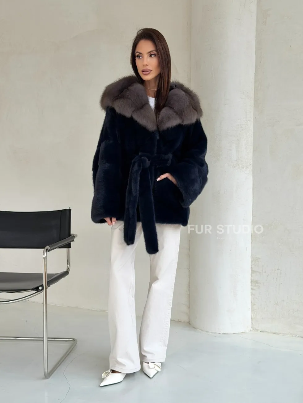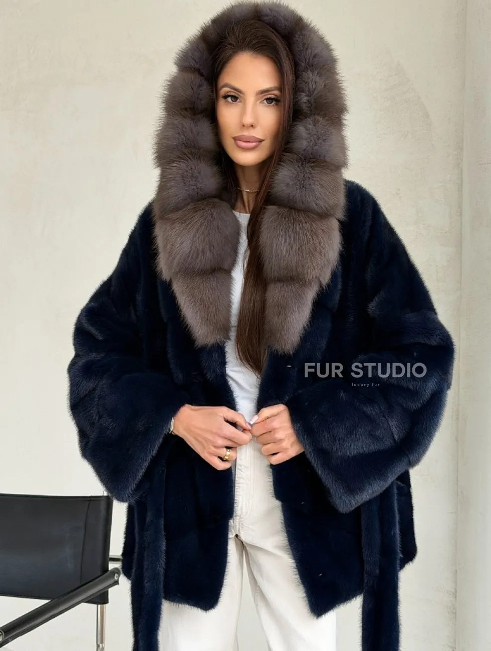 Норковый полушубок синего цвета с капюшоном куница доступна для покупки в нашем шоуруме Furs Studio в Москве. У нас так же есть доставка во все города России. Добавьте немного роскоши в свой гардероб с этой шубой, которая будет служить вам многие годы.