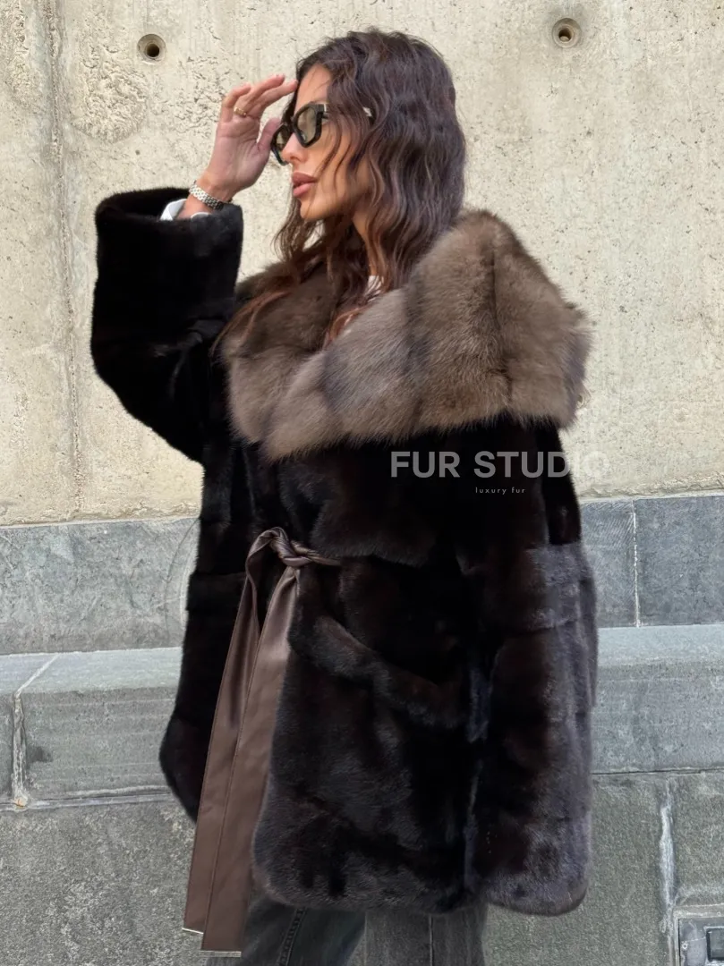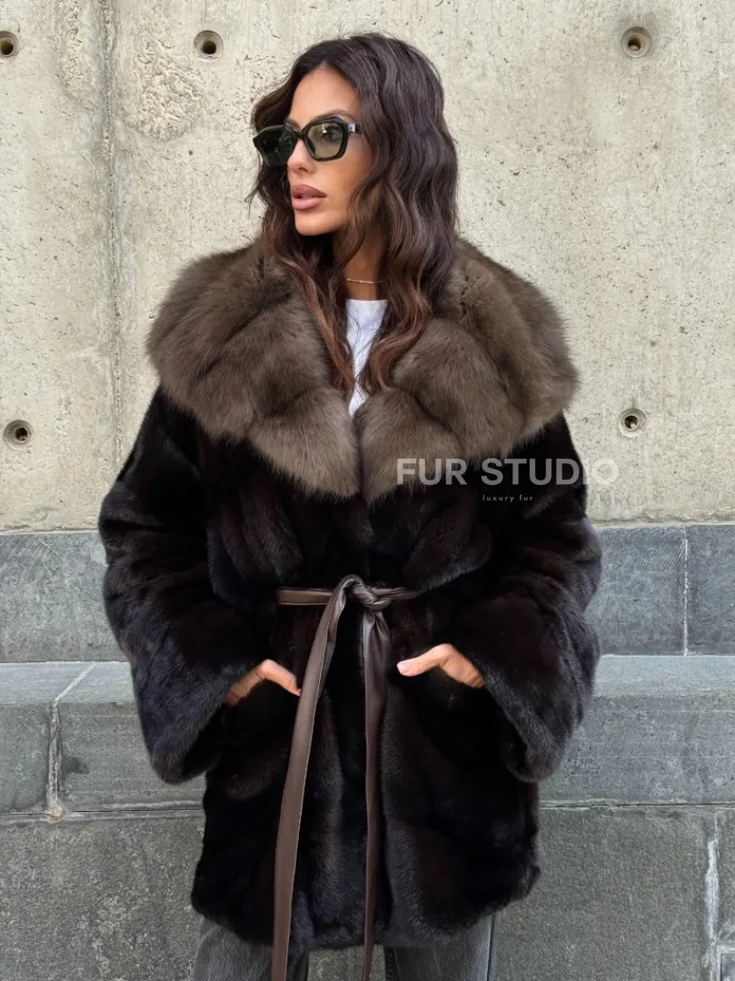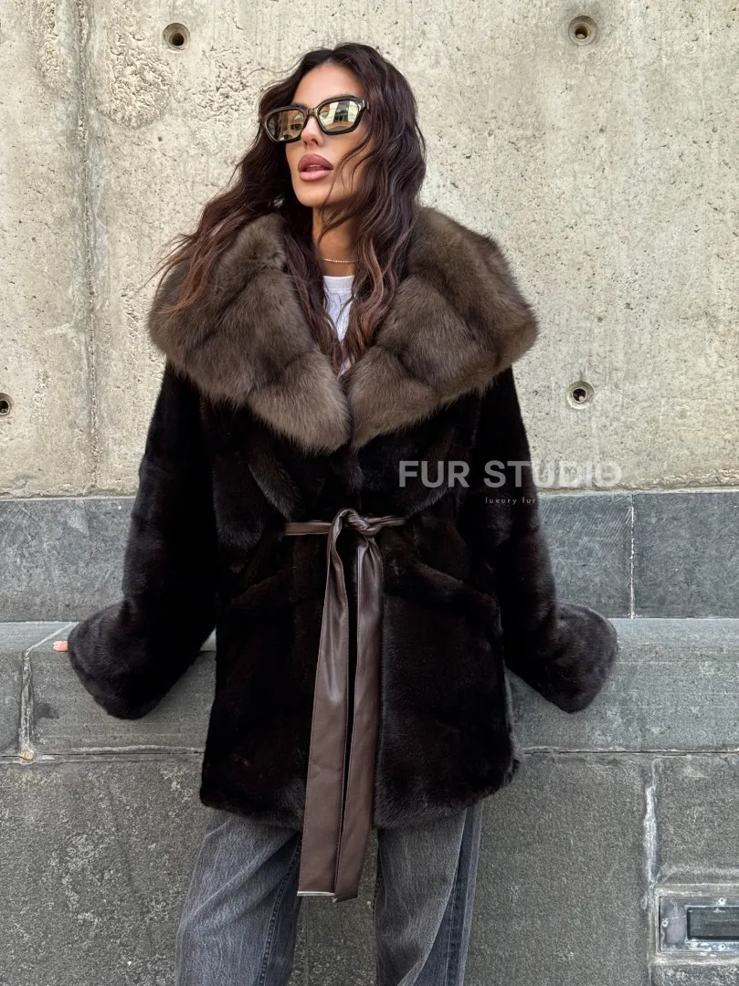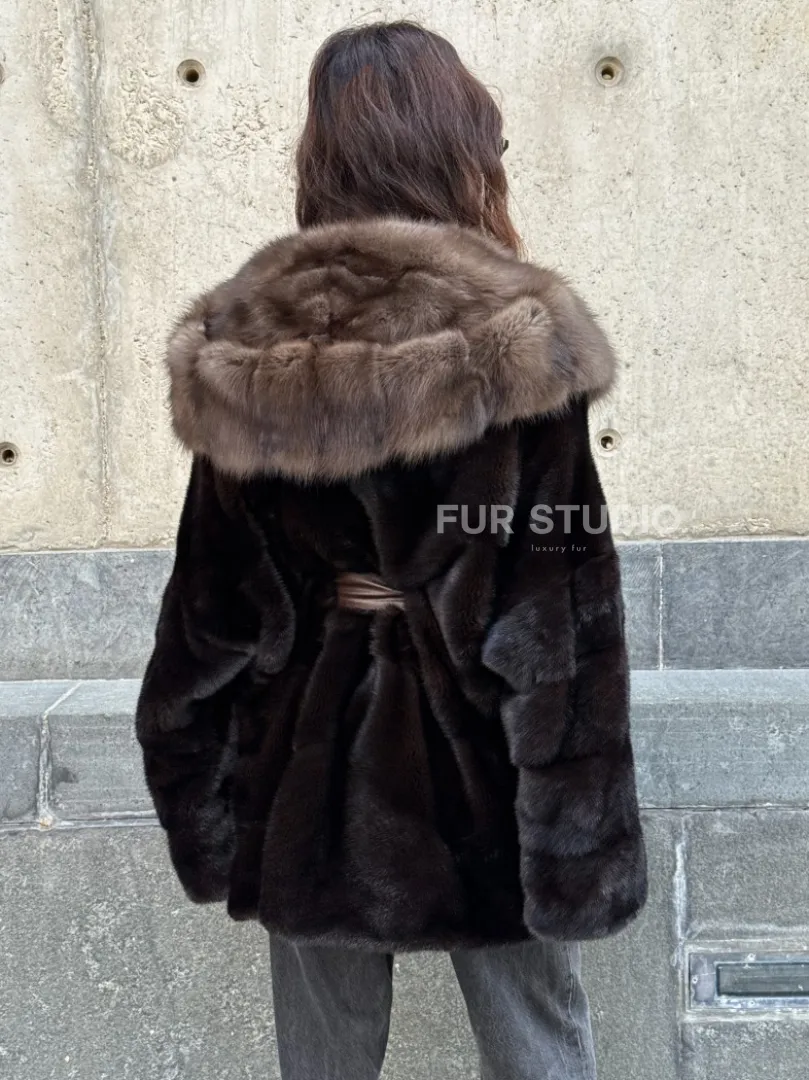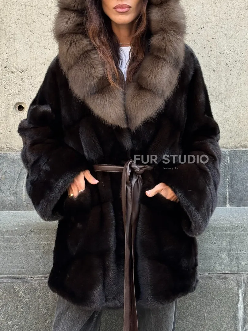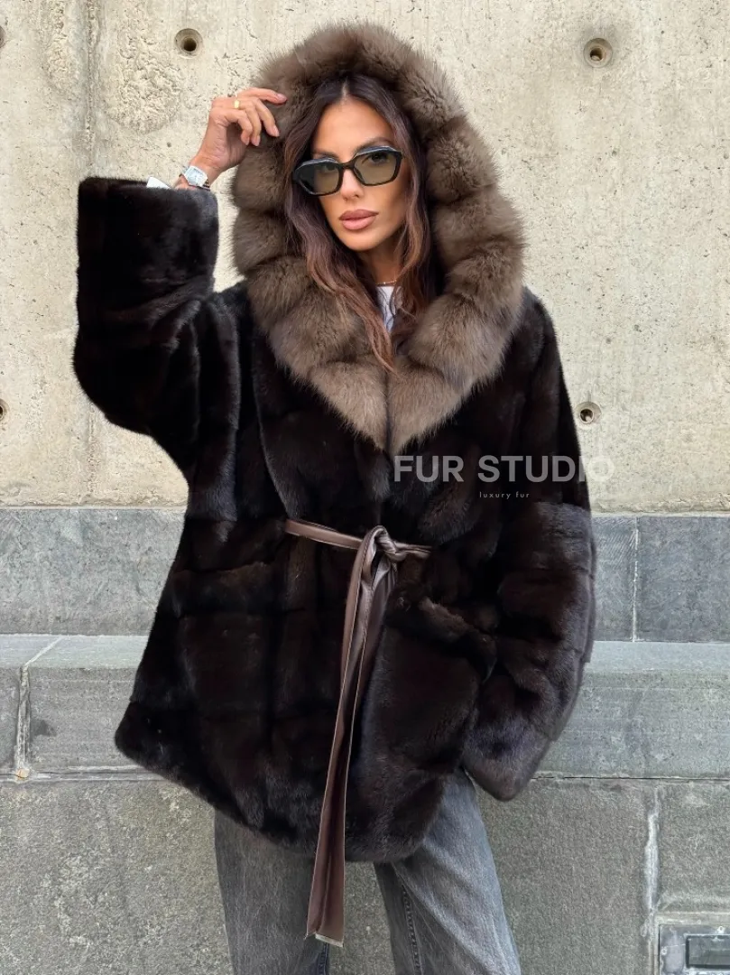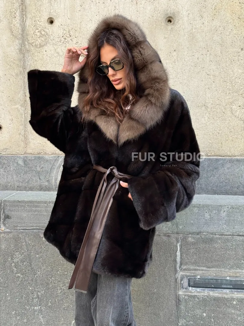 Норковый полушубок в натуральном цвете Brown с капюшоном из куницы доступна для покупки в нашем шоуруме Furs Studio в Москве. У нас так же есть доставка во все города России. Добавьте немного роскоши в свой гардероб с этой шубой, которая будет служить вам многие годы.