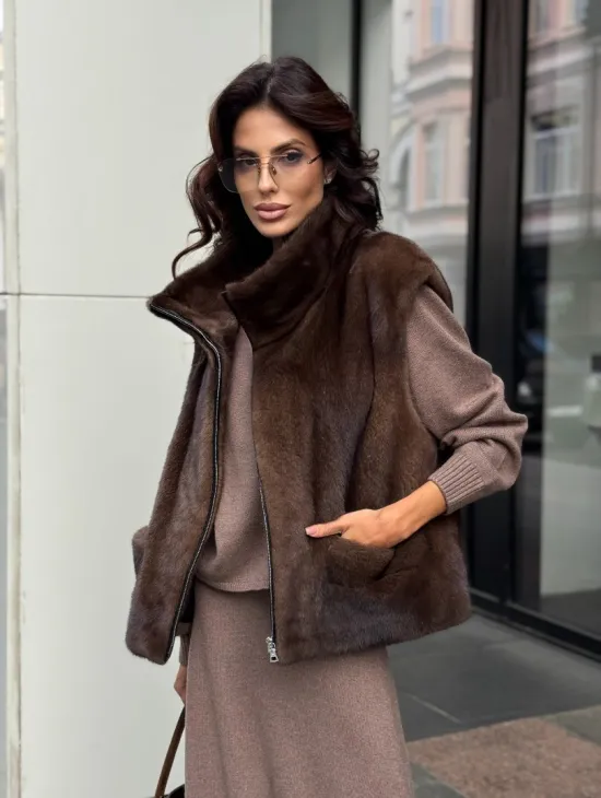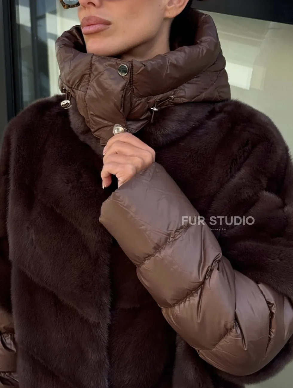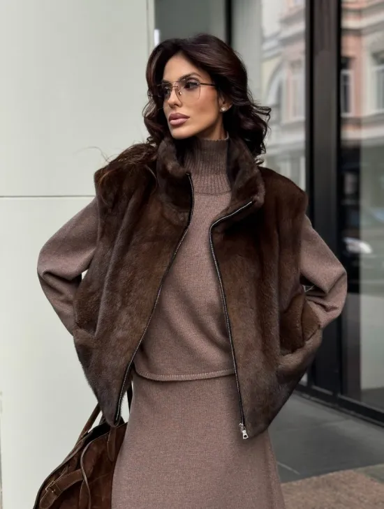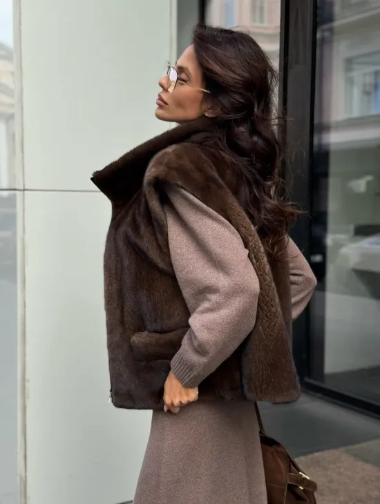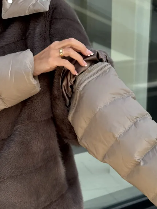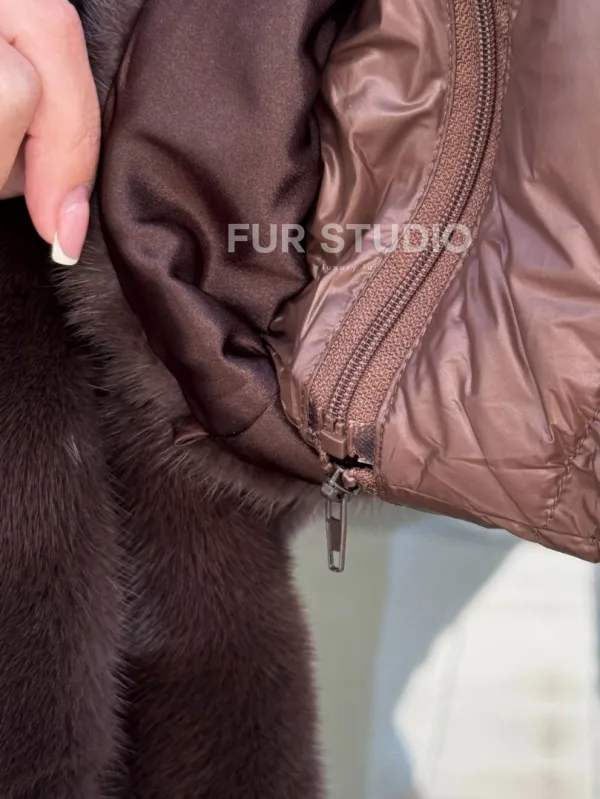 Норковый пуховик-жилет 2в1 цвет соболь доступна для покупки в нашем магазине Furs Studio в Москве, с возможностью доставки в любой город России. Добавьте немного стиля и элегантности в свой гардероб с этой курткой, которая будет вам служить многие годы, подчеркивая ваш неповторимый стиль.