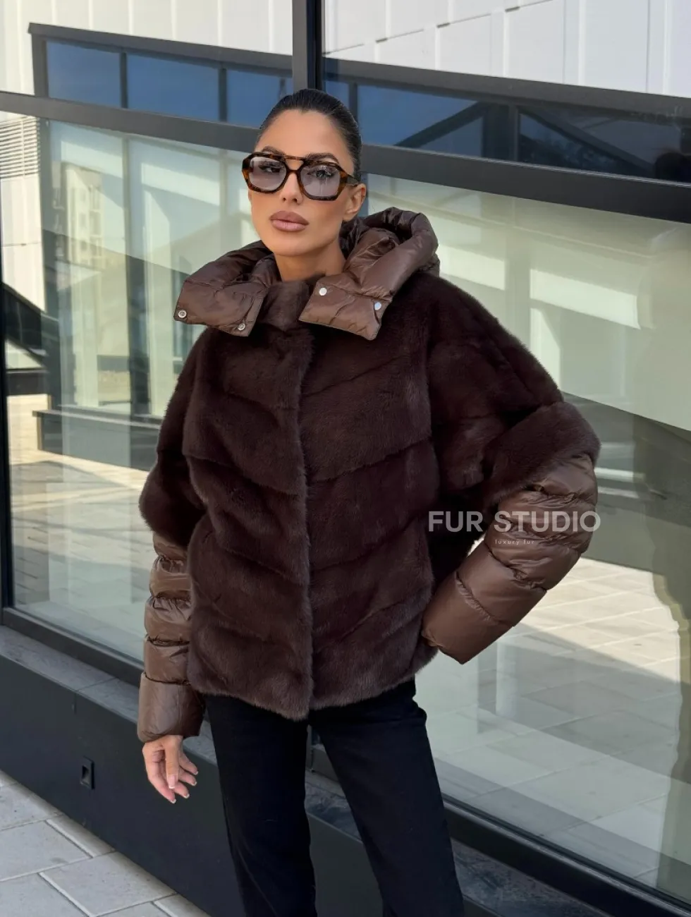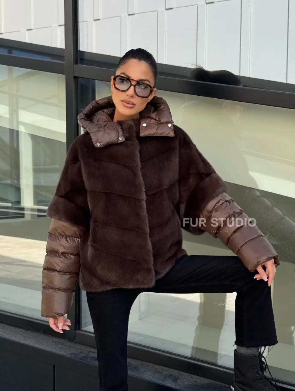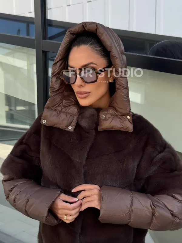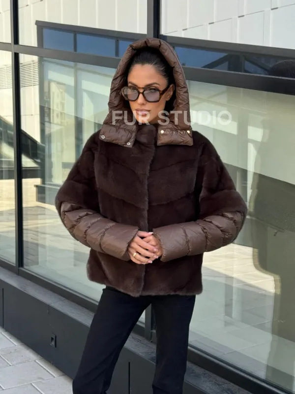 Норковый пуховик-жилет 2в1 цвет соболь доступна для покупки в нашем магазине Furs Studio в Москве, с возможностью доставки в любой город России. Добавьте немного стиля и элегантности в свой гардероб с этой курткой, которая будет вам служить многие годы, подчеркивая ваш неповторимый стиль.