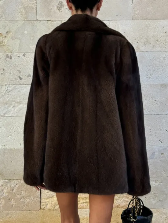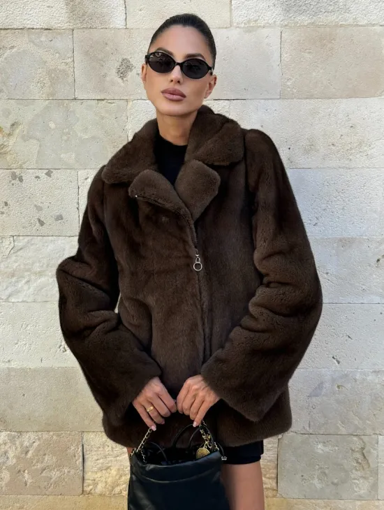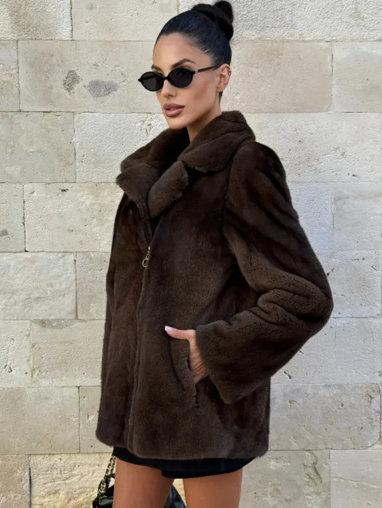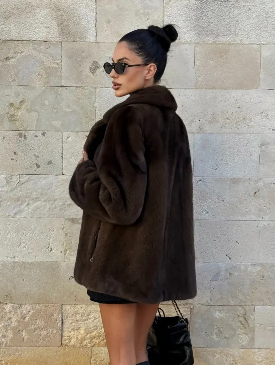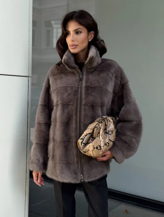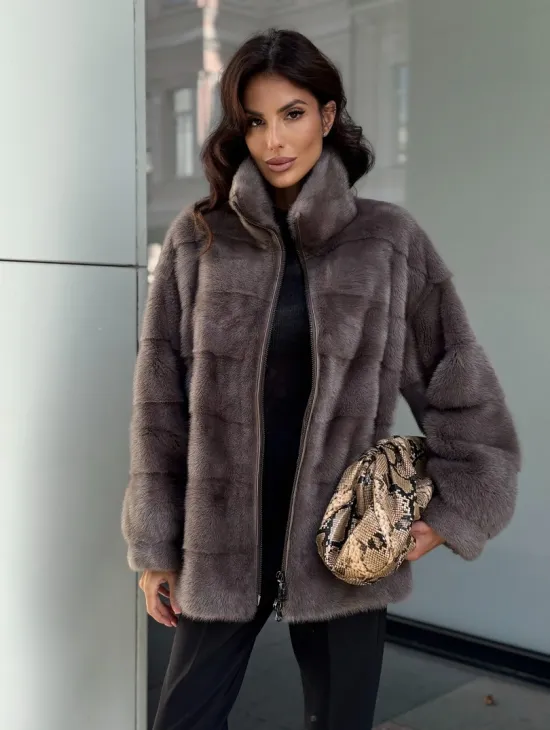Материал выбранной модели — аукционная норка, доступна в цвете коричневый. Куртка предлагается в разнообразии размеров, от S до XL, а ее длина составляет 55-60 см, что выигрышно подчеркивает вашу фигуру. Этот вариант идеально подходит для тех, кто ценит роскошь и утонченность натуральных материалов.