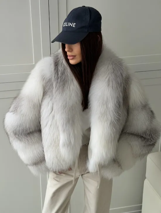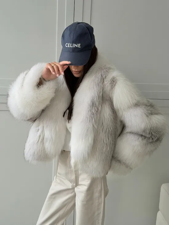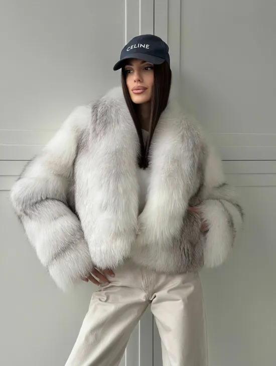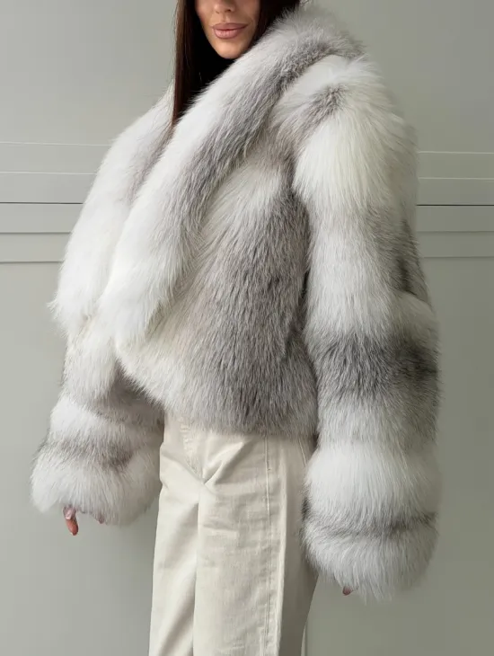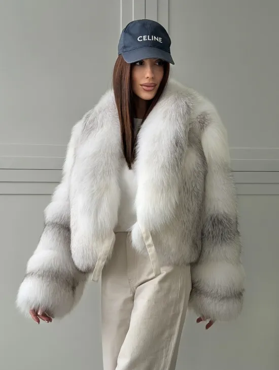 Материал выбранной модели — аукционная норка, доступна в цвете белый. Куртка предлагается в разнообразии размеров, от S до XL, а ее длина составляет 55-60 см, что выигрышно подчеркивает вашу фигуру. Этот вариант идеально подходит для тех, кто ценит роскошь и утонченность натуральных материалов.