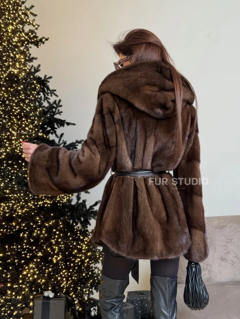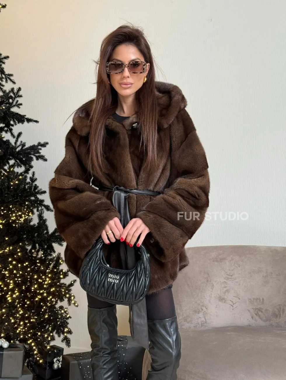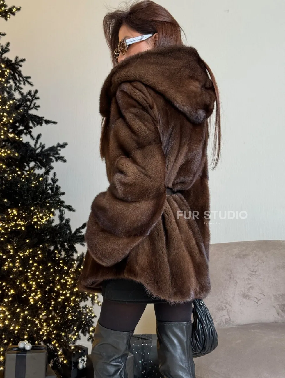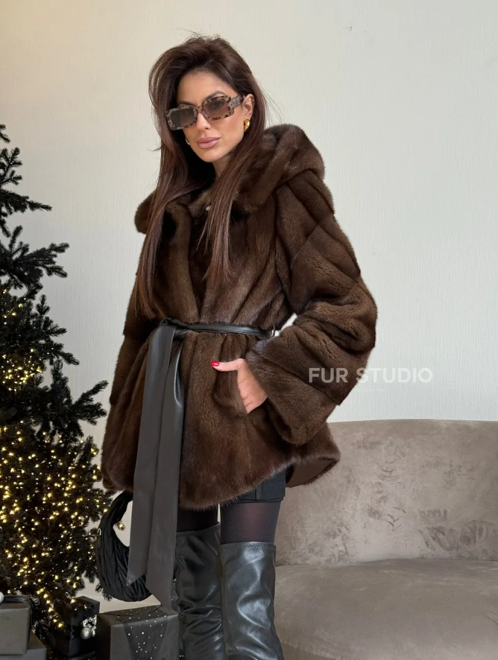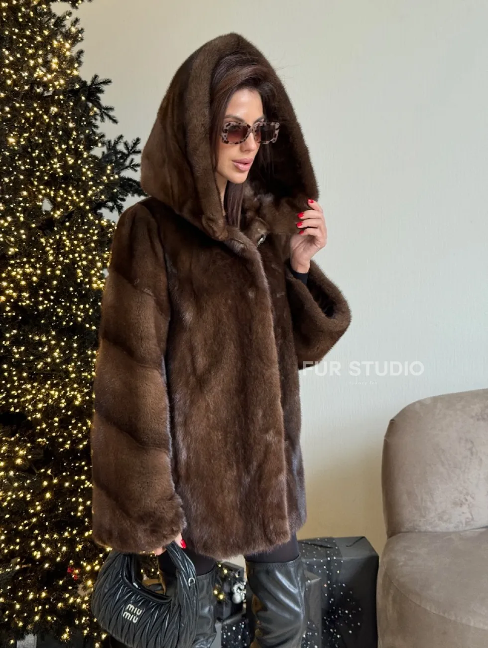 Норковый жакет с капюшоном, роспуск в цвете орех доступна для покупки в нашем шоуруме Furs Studio в Москве. У нас так же есть доставка во все города России. Добавьте немного роскоши в свой гардероб с этой шубой, которая будет служить вам многие годы.