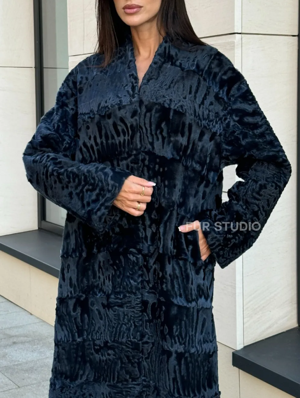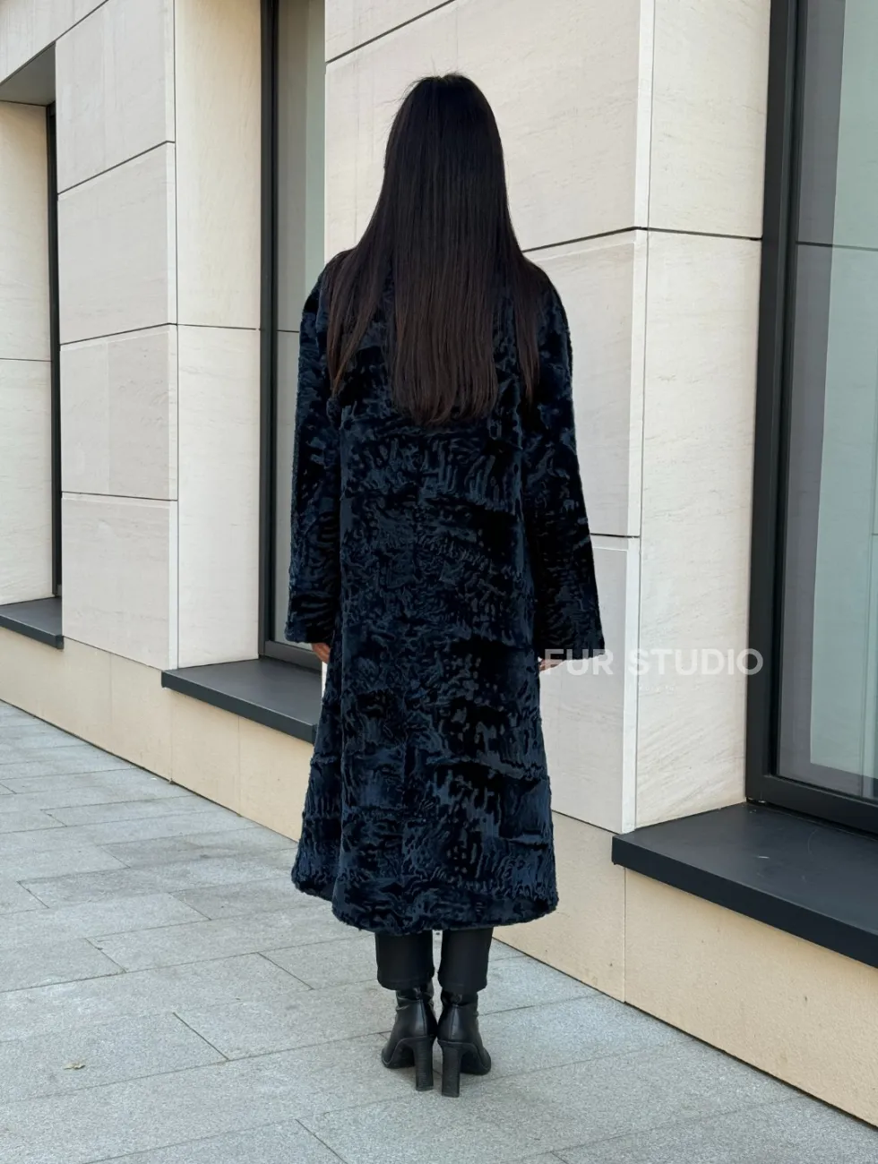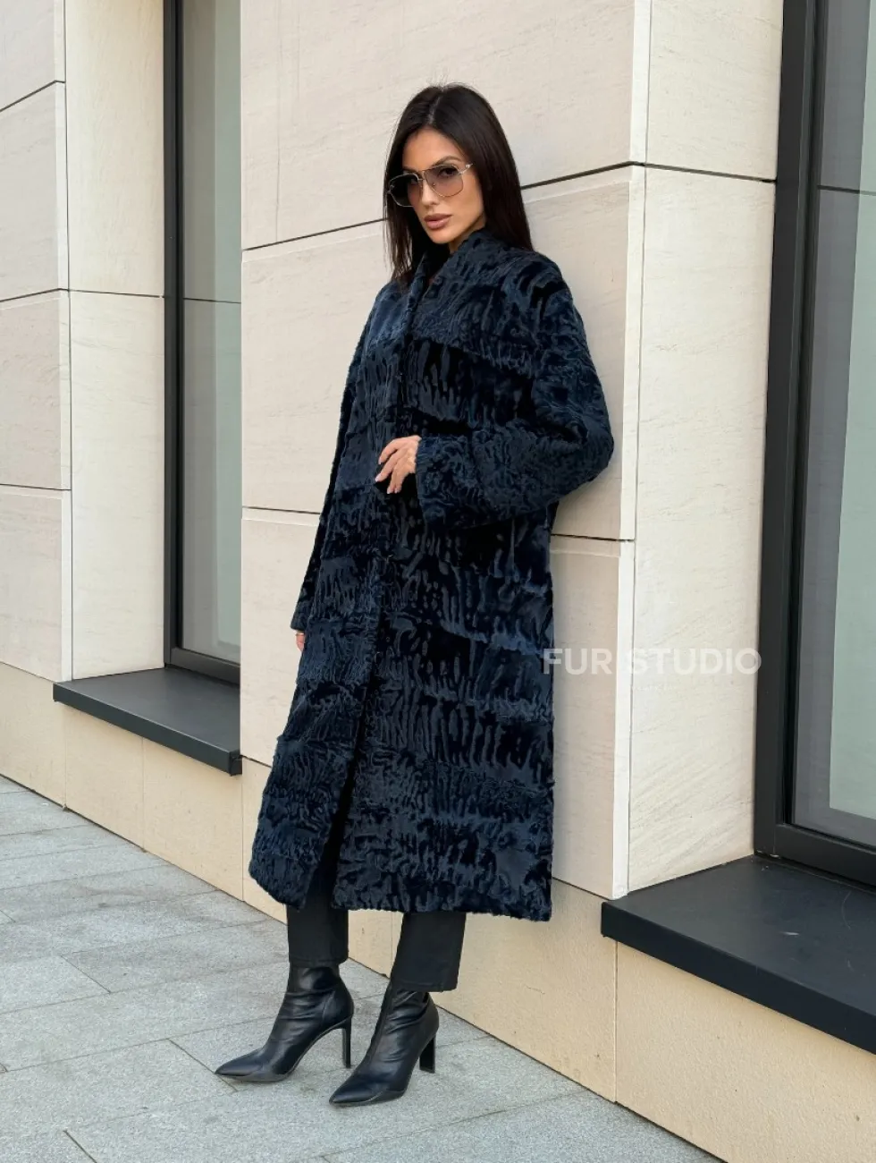Пальто из меха каракуля с V-образным воротником, цвет Indigo Blue доступна для покупки в нашем шоуруме Furs Studio в Москве. У нас так же есть доставка во все города России. Добавьте немного роскоши в свой гардероб с этой шубой, которая будет служить вам многие годы.