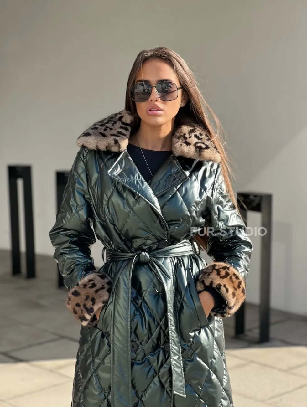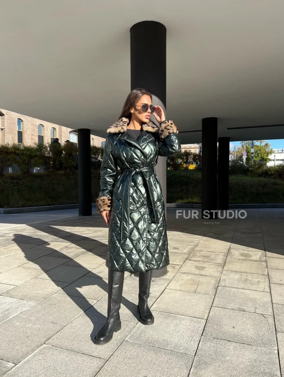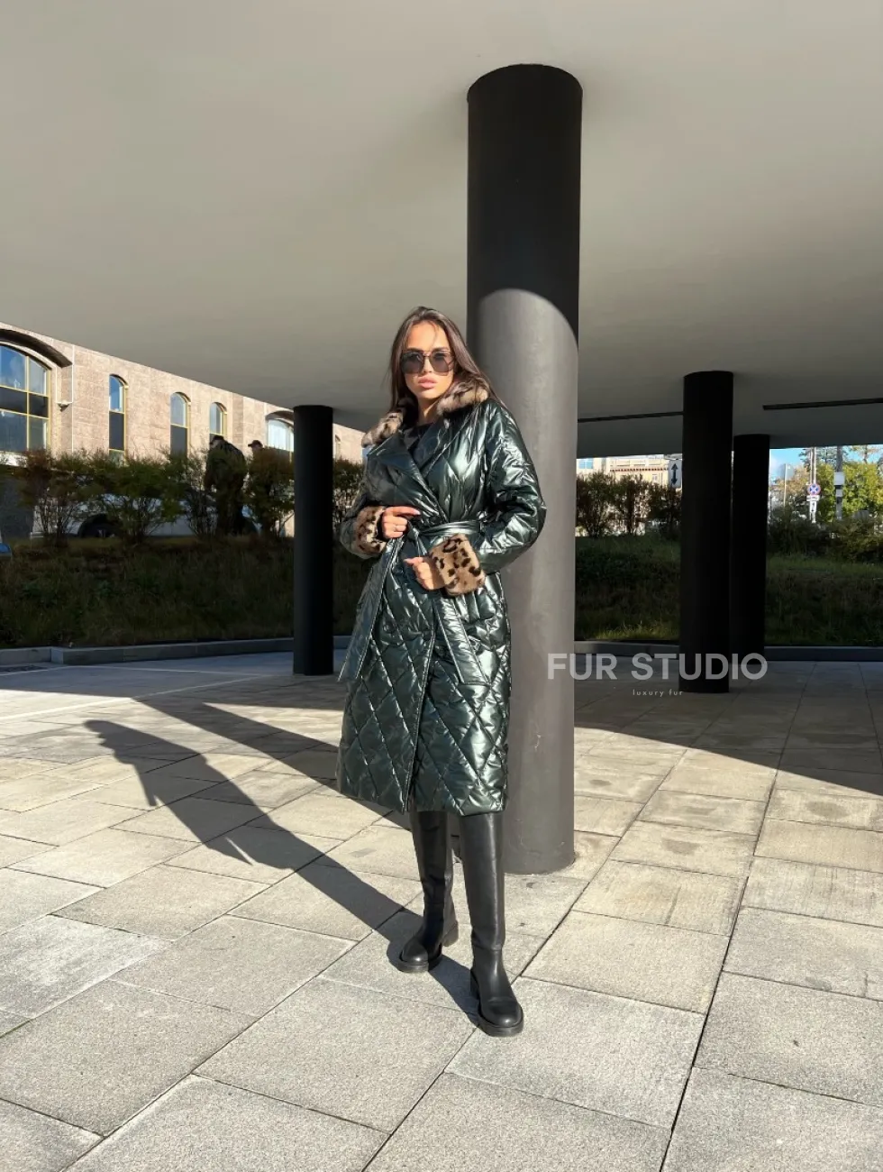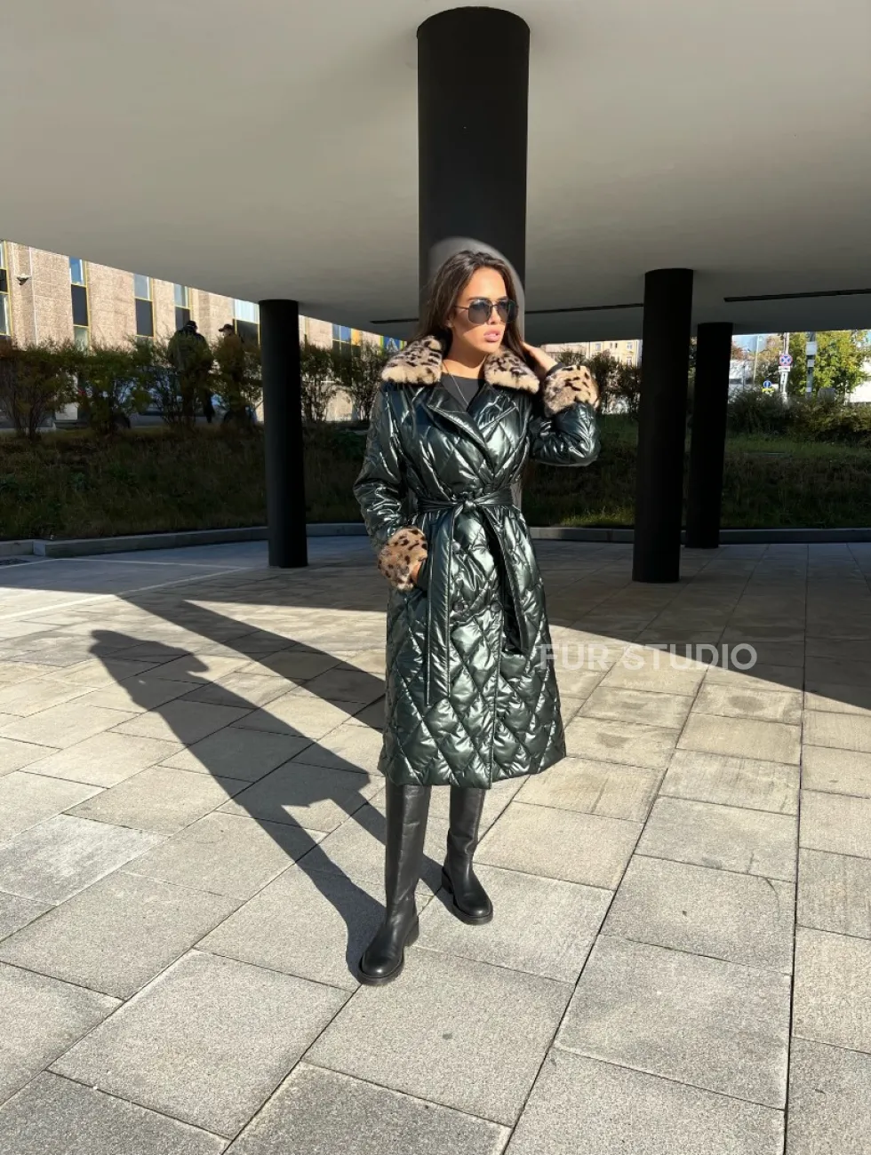 Роскошный воротник из норки выделит изящную шею. Меховые манжеты акцентируют внимание на тонкости кистей. Глубокие карманы не дадут замерзнуть ручкам. Оригинальный пояс очертит талию и сделает образ женственным. Купить пальто – пуховик с воротником из меха норки в цвете изумруд могут леди, предпочитающие выглядеть стильно и дорого в любое время года.