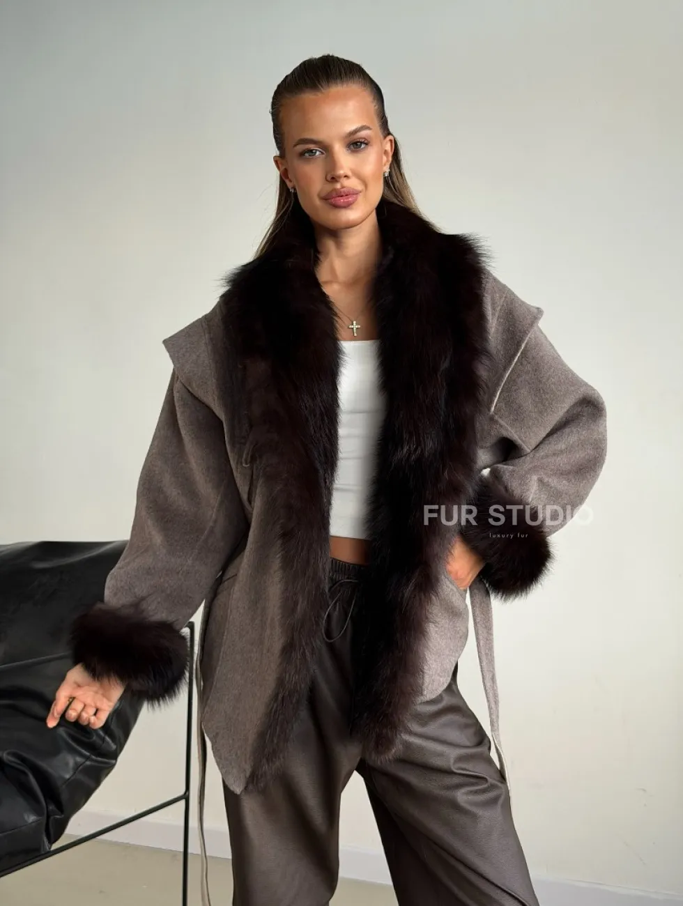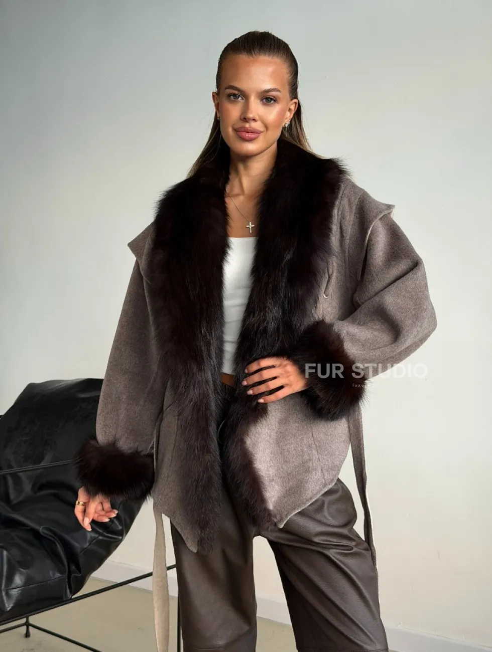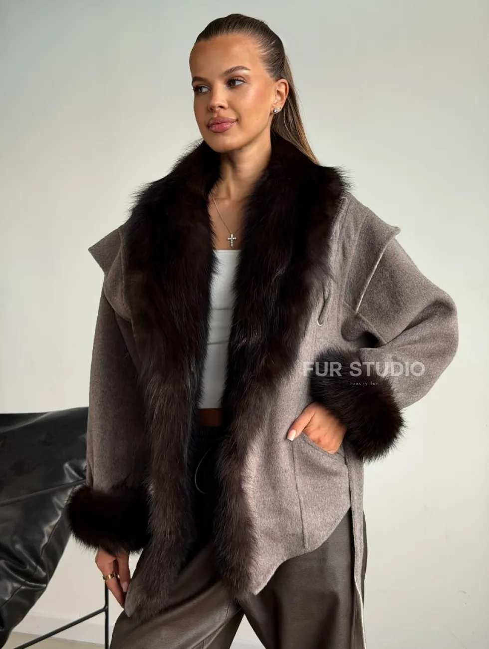 Пальто с мехом фишера 102589