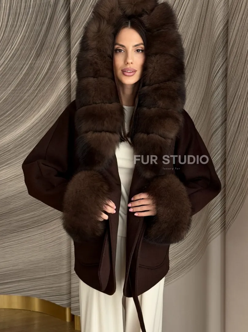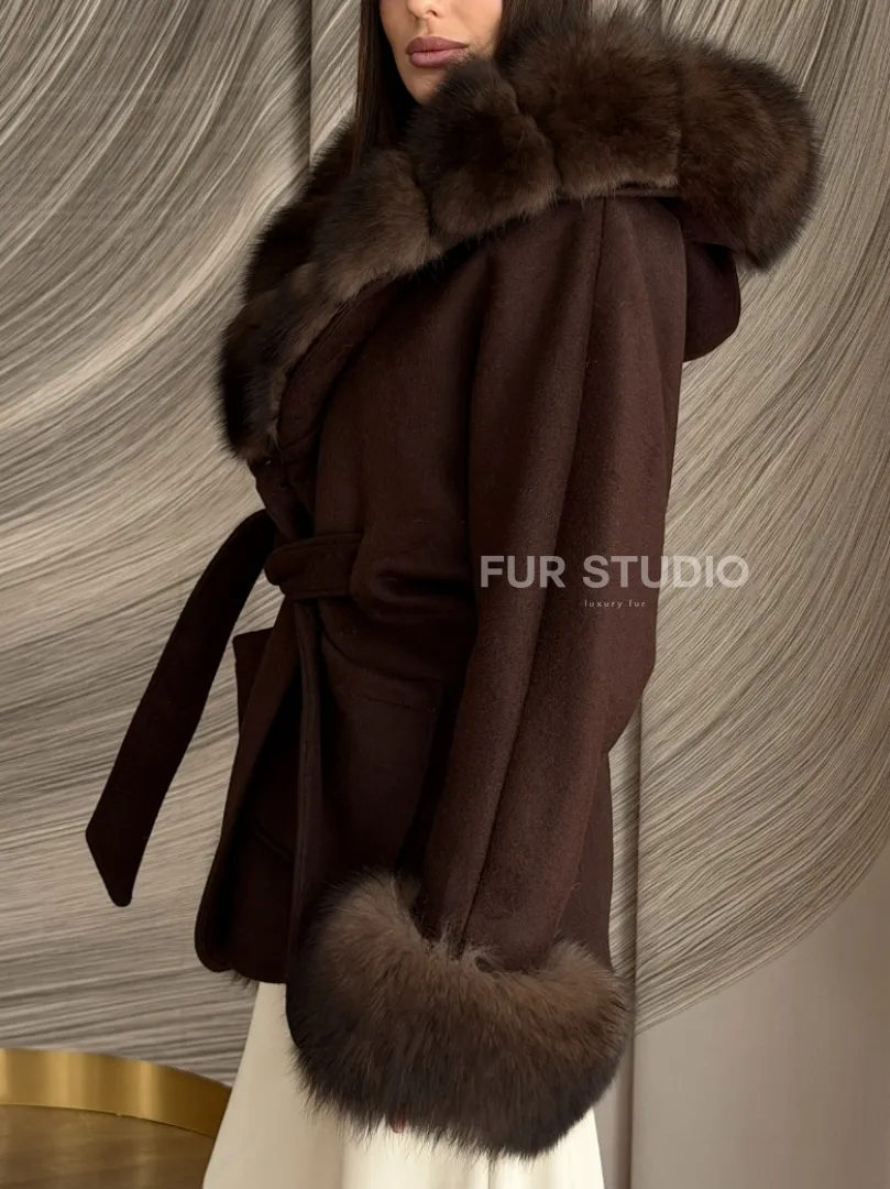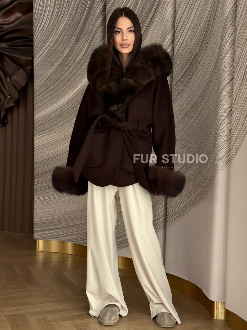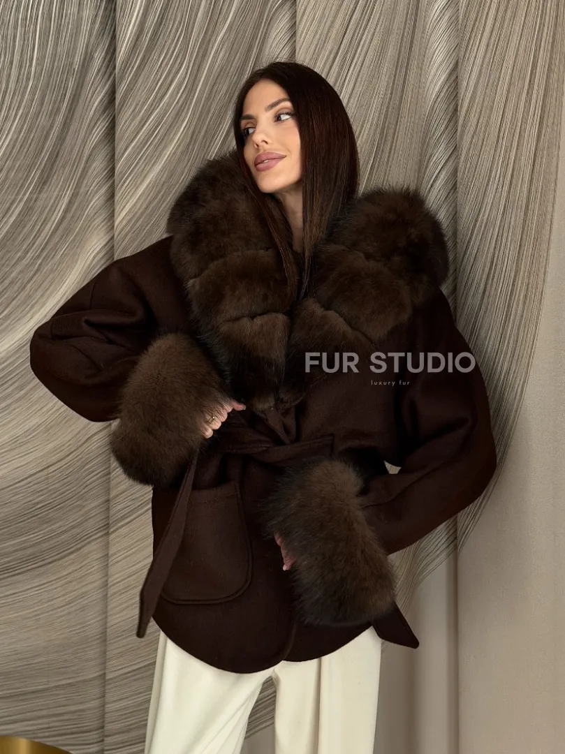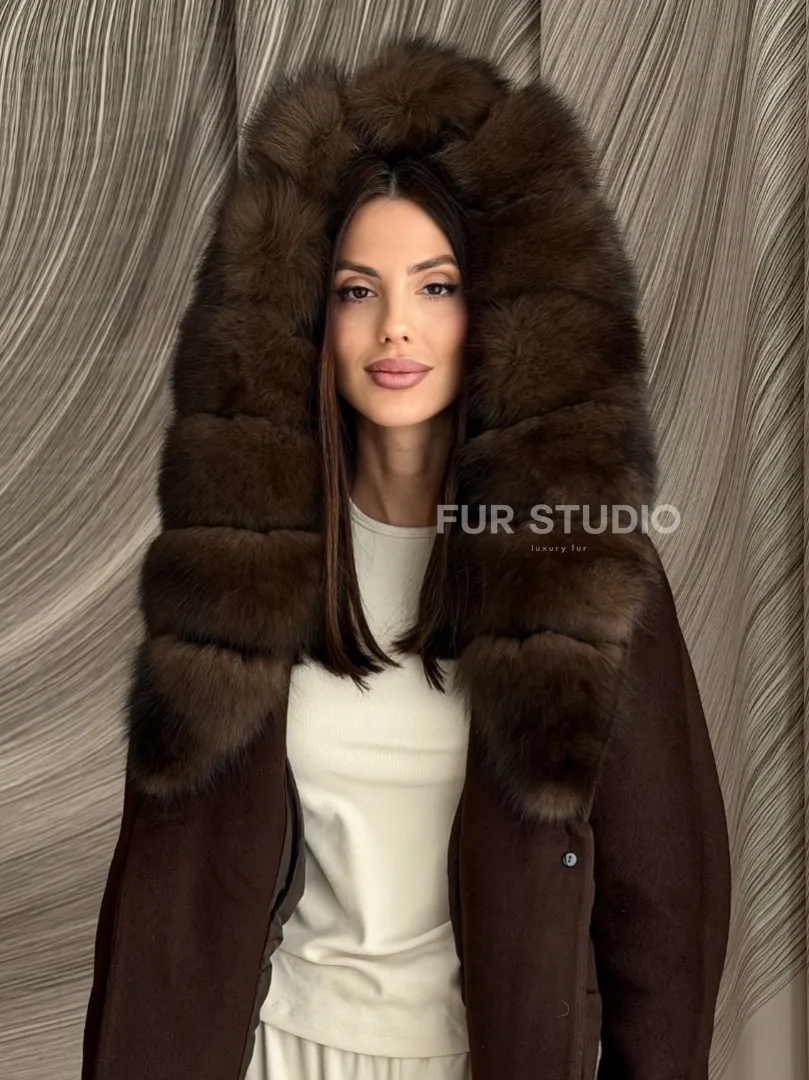 Пальто с мехом песца под соболь 102907