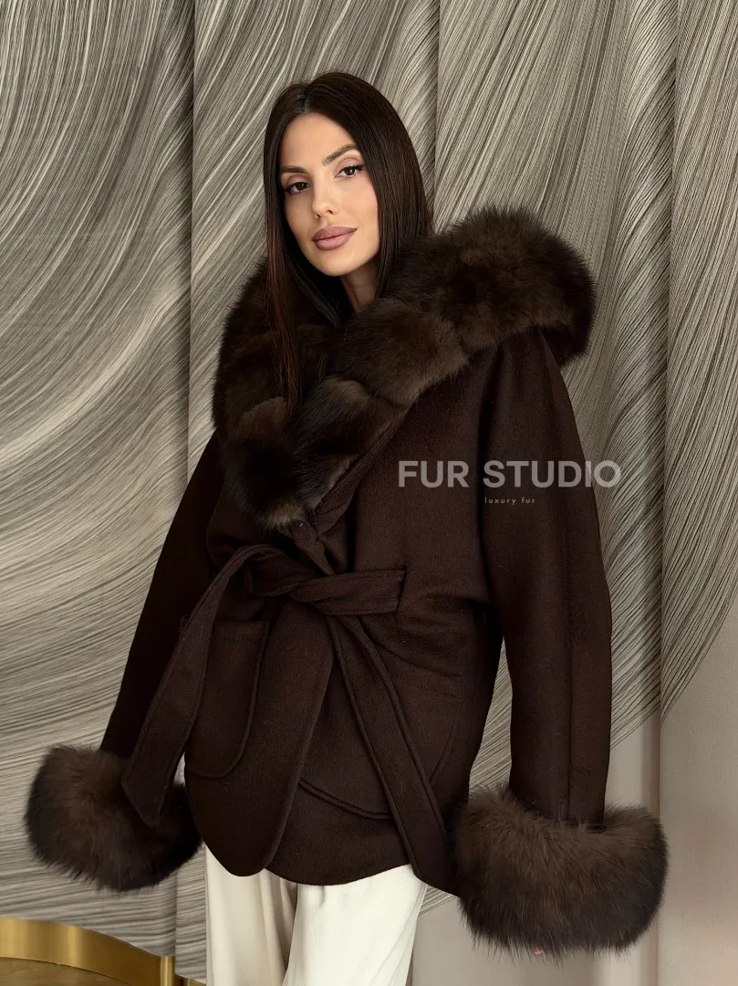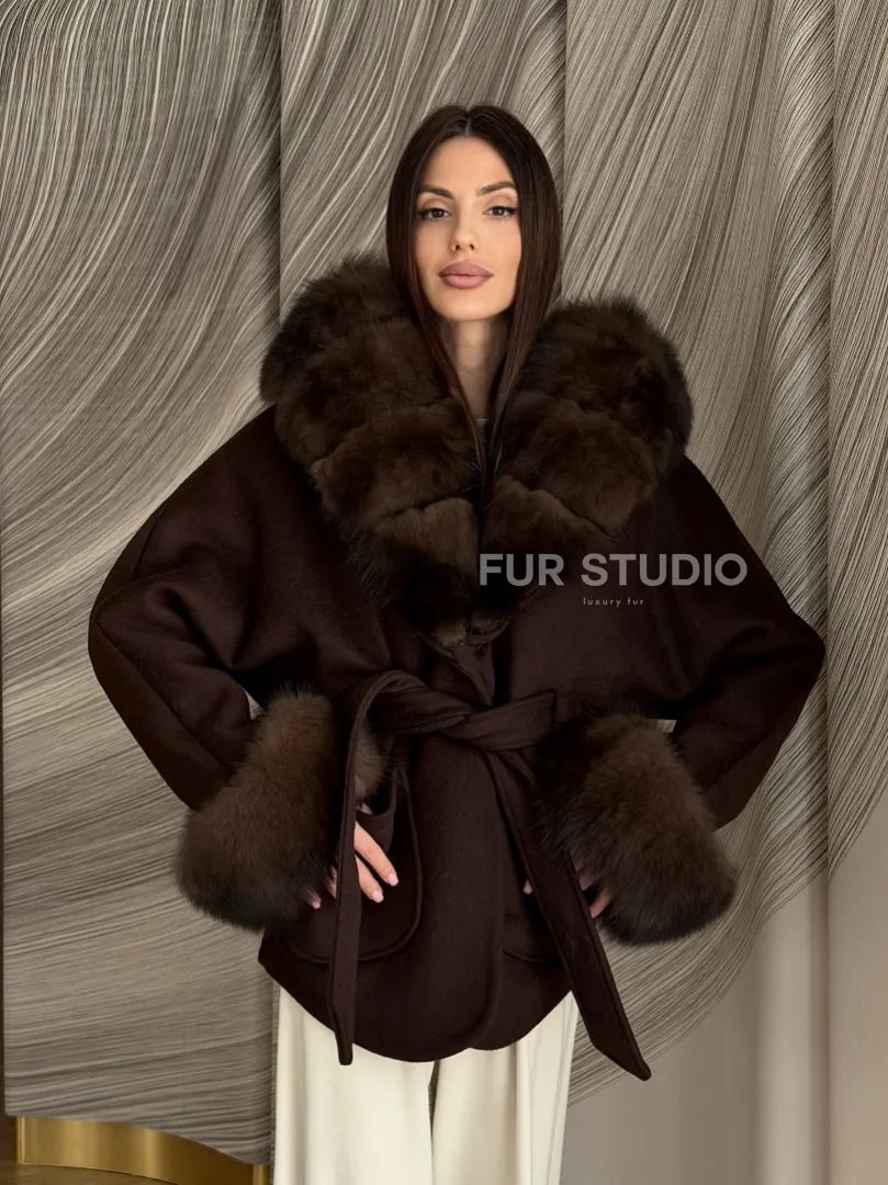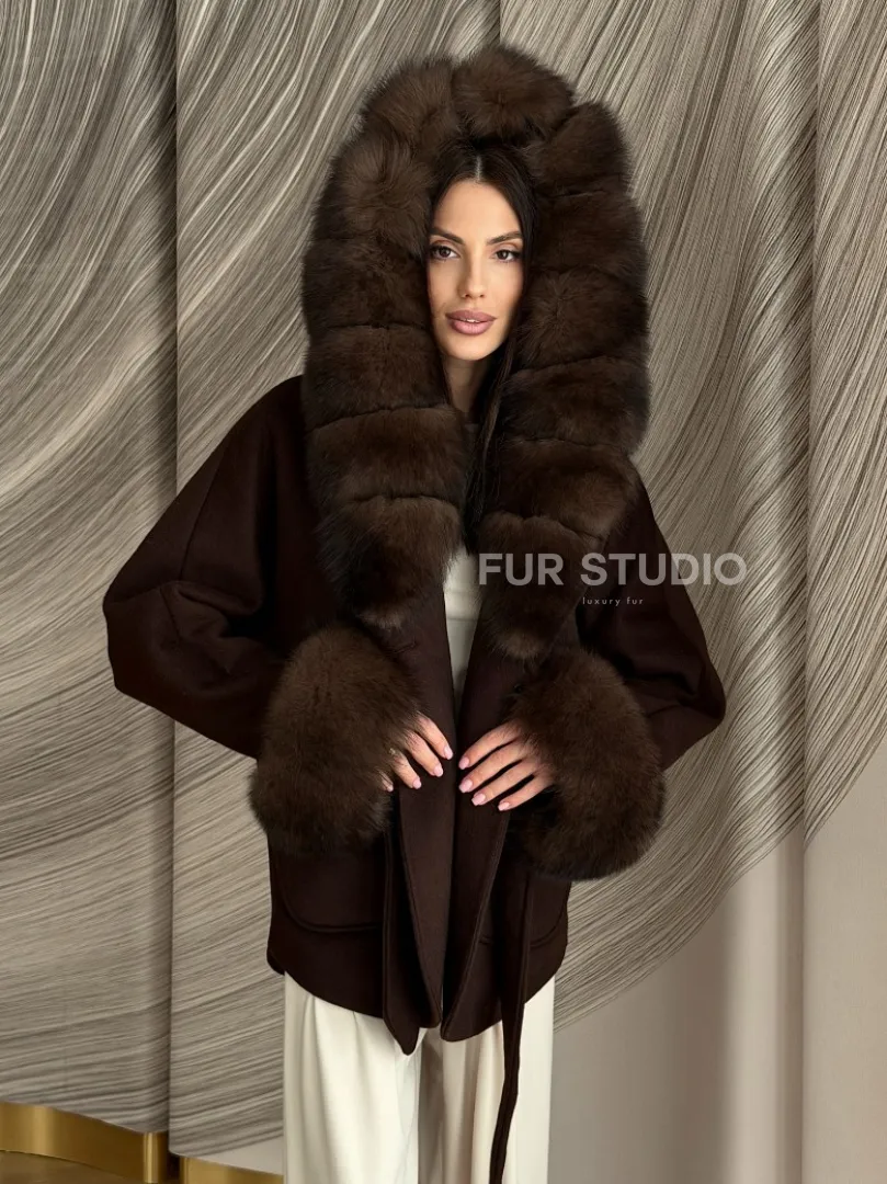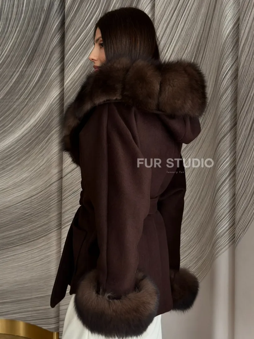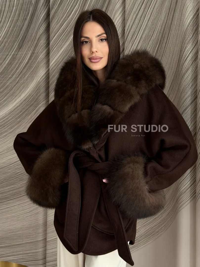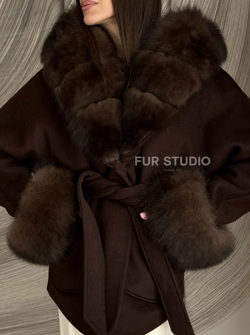Пальто с мехом песца под соболь 102907