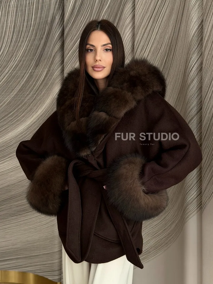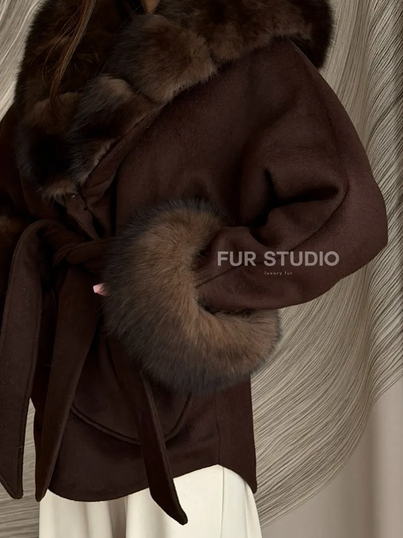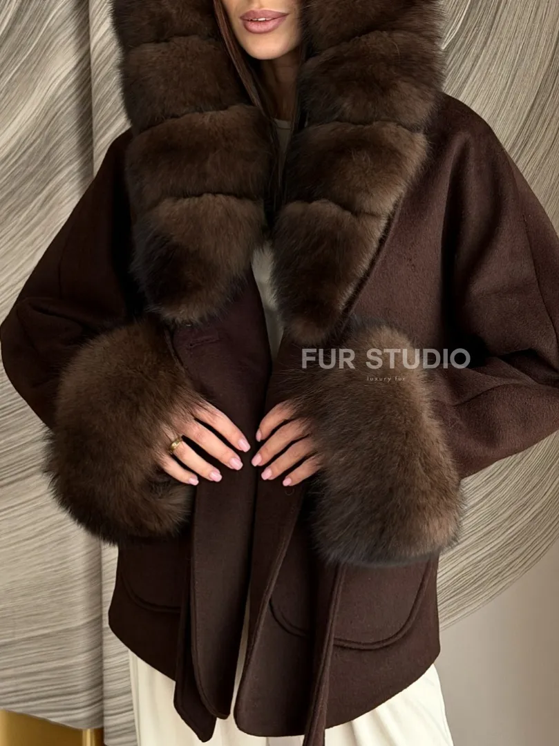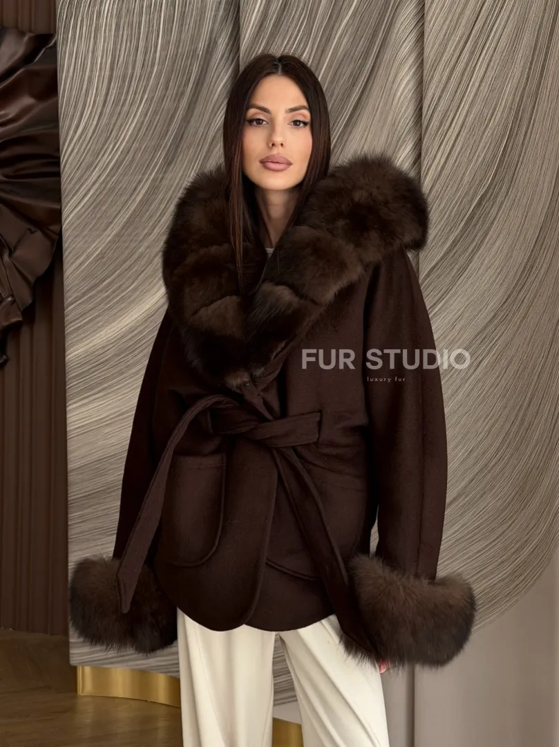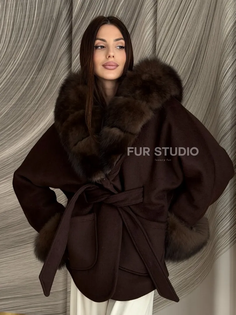 Пальто с мехом песца под соболь 102907