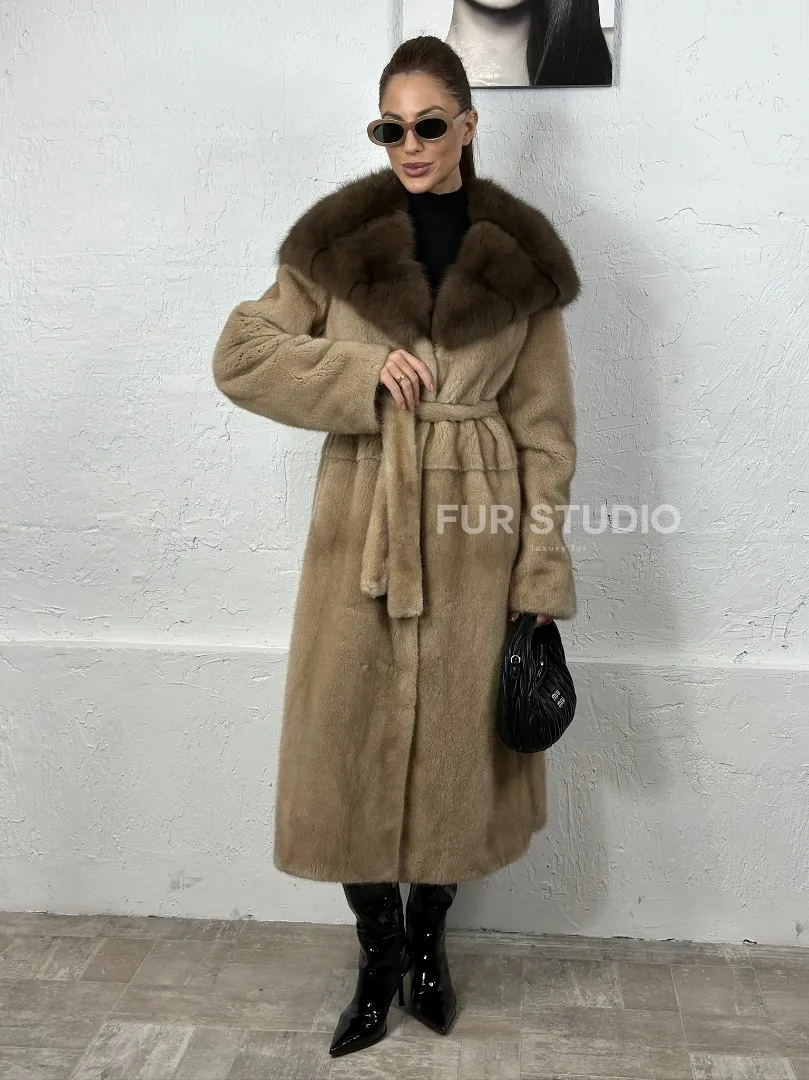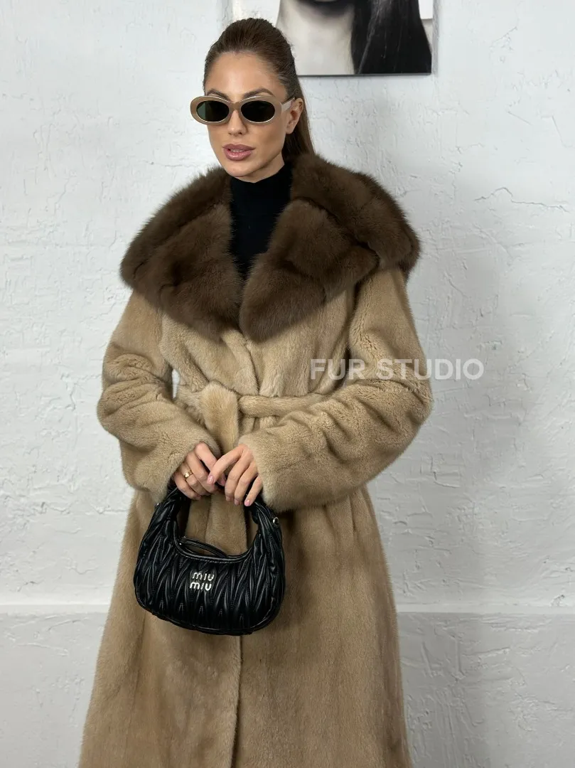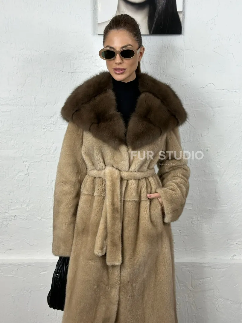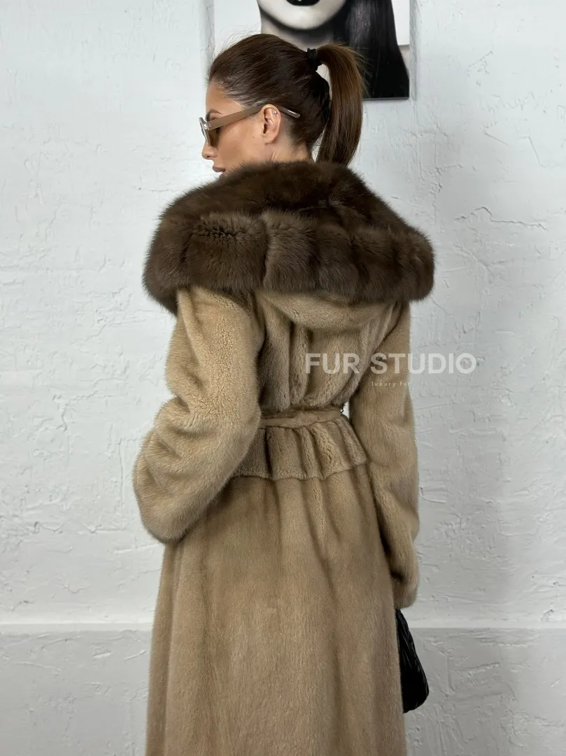 Песочная норковая шуба с капюшоном из куницы доступна для покупки в нашем шоуруме Furs Studio в Москве. У нас так же есть доставка во все города России. Добавьте немного роскоши в свой гардероб с этой шубой, которая будет служить вам многие годы.