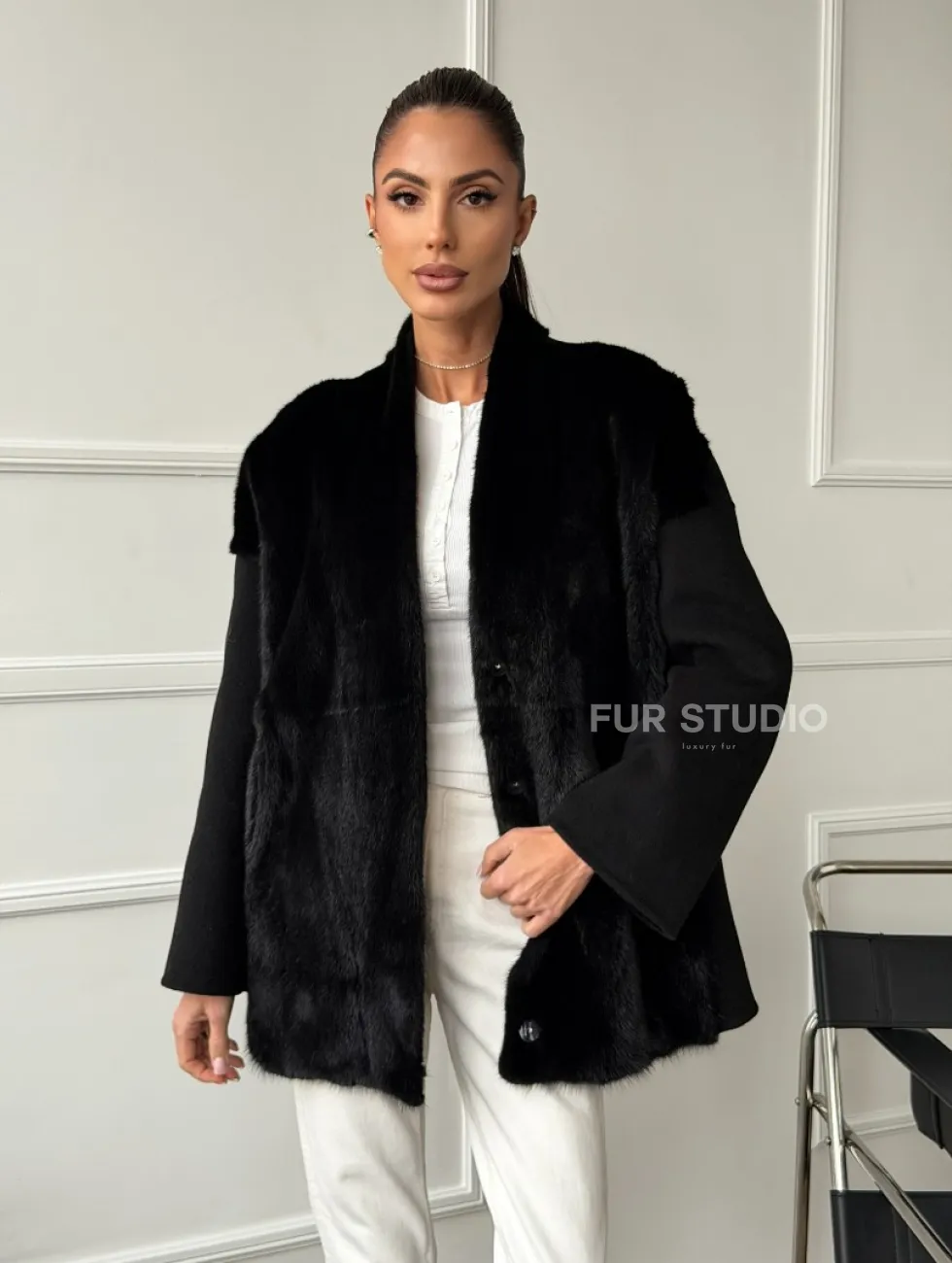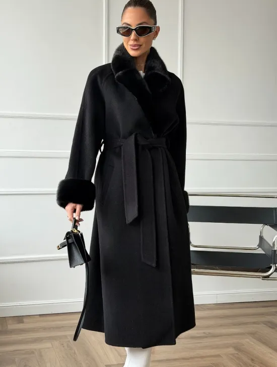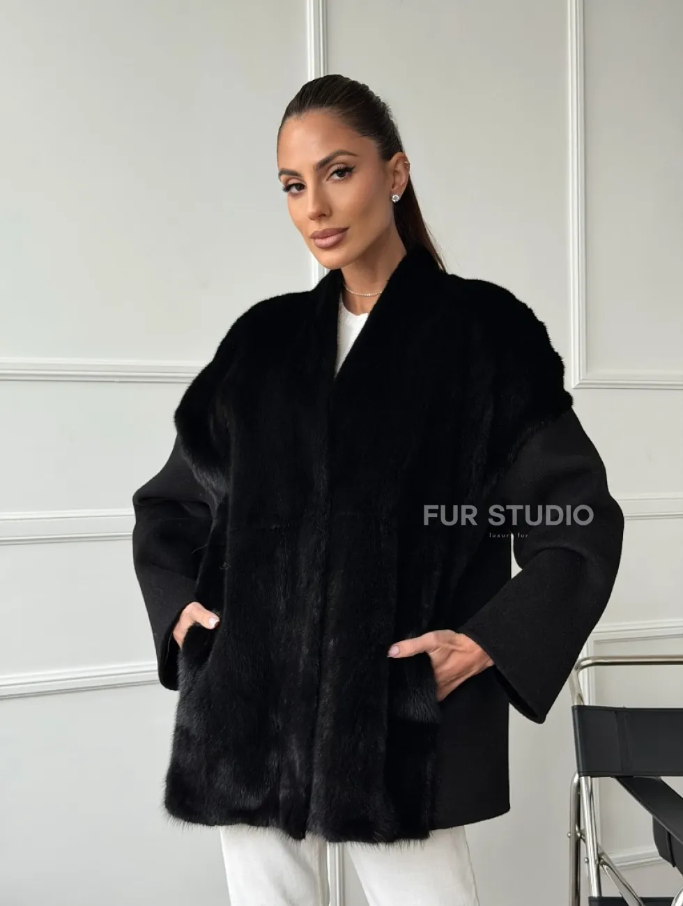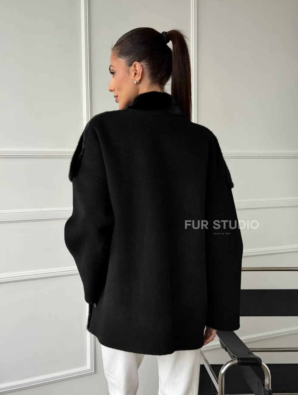 Полупальто демисезонное шерстяное с отделкой из меха норки 101802
