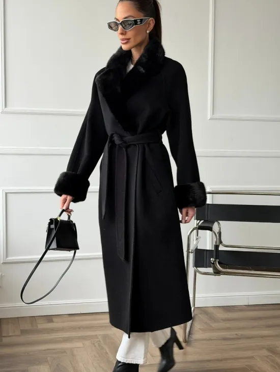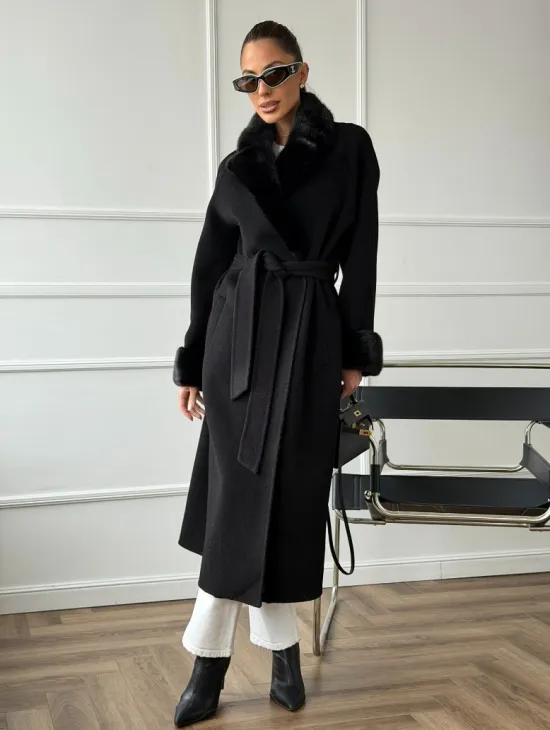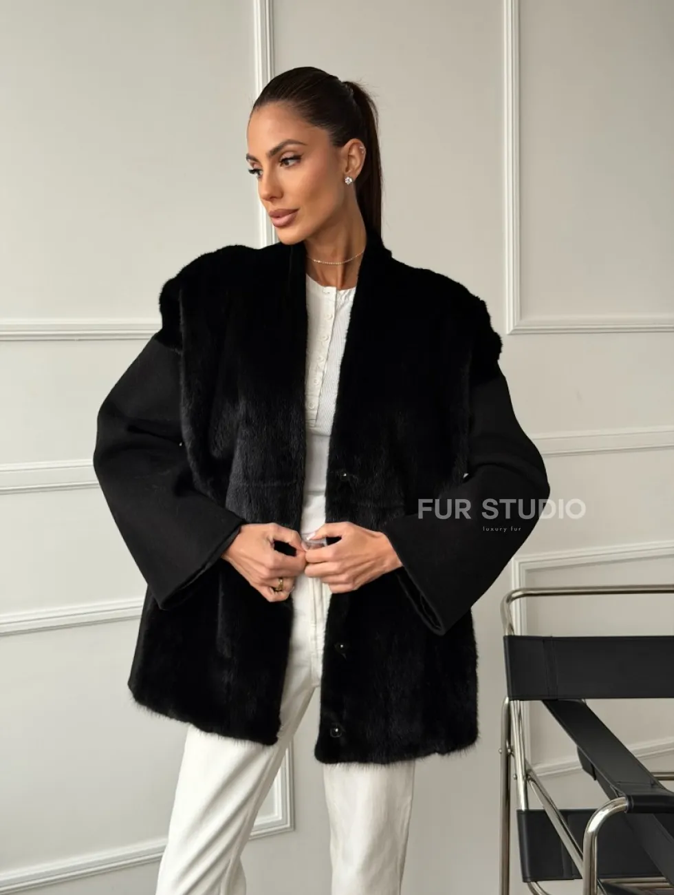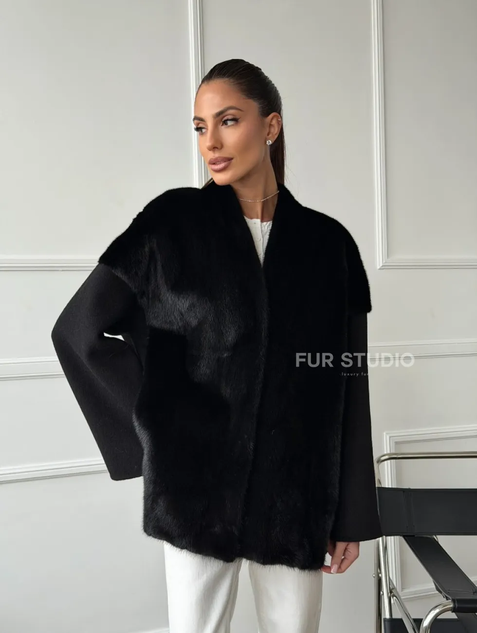 Полупальто демисезонное шерстяное с отделкой из меха норки 101802