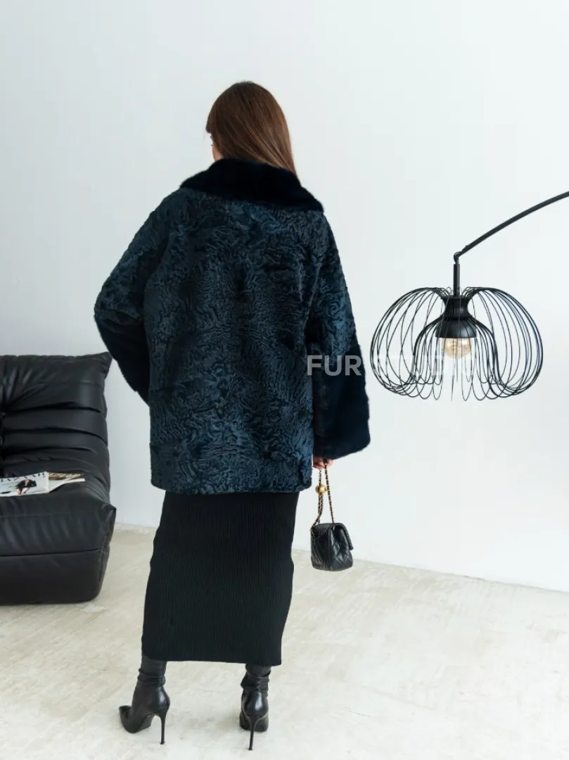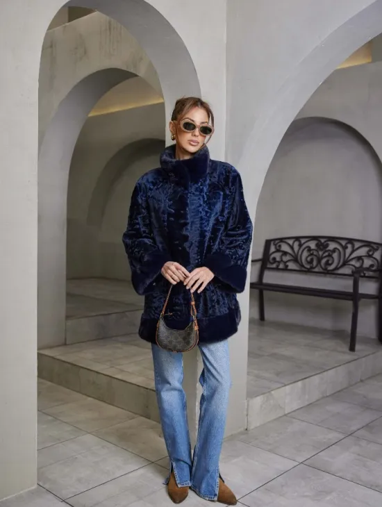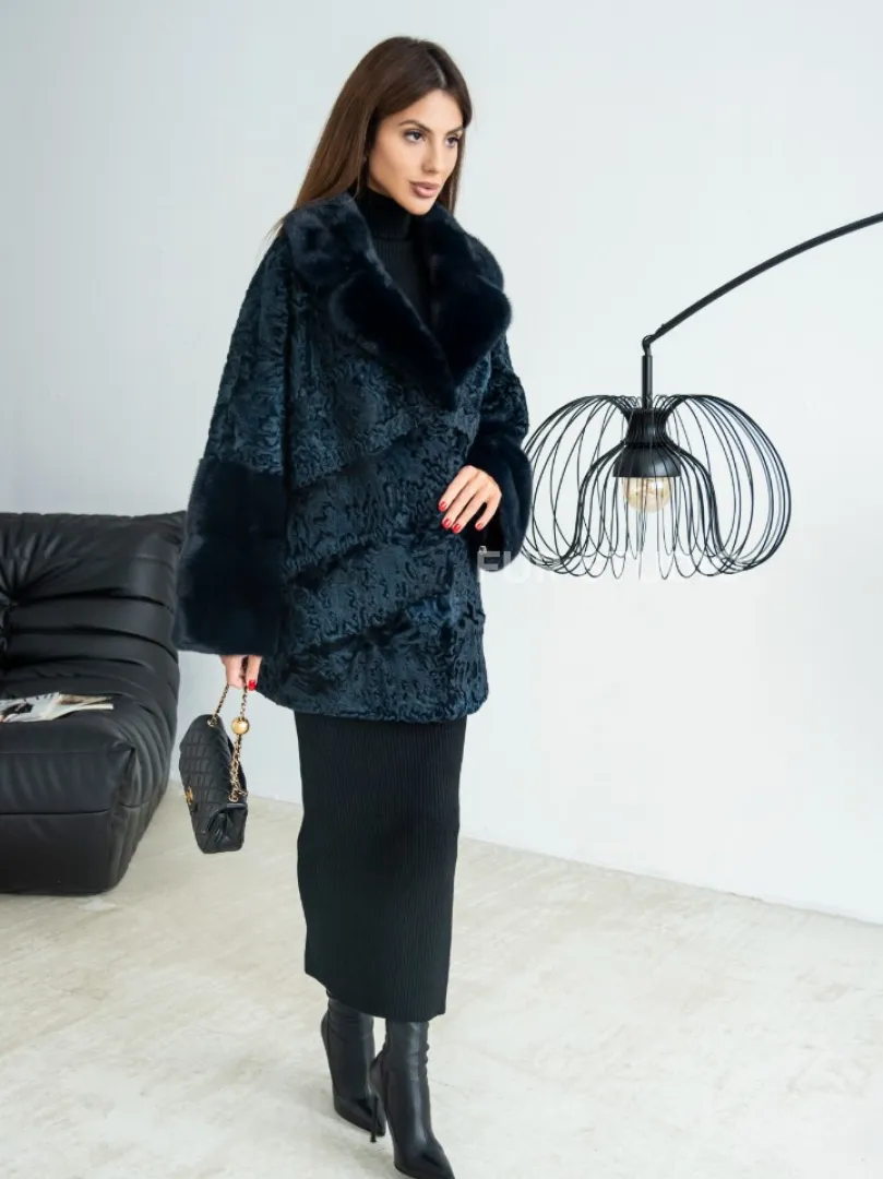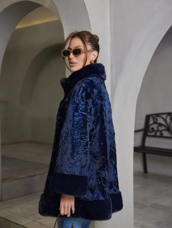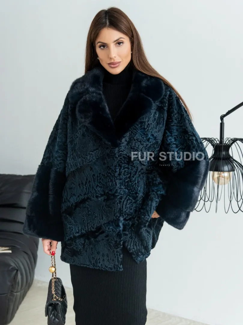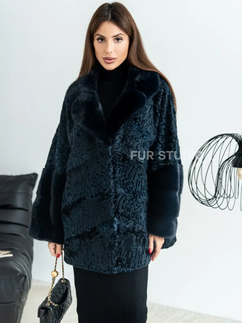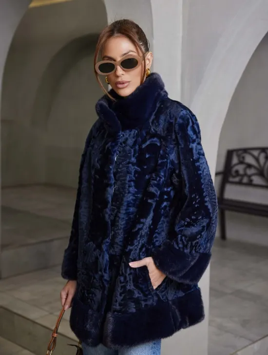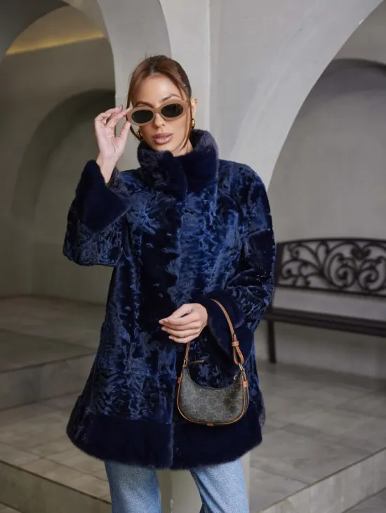 Полушубок из каракульчи свободного кроя с отделкой из меха норки - цвет темно-синий доступна для покупки в нашем шоуруме Furs Studio в Москве. У нас так же есть доставка во все города России. Добавьте немного роскоши в свой гардероб с этой шубой, которая будет служить вам многие годы.