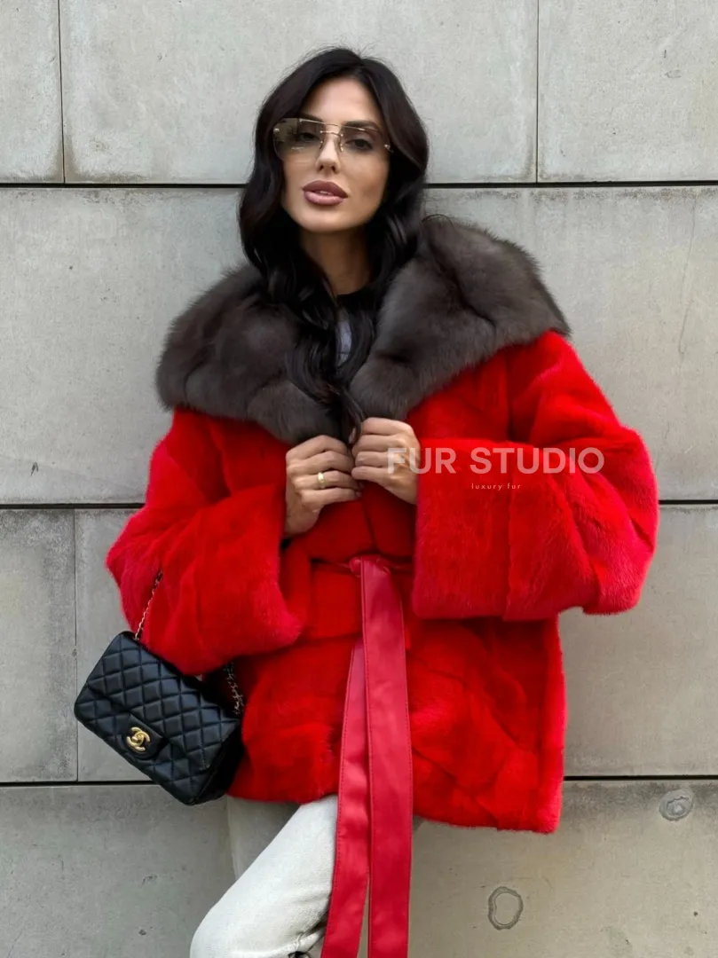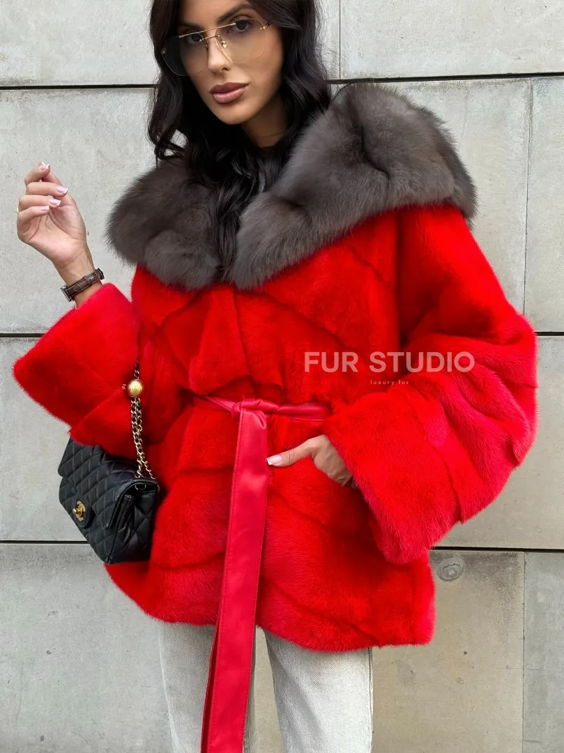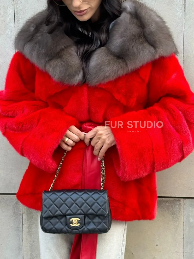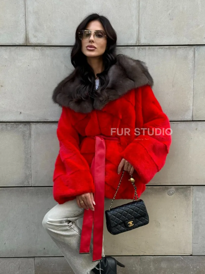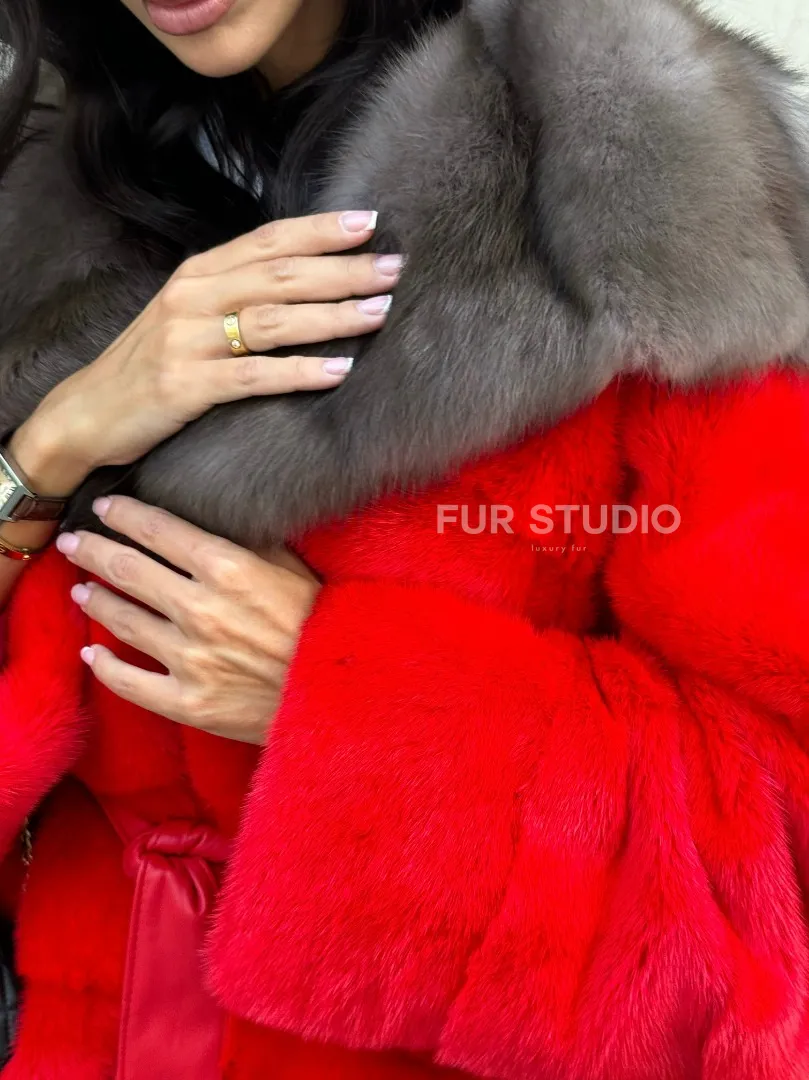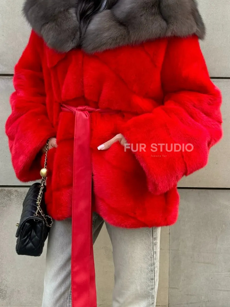 Полушубок из меха норки с капюшоном из куницы в карминовом цвете (красный) доступна для покупки в нашем шоуруме Furs Studio в Москве. У нас так же есть доставка во все города России. Добавьте немного роскоши в свой гардероб с этой шубой, которая будет служить вам многие годы.
