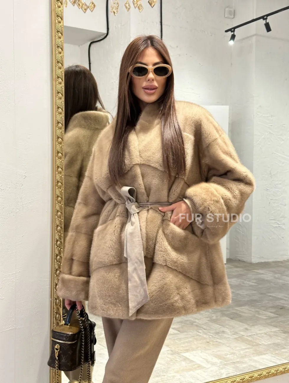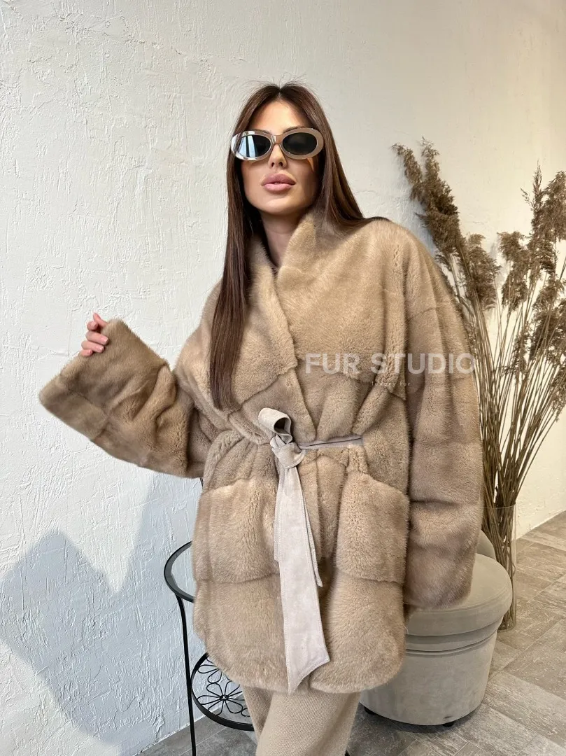 Длина оптимальна и комфортна в носке. Роскошный воротник выделяет изгибы шеи и не согреет в непогоду. Необычный пояс очертит талию и сделает ее тоньше. Модель сочетается с любым гардеробом: от классического стиля до вечерних нарядов. Купить полушубок из меха норки в цвете пастель могут женщины, которые обладают изысканным и тонким вкусом стиля.