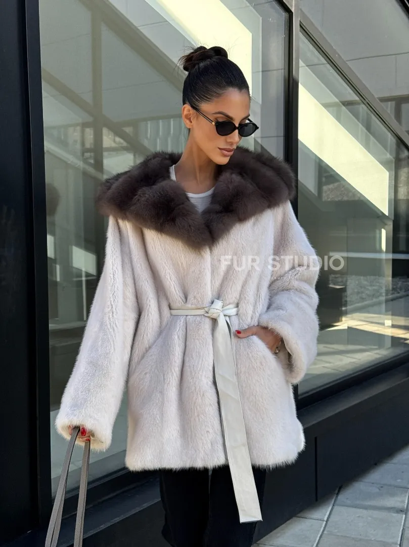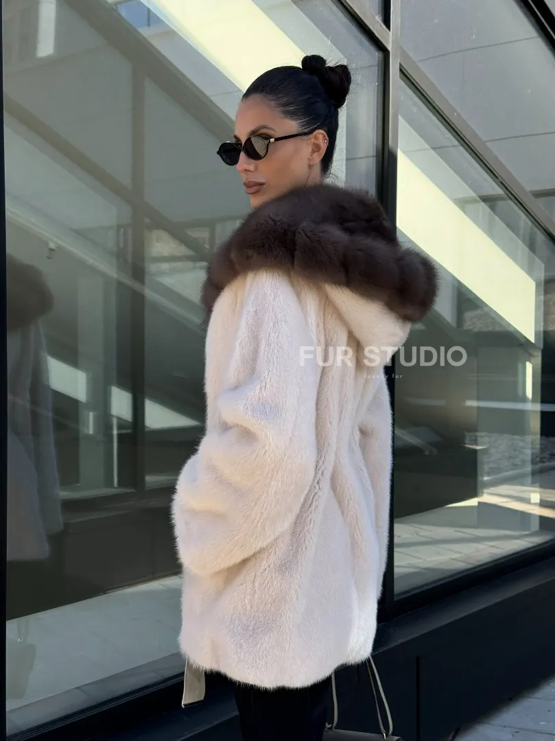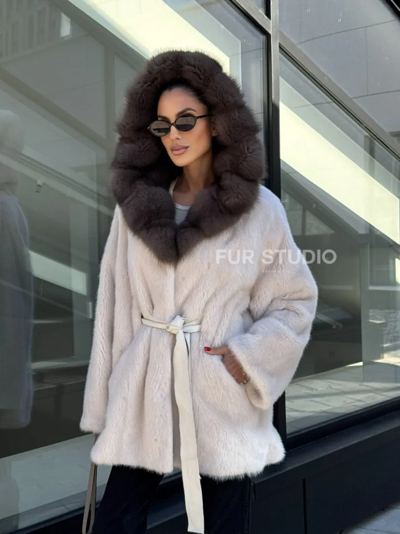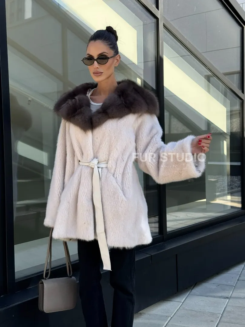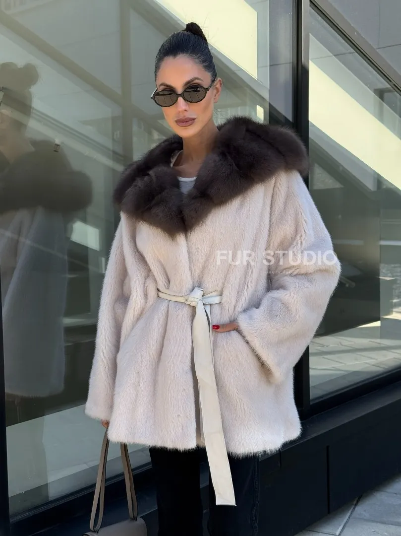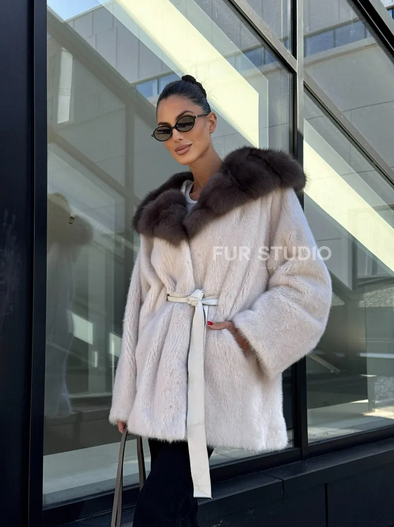 Полушубок из светлой норки с капюшоном куница с поясом доступна для покупки в нашем шоуруме Furs Studio в Москве. У нас так же есть доставка во все города России. Добавьте немного роскоши в свой гардероб с этой шубой, которая будет служить вам многие годы.