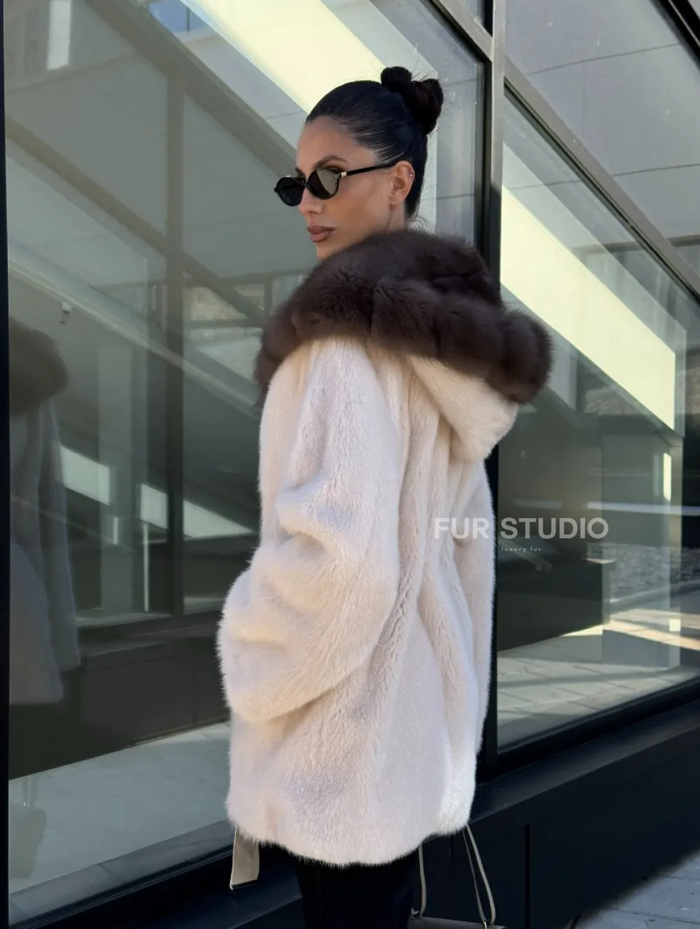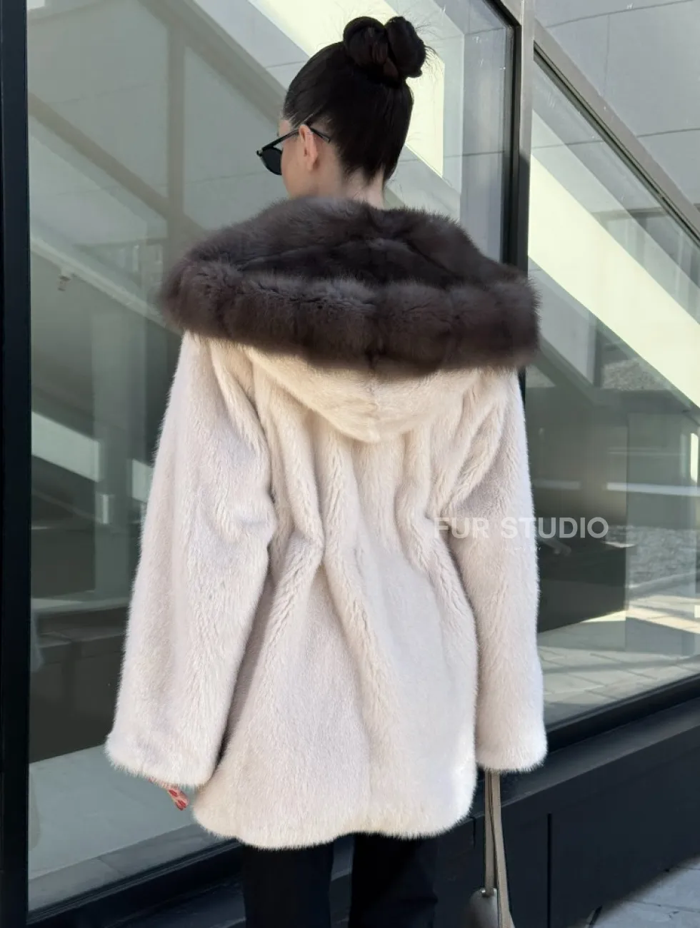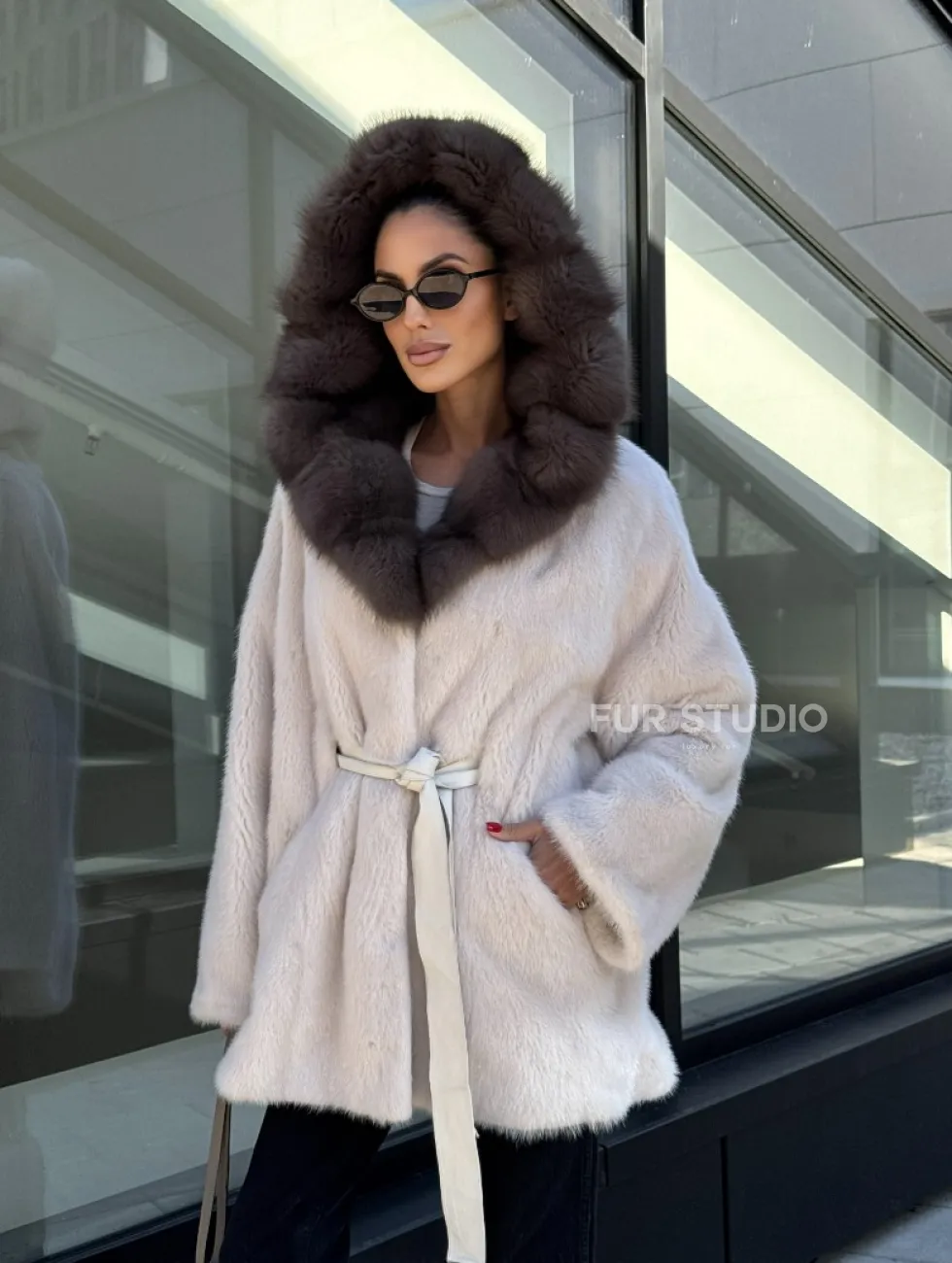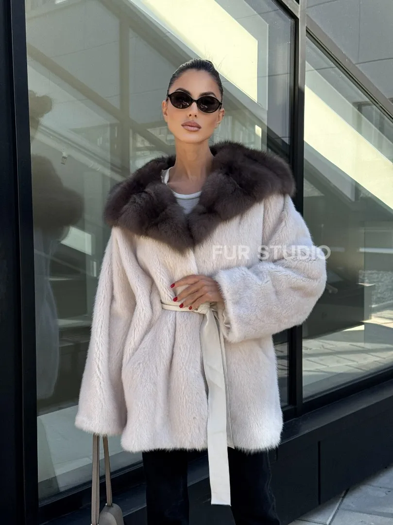 Полушубок из светлой норки с капюшоном куница с поясом доступна для покупки в нашем шоуруме Furs Studio в Москве. У нас так же есть доставка во все города России. Добавьте немного роскоши в свой гардероб с этой шубой, которая будет служить вам многие годы.