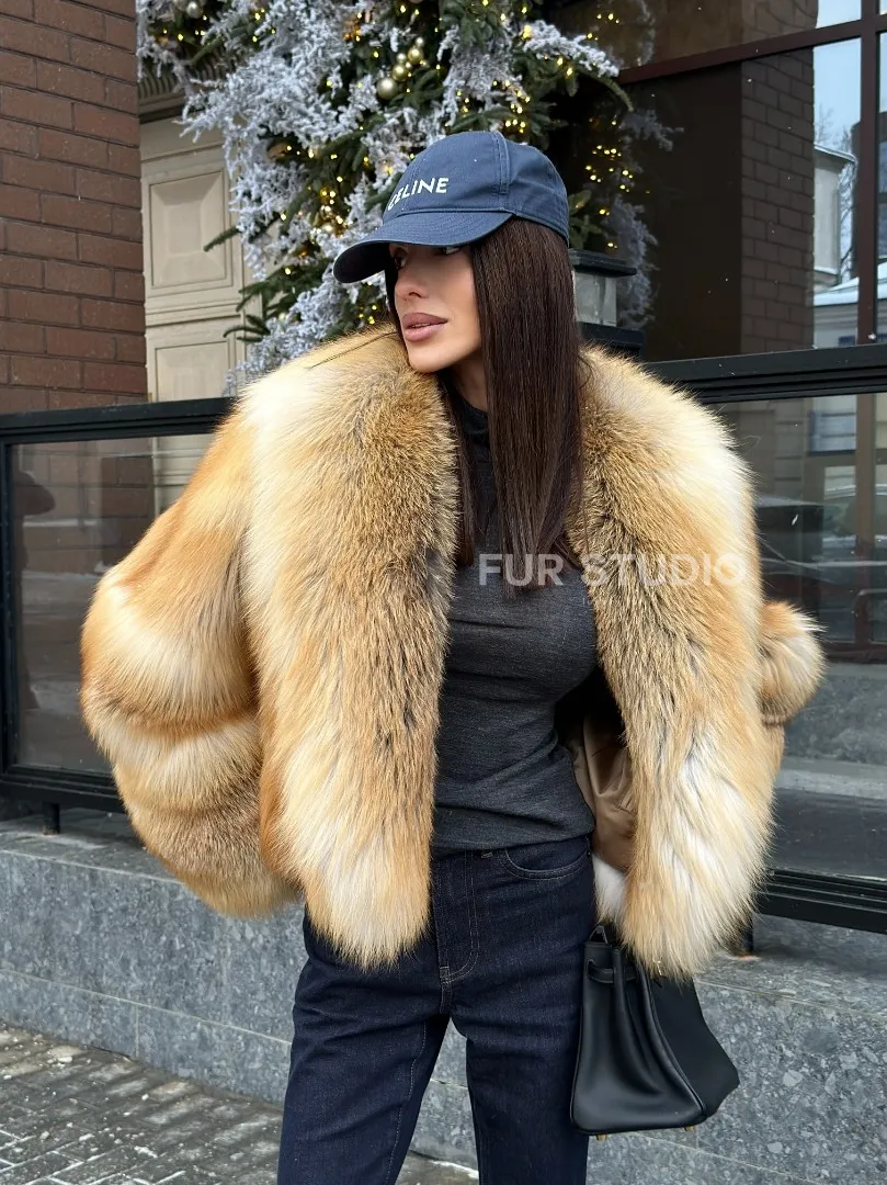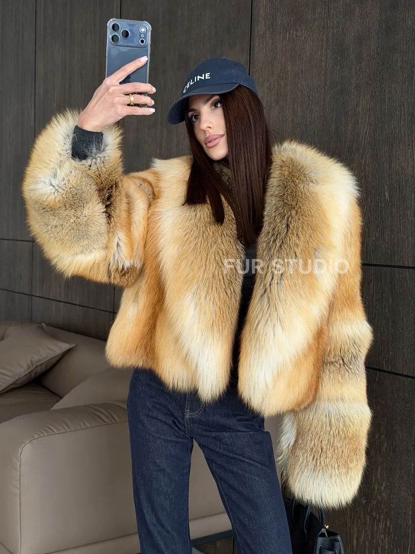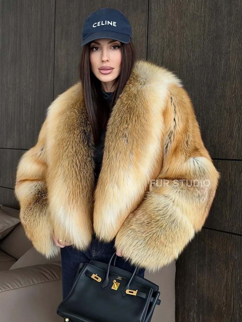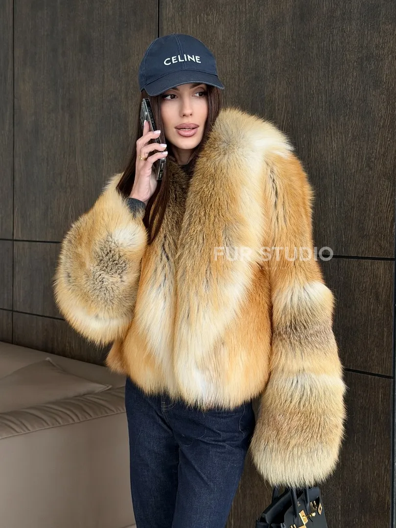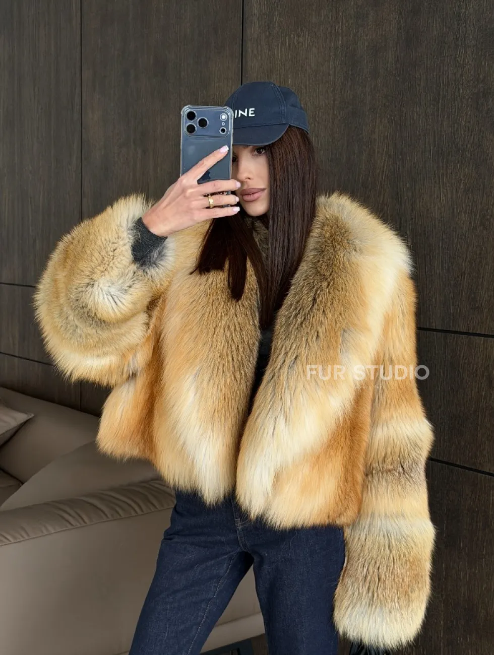 Полушубок-кроп с большим шалевым воротником из меха лисы Golden Sunrise доступна для покупки в нашем шоуруме Furs Studio в Москве. У нас так же есть доставка во все города России. Добавьте немного роскоши в свой гардероб с этой шубой, которая будет служить вам многие годы.