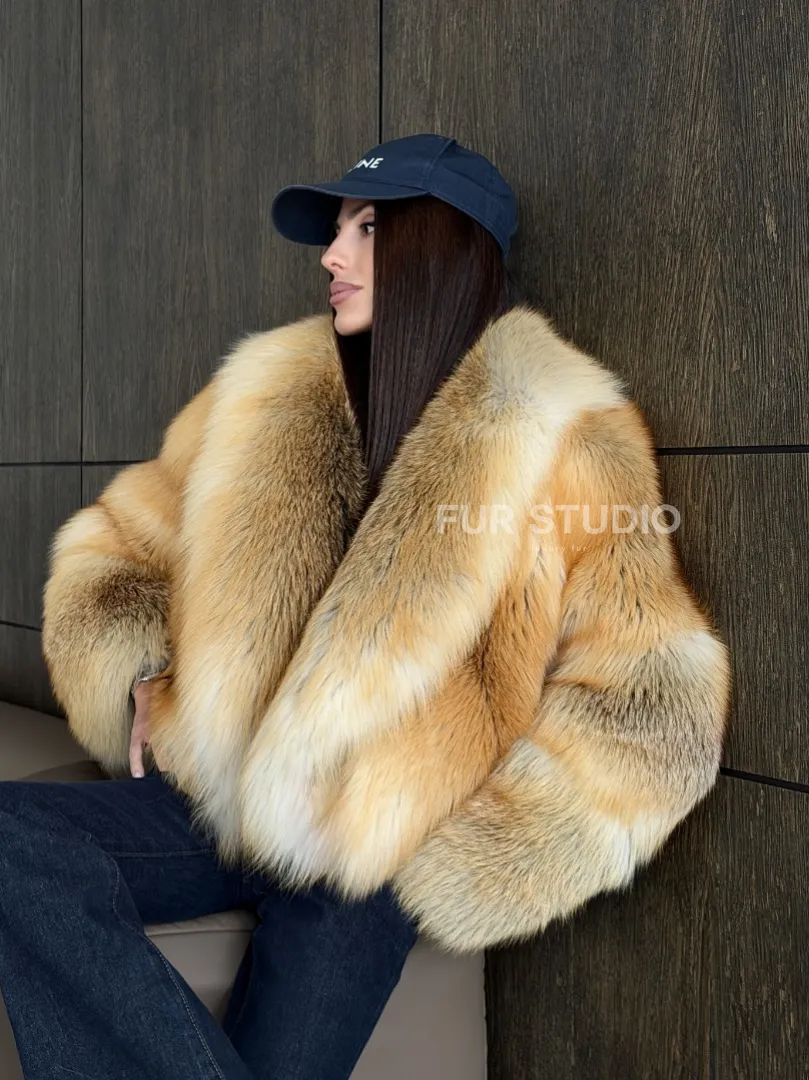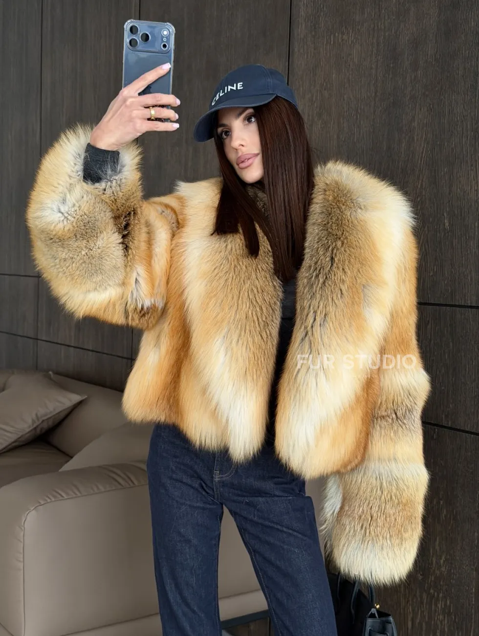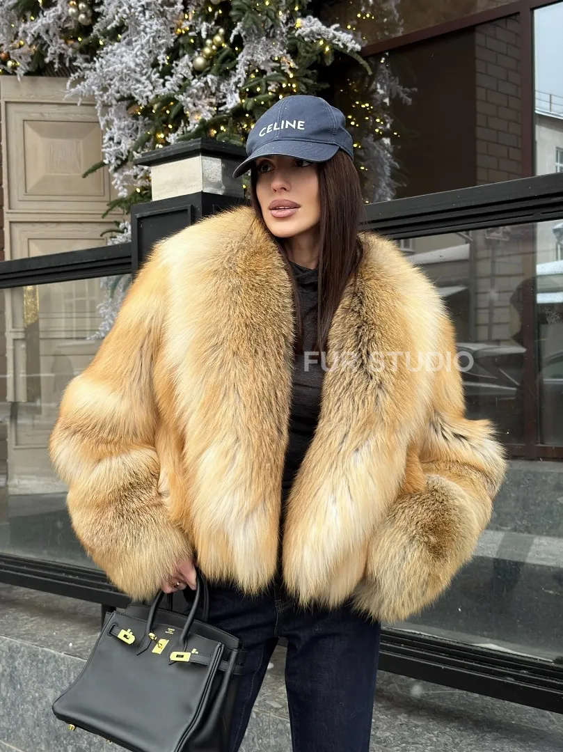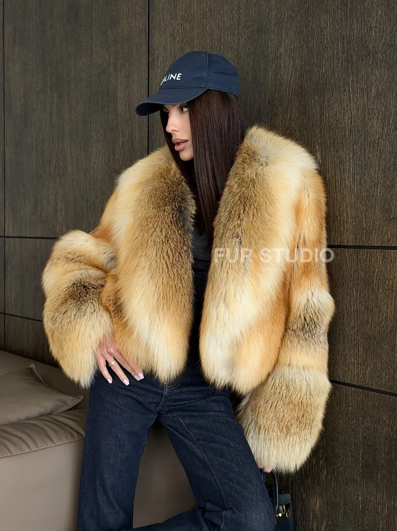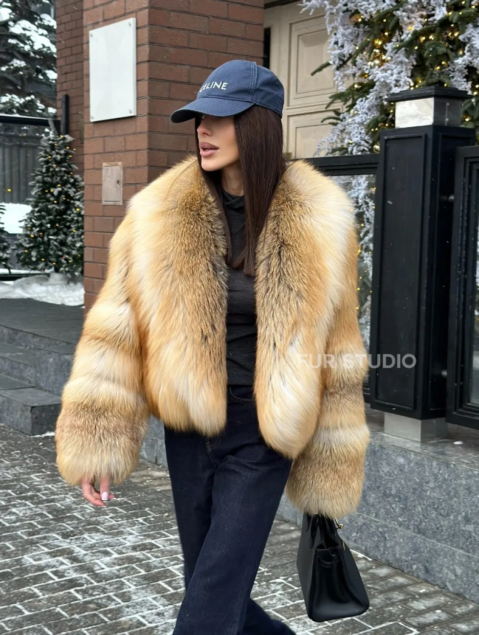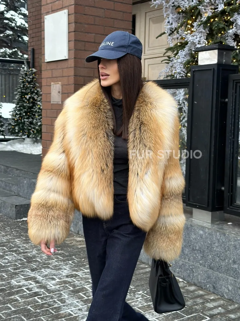 Полушубок-кроп с большим шалевым воротником из меха лисы Golden Sunrise доступна для покупки в нашем шоуруме Furs Studio в Москве. У нас так же есть доставка во все города России. Добавьте немного роскоши в свой гардероб с этой шубой, которая будет служить вам многие годы.