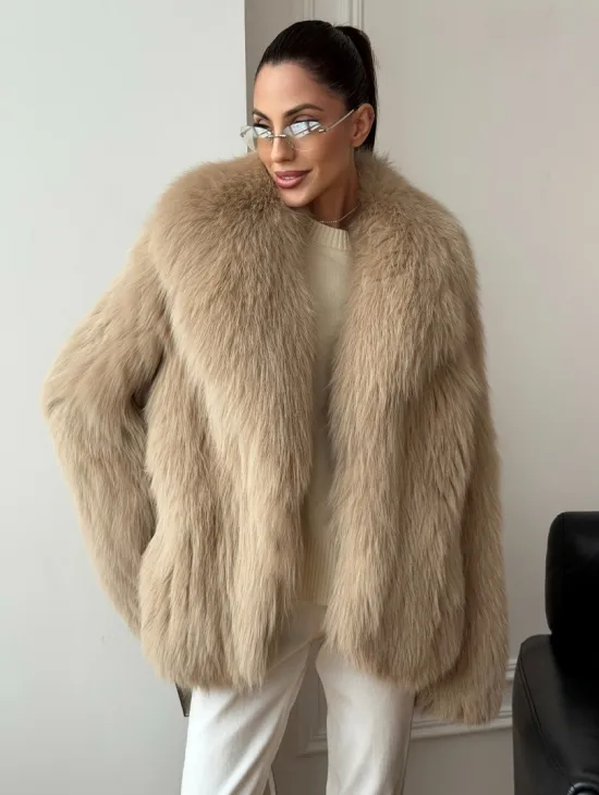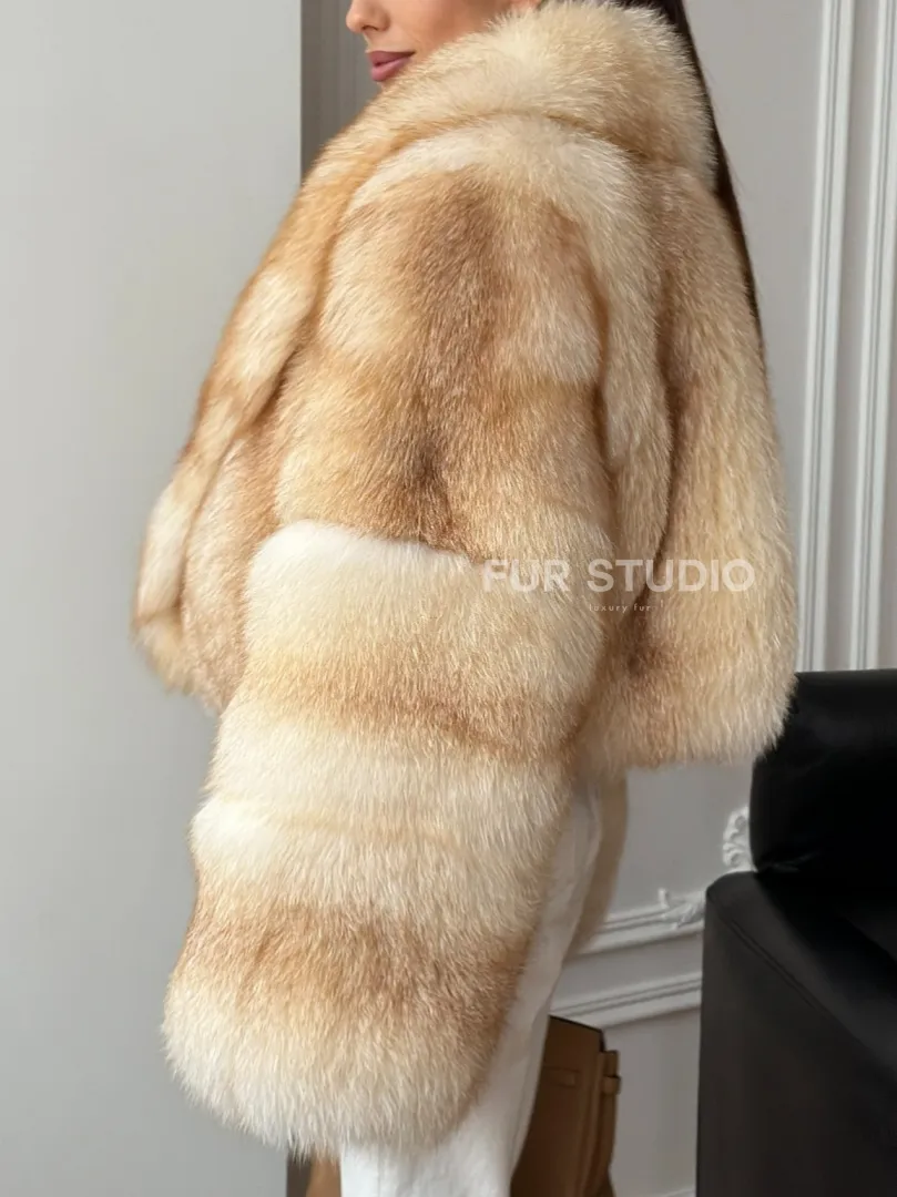 Мех данной шубы финский песец, цвет бежевый. Предлагается в размерах от 40 до 48. Длина модели 45-50 см, что выгодно подчеркивает фигуру девушек. Эта модель идеально подойдет для девушек и женщин, предпочитающих роскошные натуральные меха.
