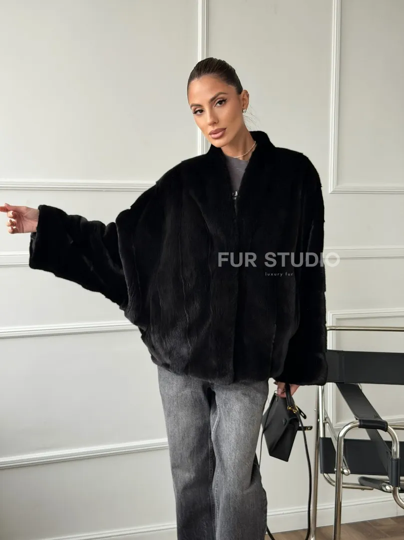 Мех данной шубы аукционная норка, цвет черный. Предлагается в размерах от 40 до 56 (oversize). Длина модели 60-65 см, что выгодно подчеркивает фигуру девушек. Эта модель идеально подойдет для девушек и женщин, предпочитающих роскошные натуральные меха.