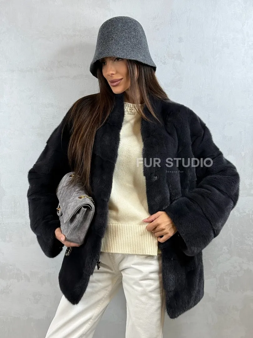 Полушубок норковый - темный графит доступна для покупки в нашем шоуруме Furs Studio в Москве. У нас так же есть доставка во все города России. Добавьте немного роскоши в свой гардероб с этой шубой, которая будет служить вам многие годы.