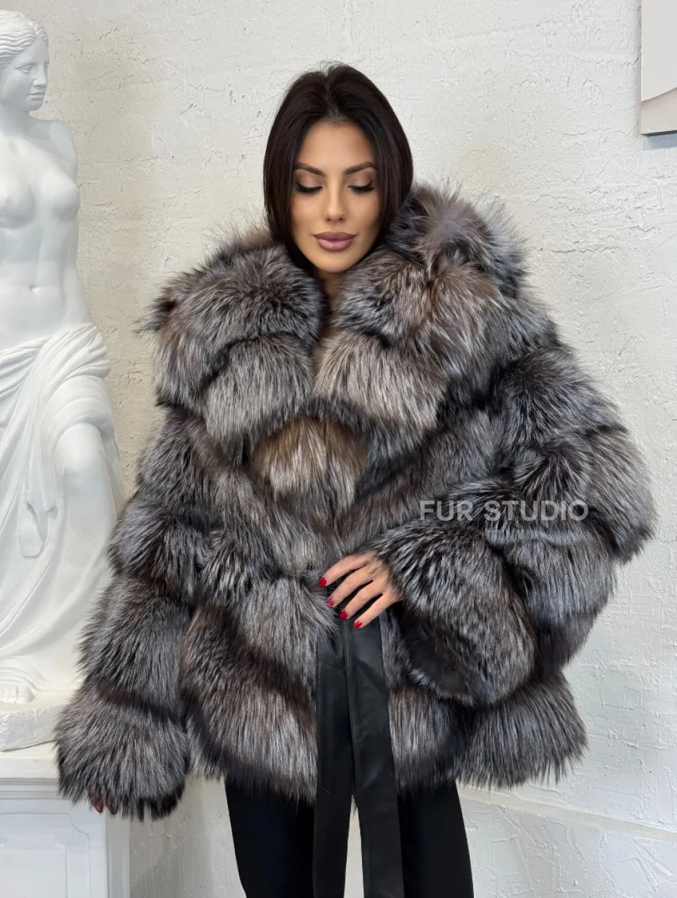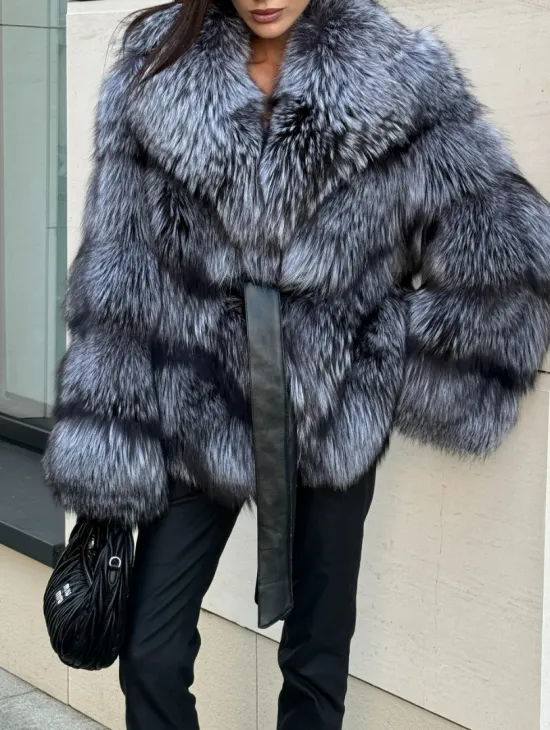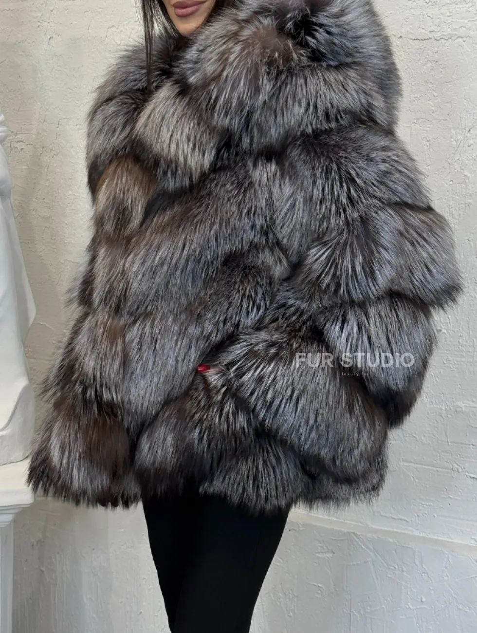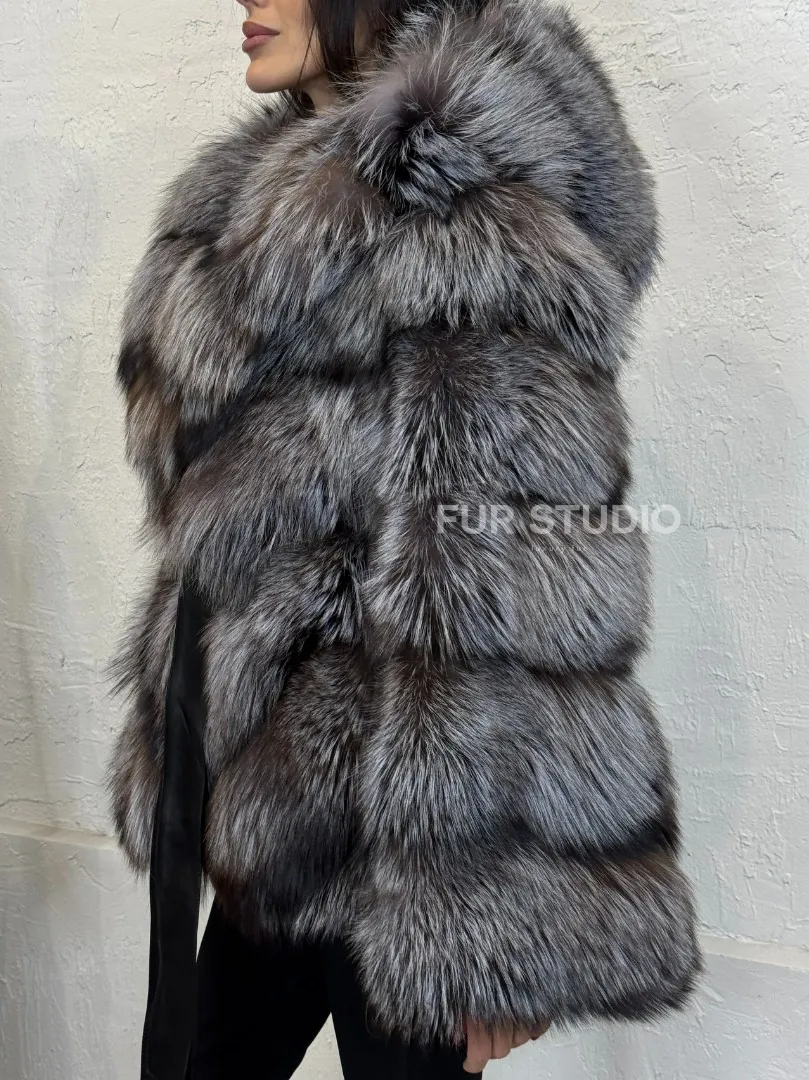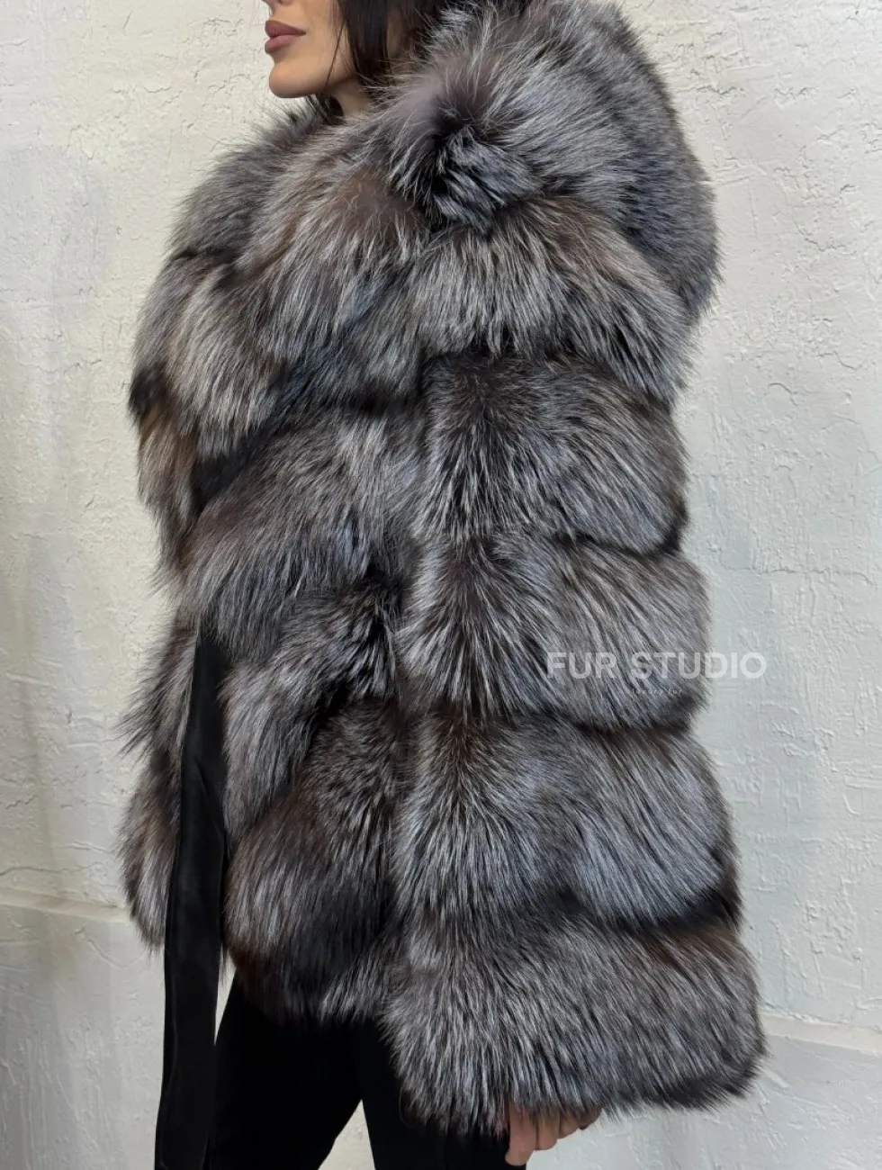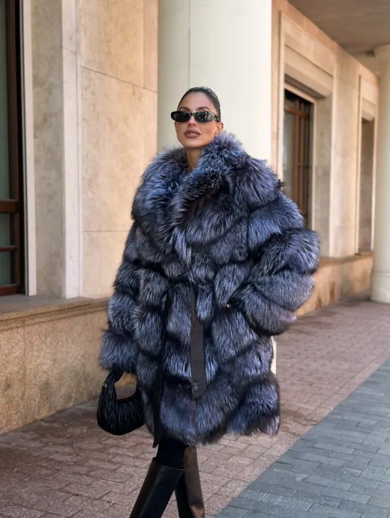 Полушубок с капюшоном из натурального меха лисы чернобурки с поясом доступна для покупки в нашем шоуруме Furs Studio в Москве. У нас так же есть доставка во все города России. Добавьте немного роскоши в свой гардероб с этой шубой, которая будет служить вам многие годы.