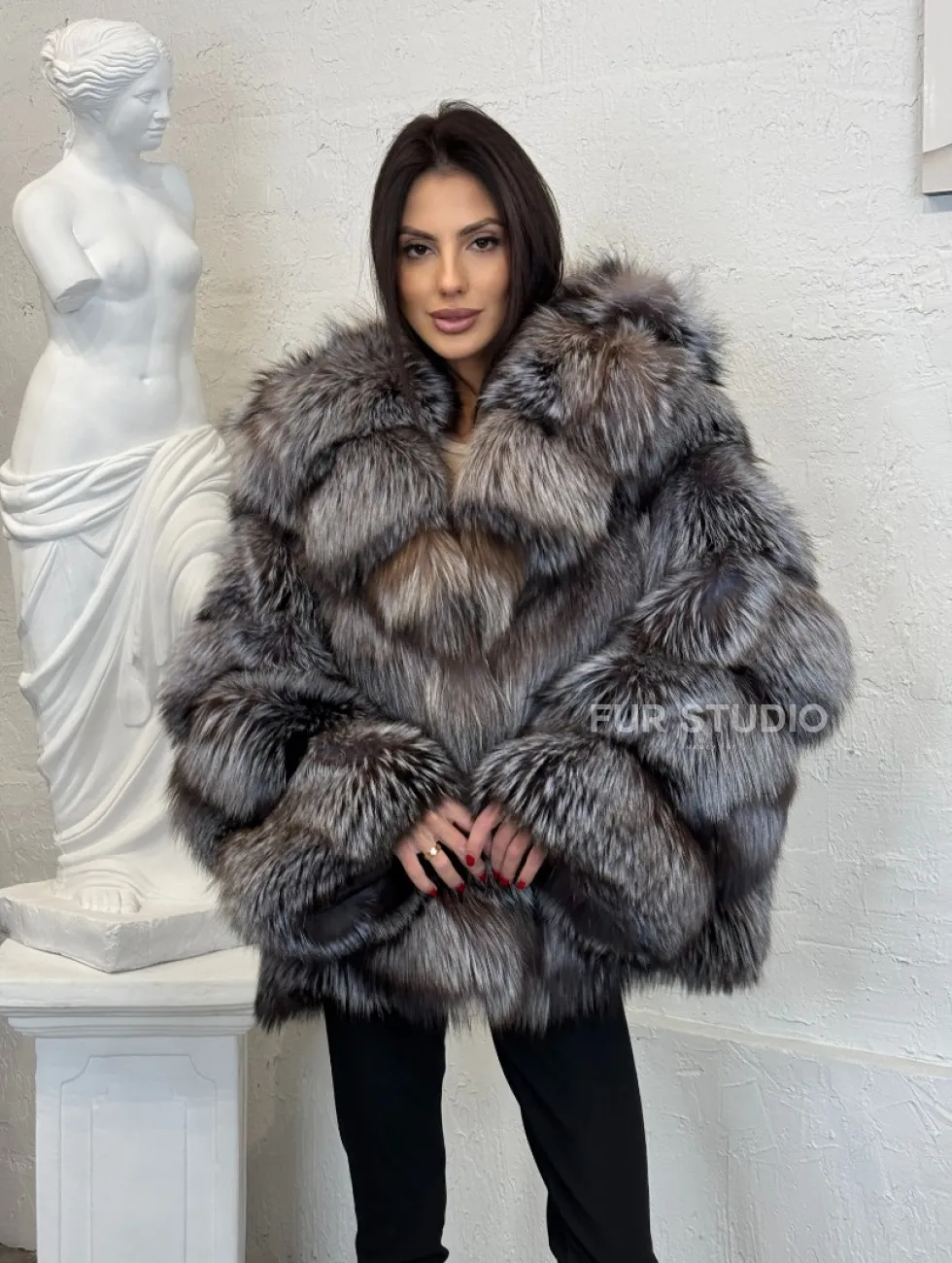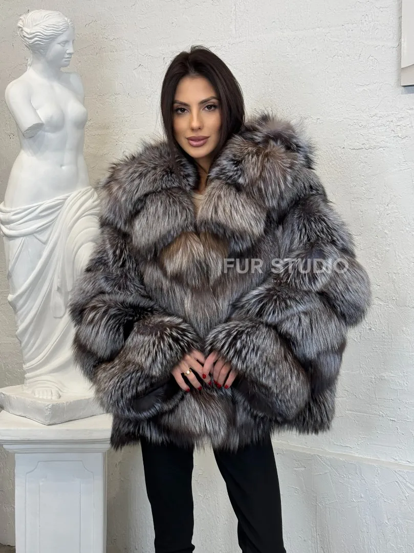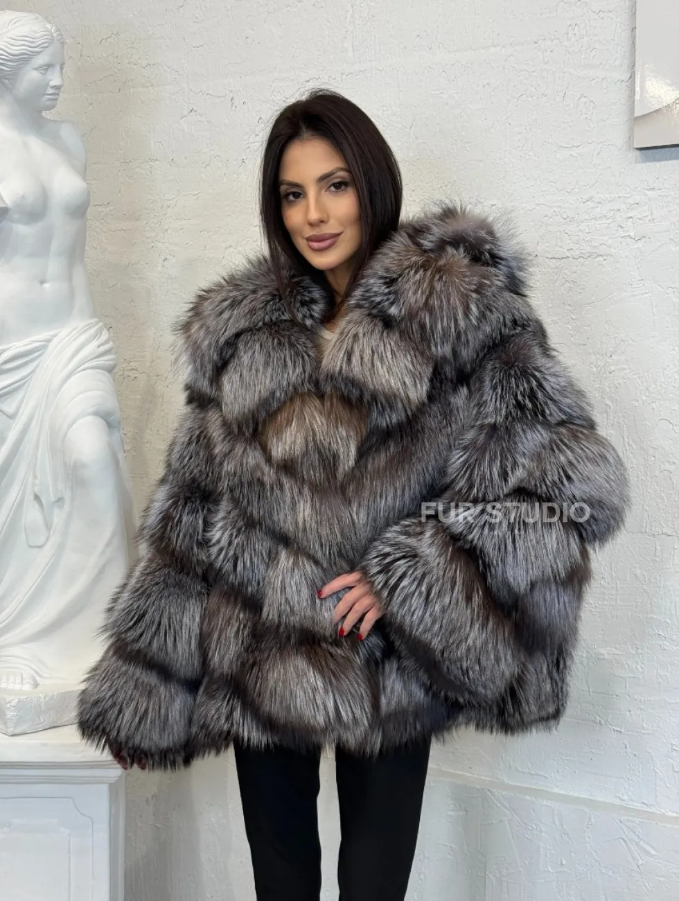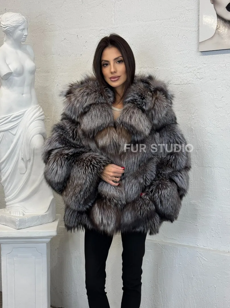 Полушубок с капюшоном из натурального меха лисы чернобурки с поясом доступна для покупки в нашем шоуруме Furs Studio в Москве. У нас так же есть доставка во все города России. Добавьте немного роскоши в свой гардероб с этой шубой, которая будет служить вам многие годы.