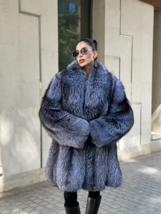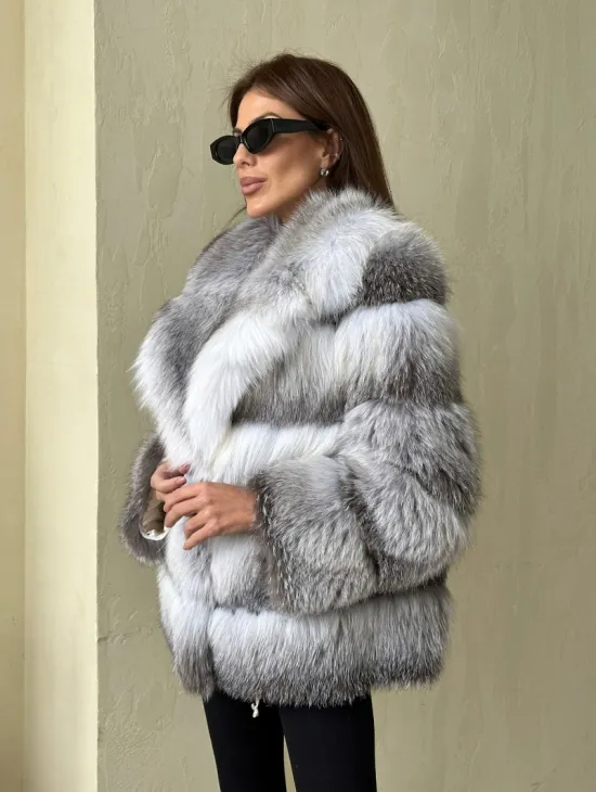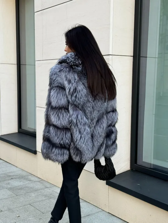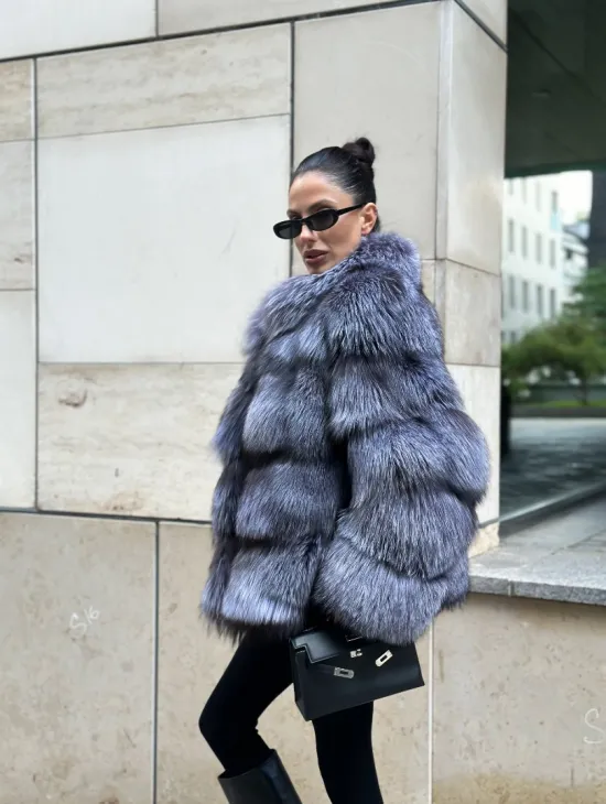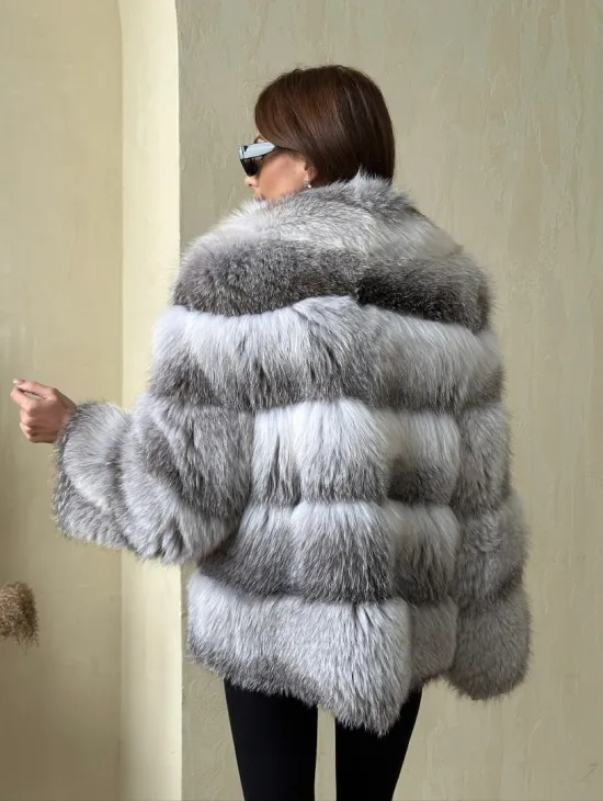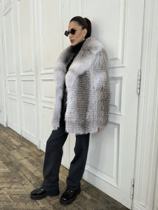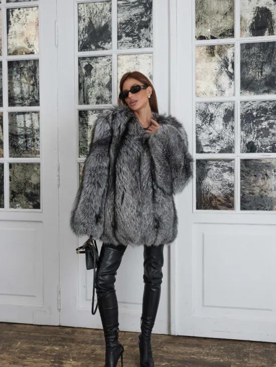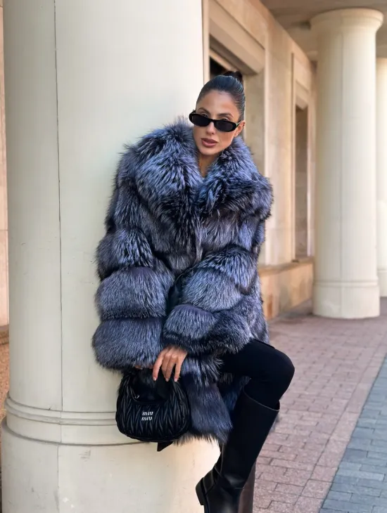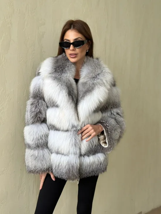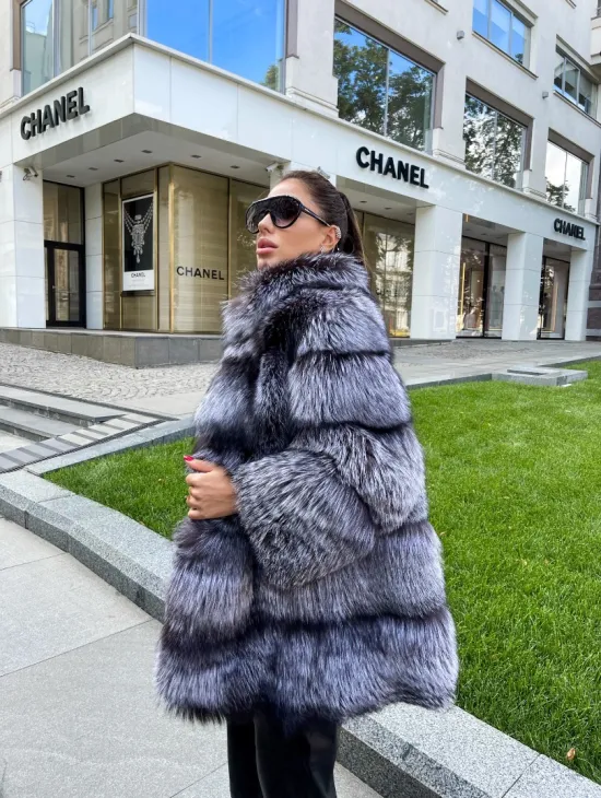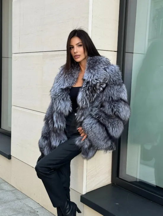 Мех данной шубы лиса, цвет серый. Предлагается в размерах от 42 до 50. Длина модели 65-70 см, что выгодно подчеркивает фигуру девушек. Эта модель идеально подойдет для девушек и женщин, предпочитающих роскошные натуральные меха.