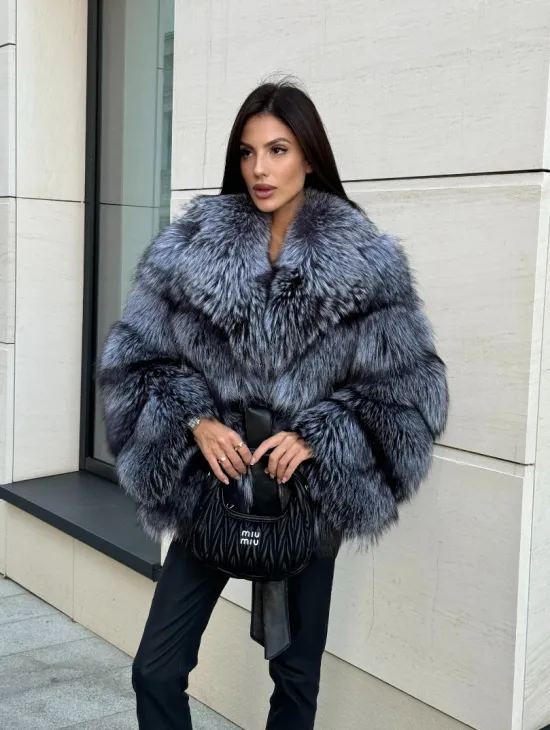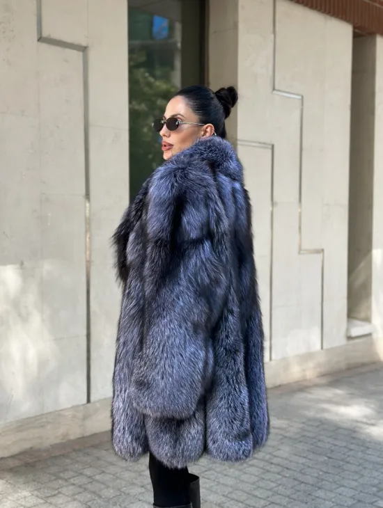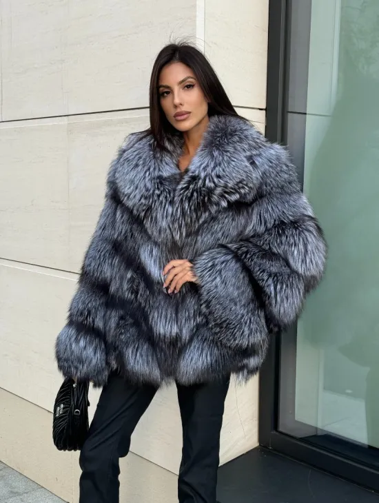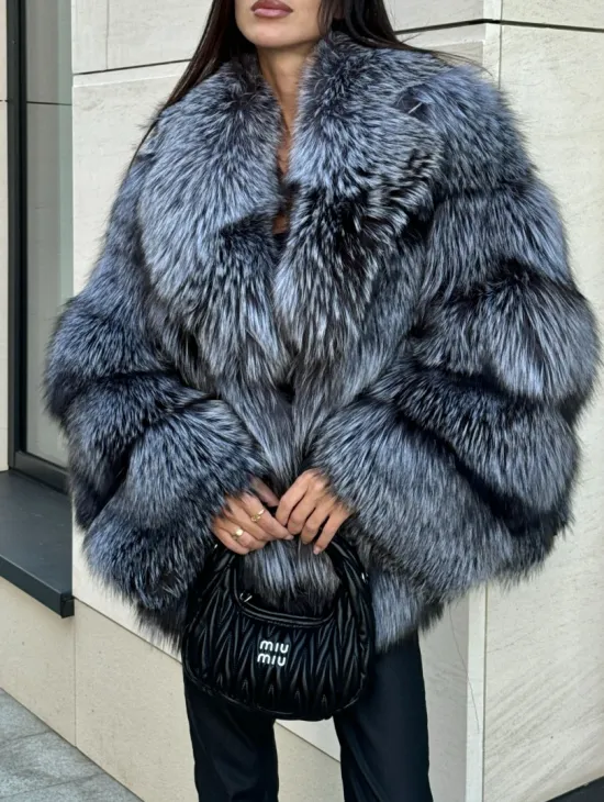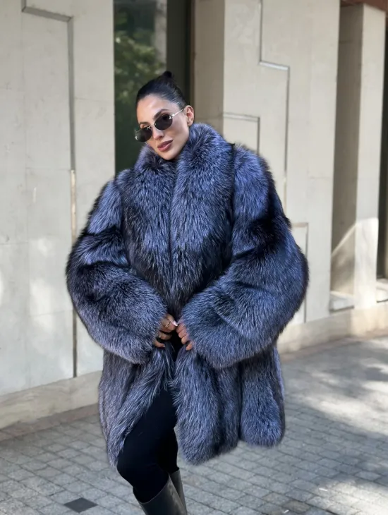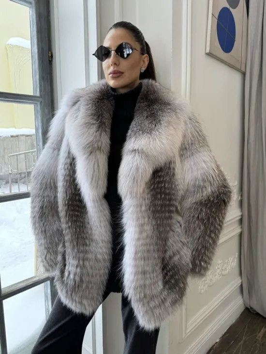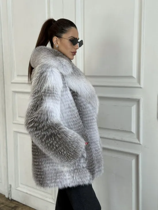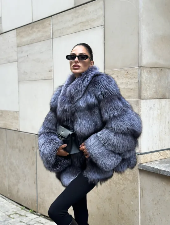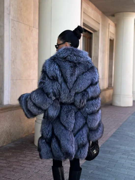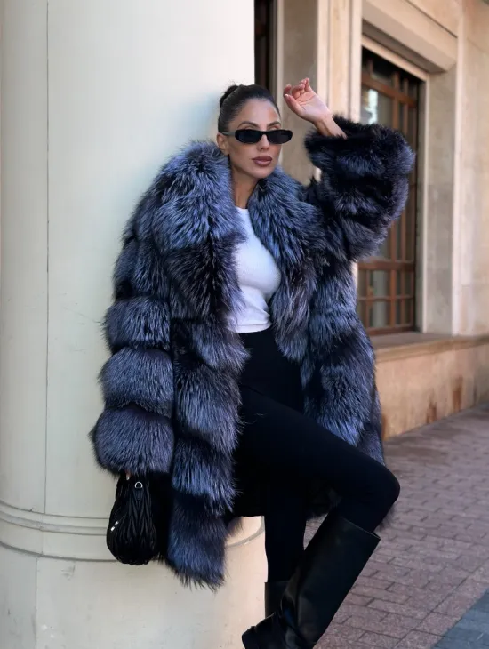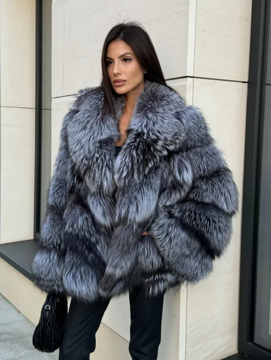 Мех данной шубы лиса, цвет серый. Предлагается в размерах от 42 до 50. Длина модели 65-70 см, что выгодно подчеркивает фигуру девушек. Эта модель идеально подойдет для девушек и женщин, предпочитающих роскошные натуральные меха.