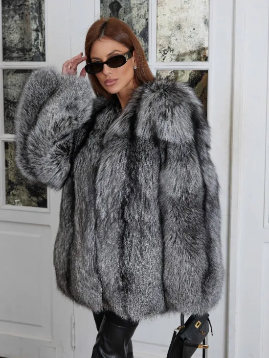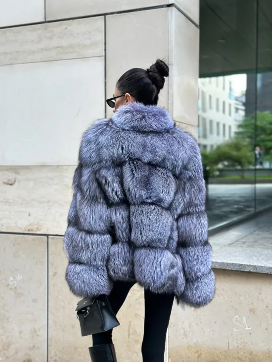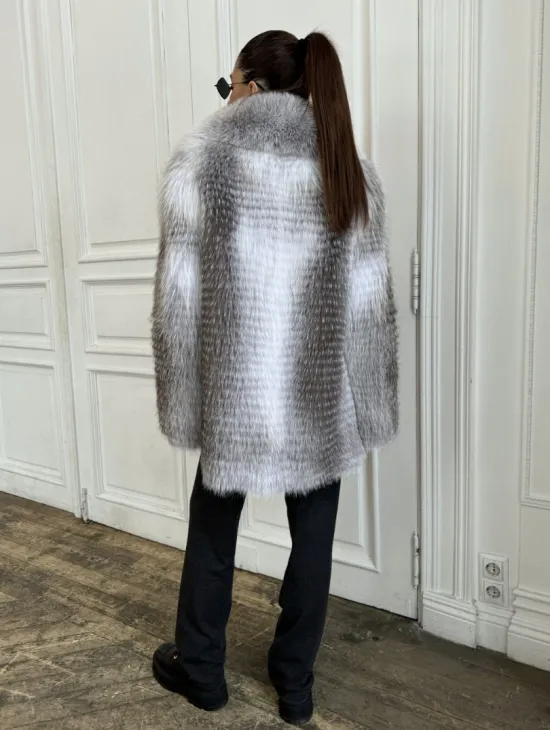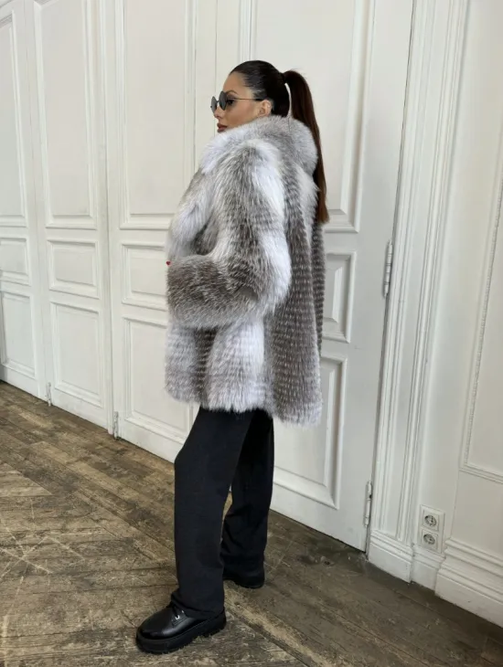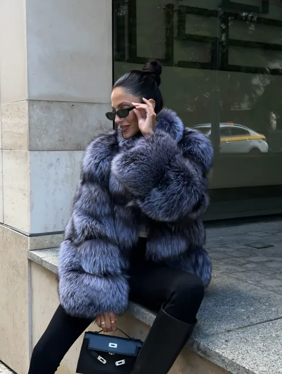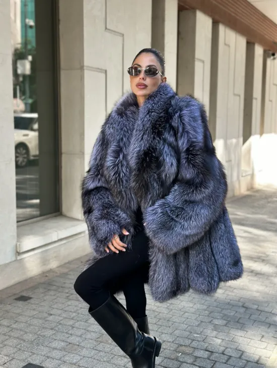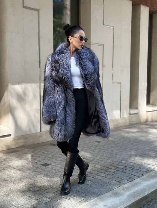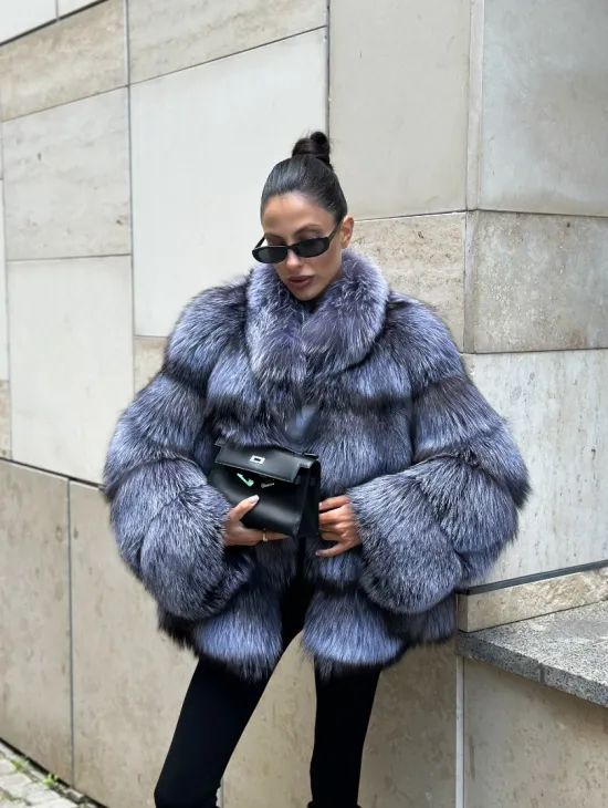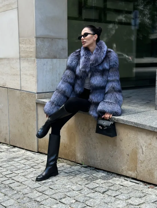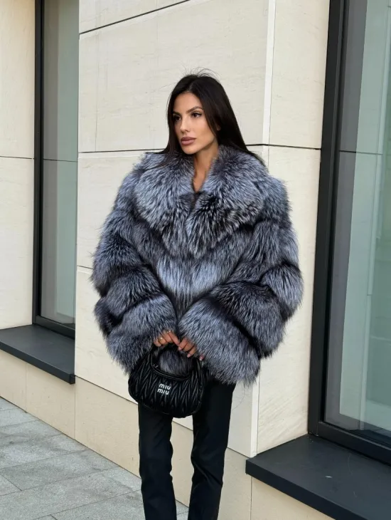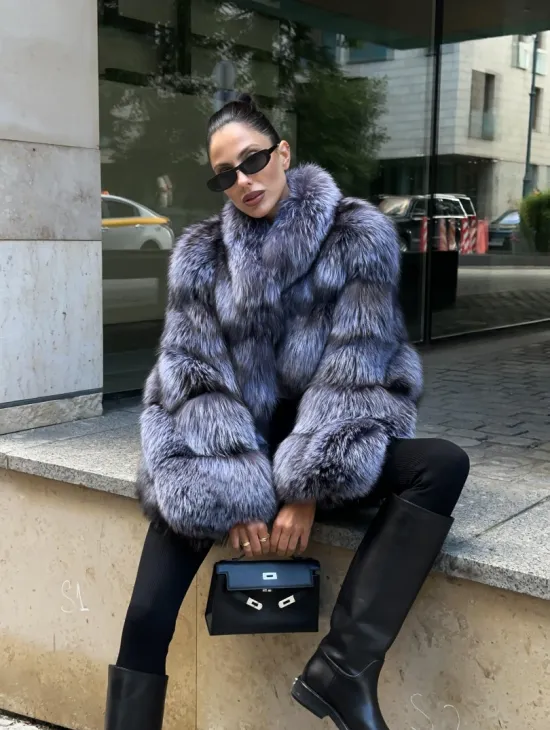 Мех данной шубы лиса, цвет серый. Предлагается в размерах от 42 до 50. Длина модели 65-70 см, что выгодно подчеркивает фигуру девушек. Эта модель идеально подойдет для девушек и женщин, предпочитающих роскошные натуральные меха.