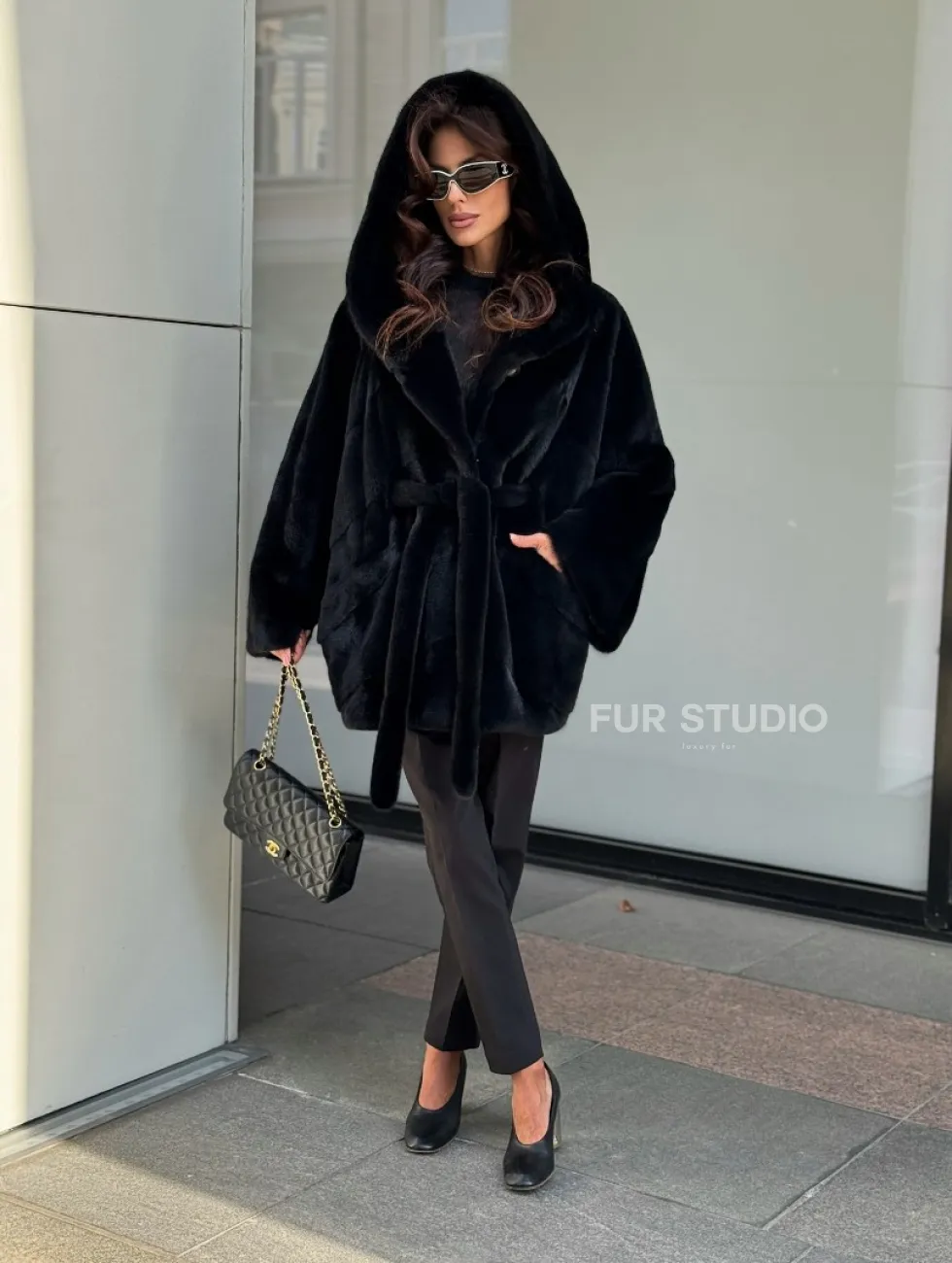 Пончо из норки с капюшоном кобра - черно-синий доступна для покупки в нашем шоуруме Furs Studio в Москве. У нас так же есть доставка во все города России. Добавьте немного роскоши в свой гардероб с этой шубой, которая будет служить вам многие годы.