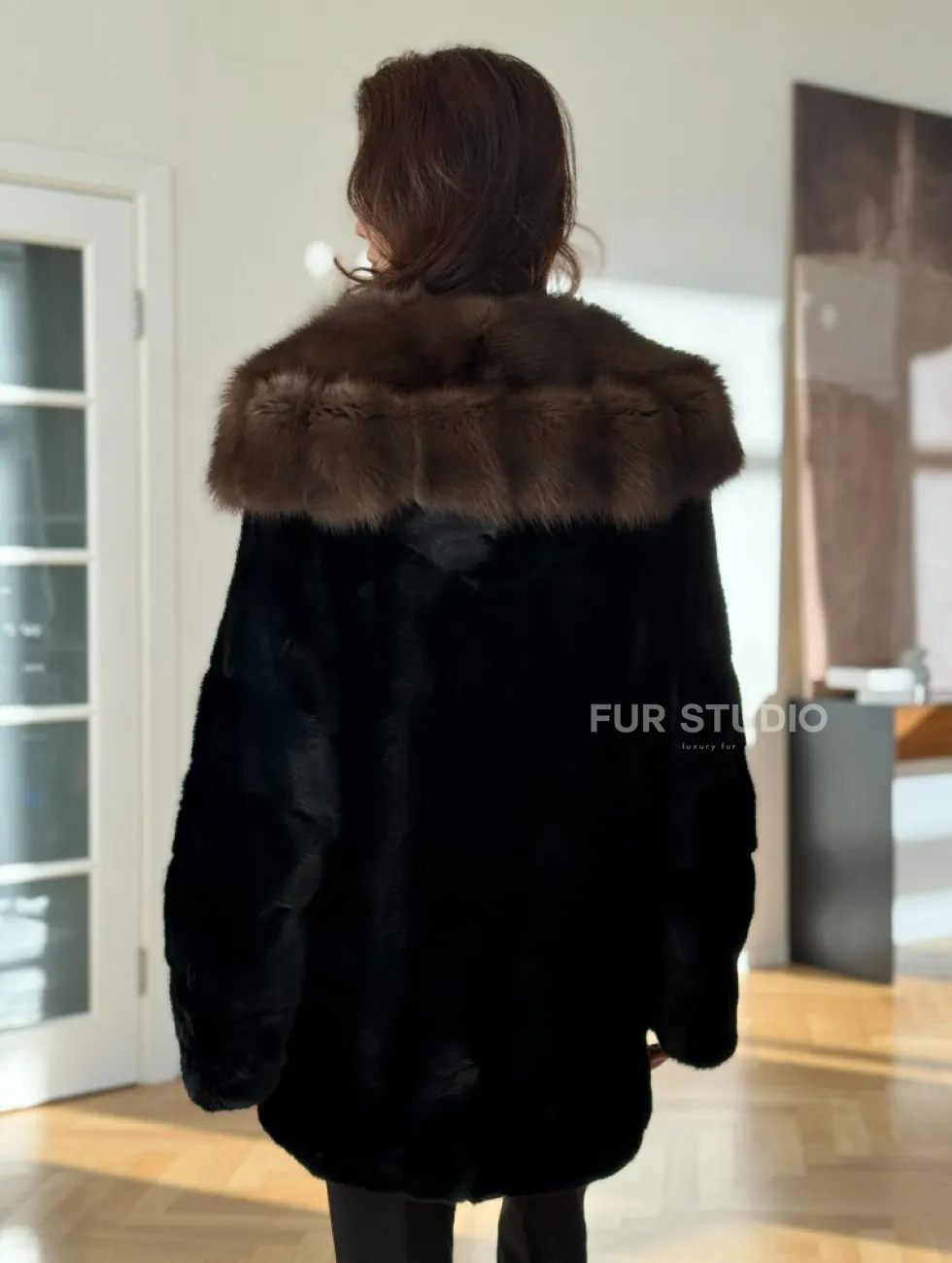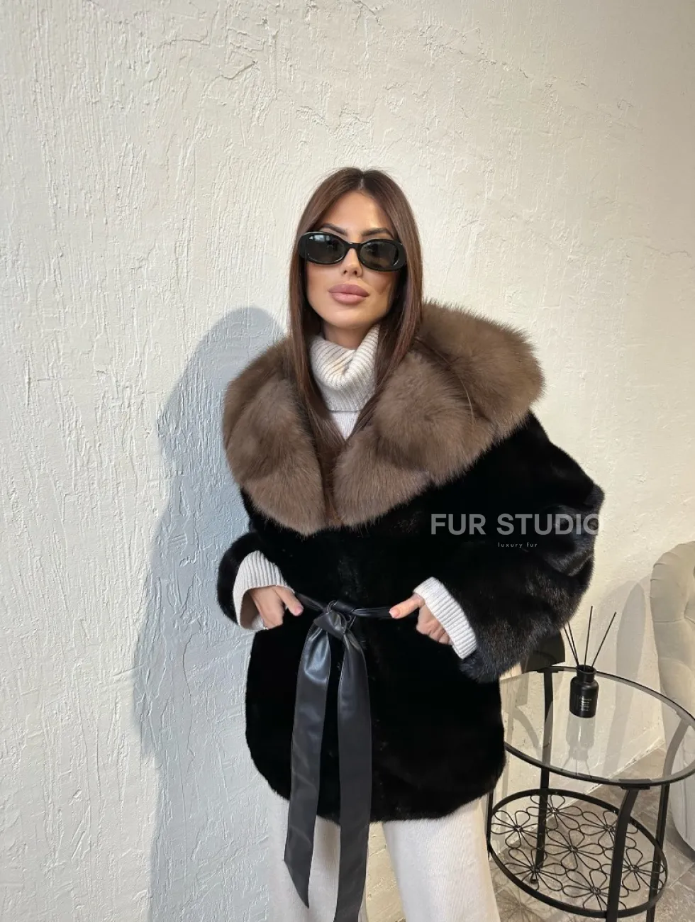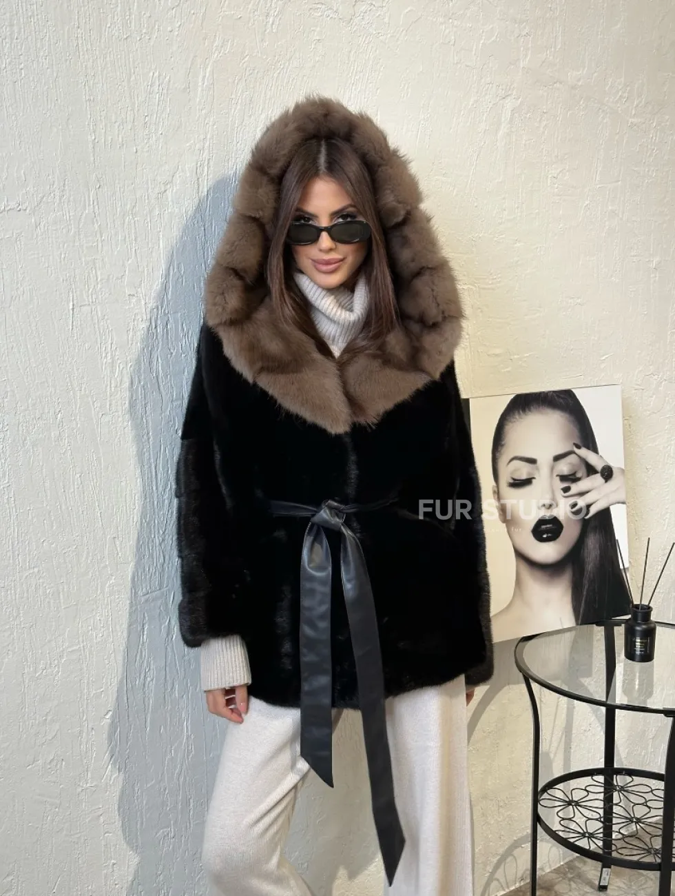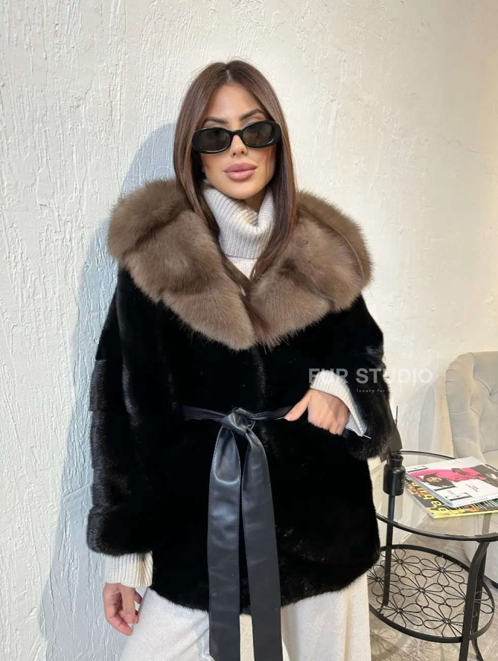 Широкие манжеты подчеркнут изящество кистей, а глубокие карманы согреют в непогоду. Оригинальный пояс выделяет талию и создает силуэт “песочных часов”. Модель сочетается с классической одеждой, подойдет под вечерний наряд. Купить пончо-шубу из плюшевой норки с капюшоном из меха куницы могут женщины, которые любят выглядеть роскошно вне зависимости от времени года.