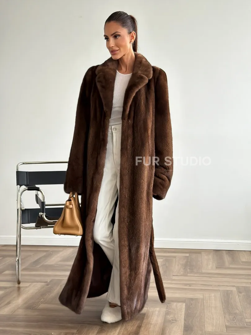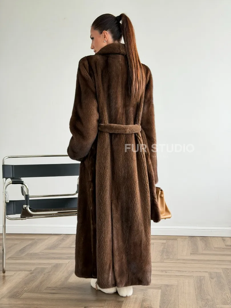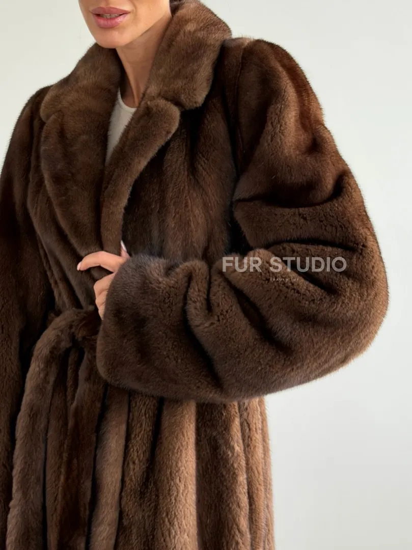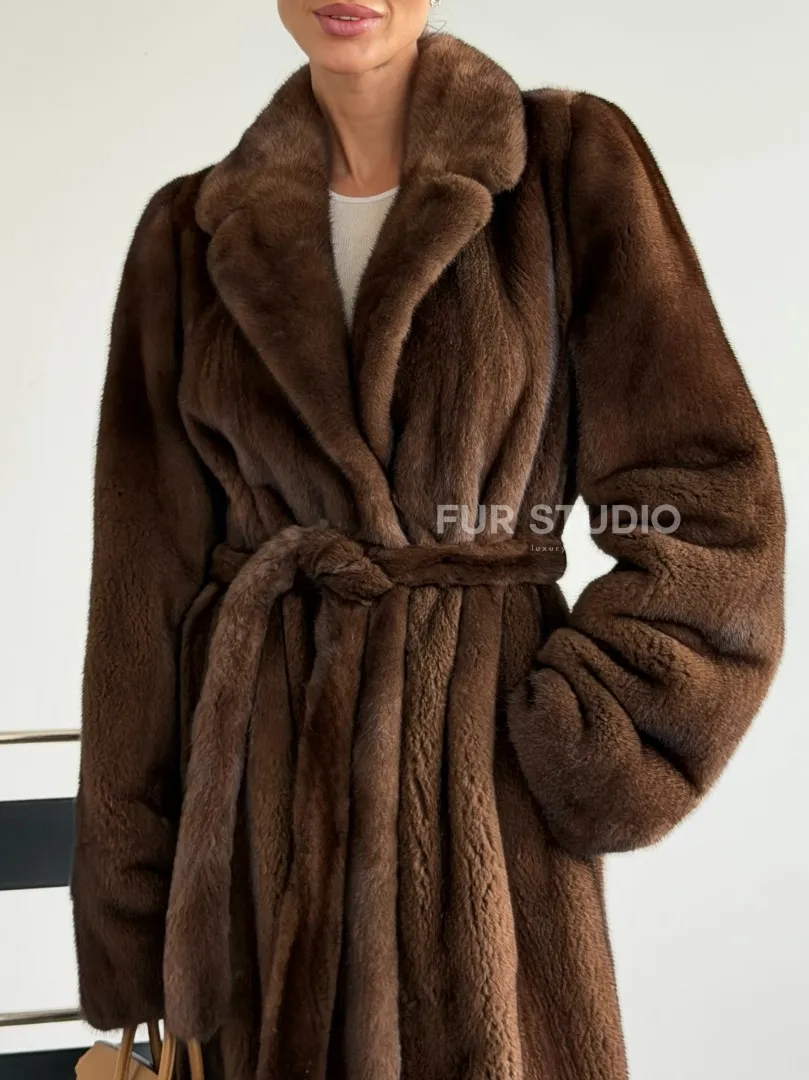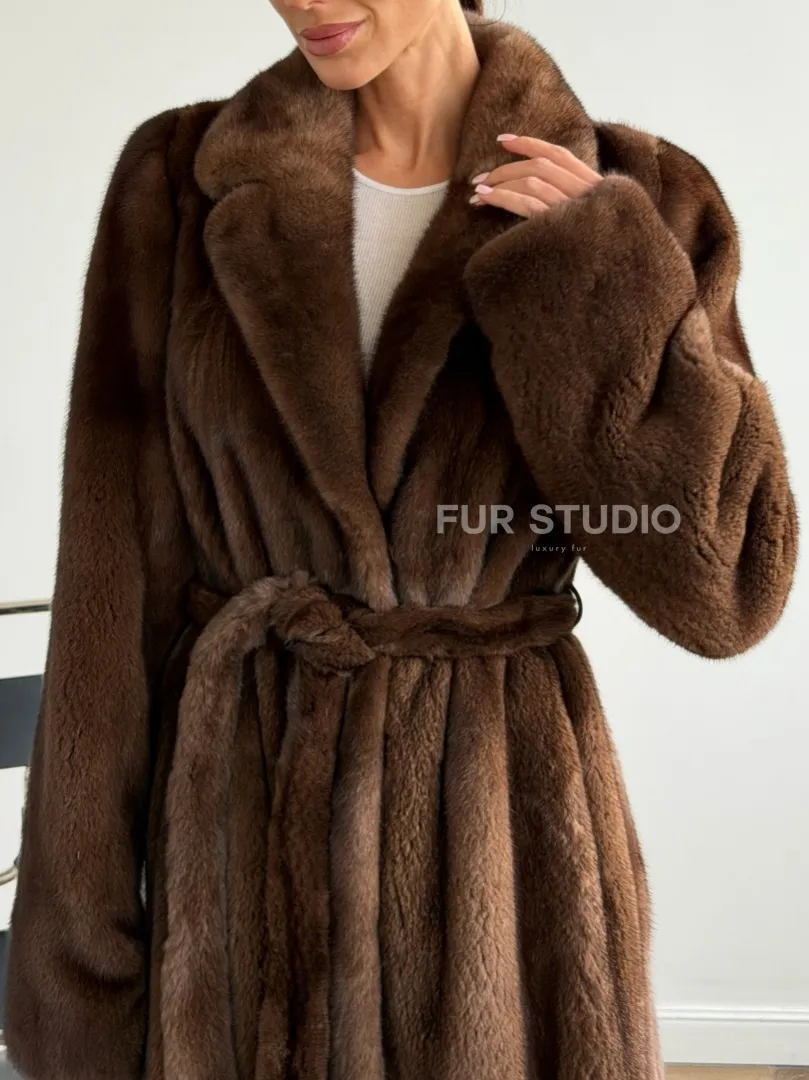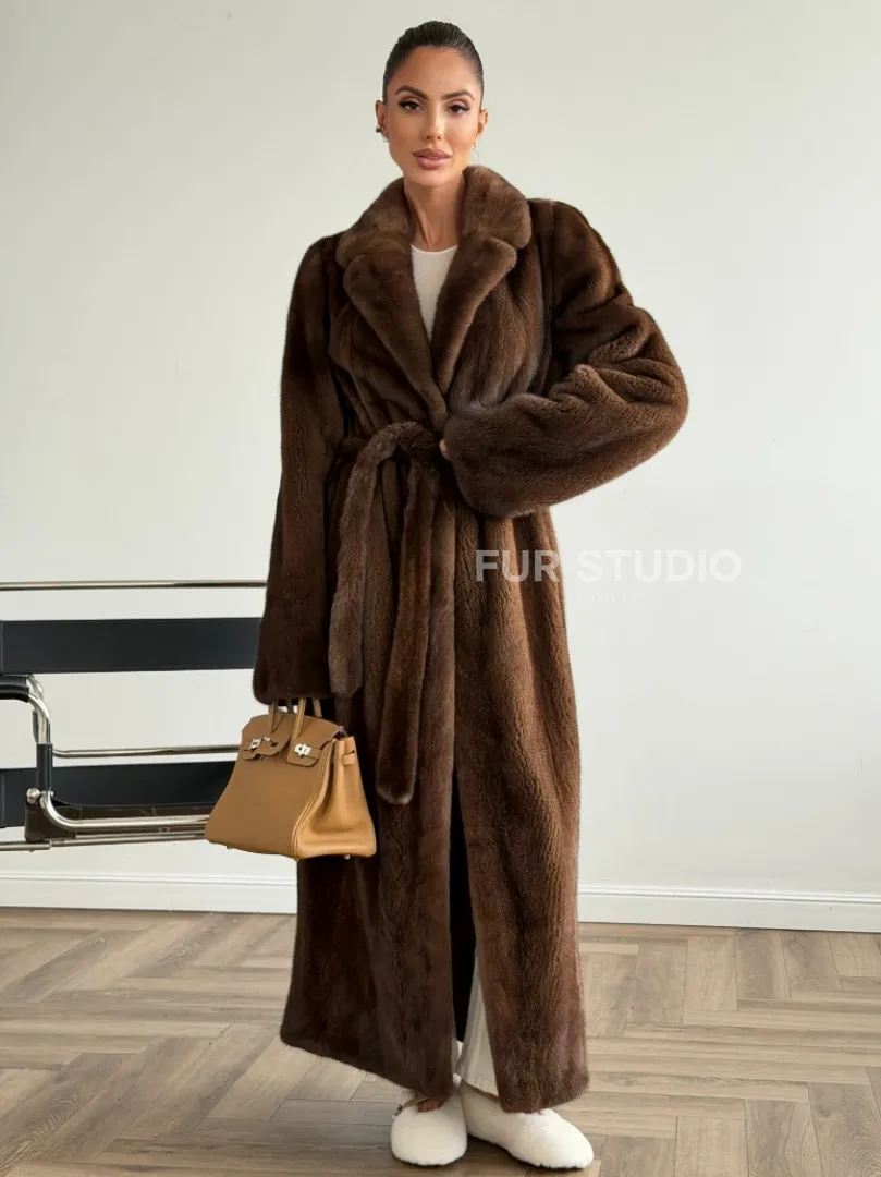 Прямая шуба из норки с поясом доступна для покупки в нашем шоуруме Furs Studio в Москве. У нас так же есть доставка во все города России. Добавьте немного роскоши в свой гардероб с этой шубой, которая будет служить вам многие годы.