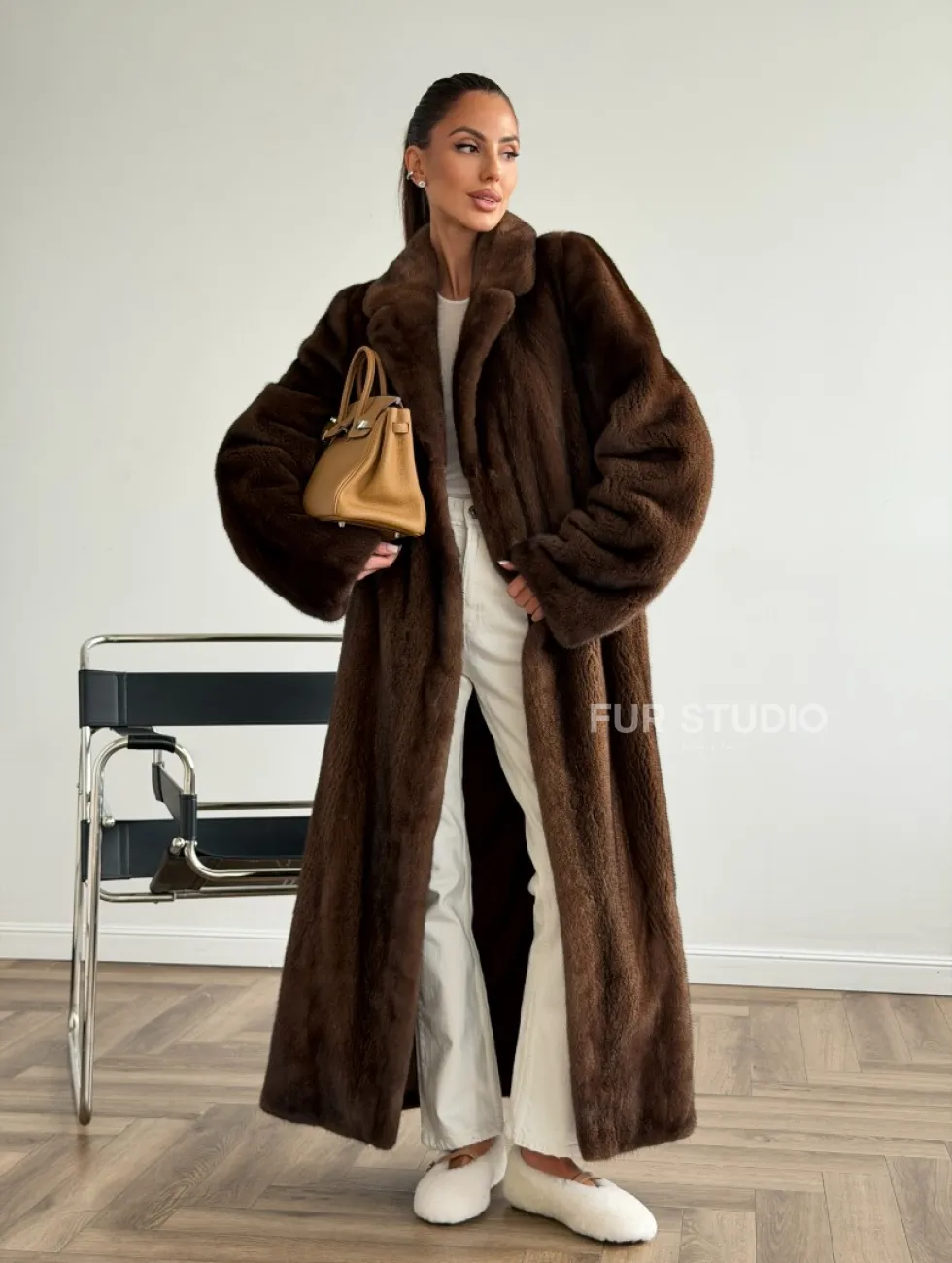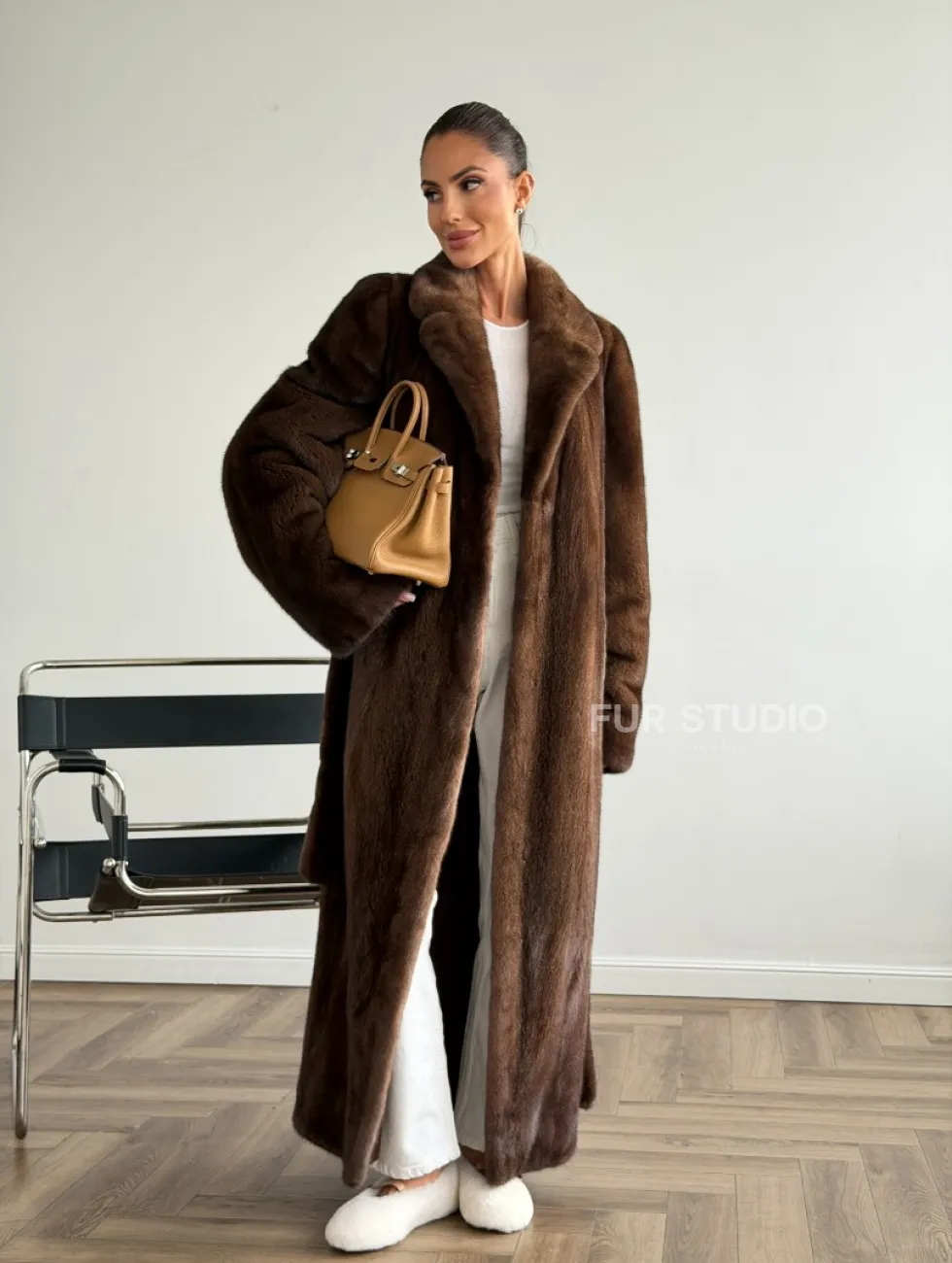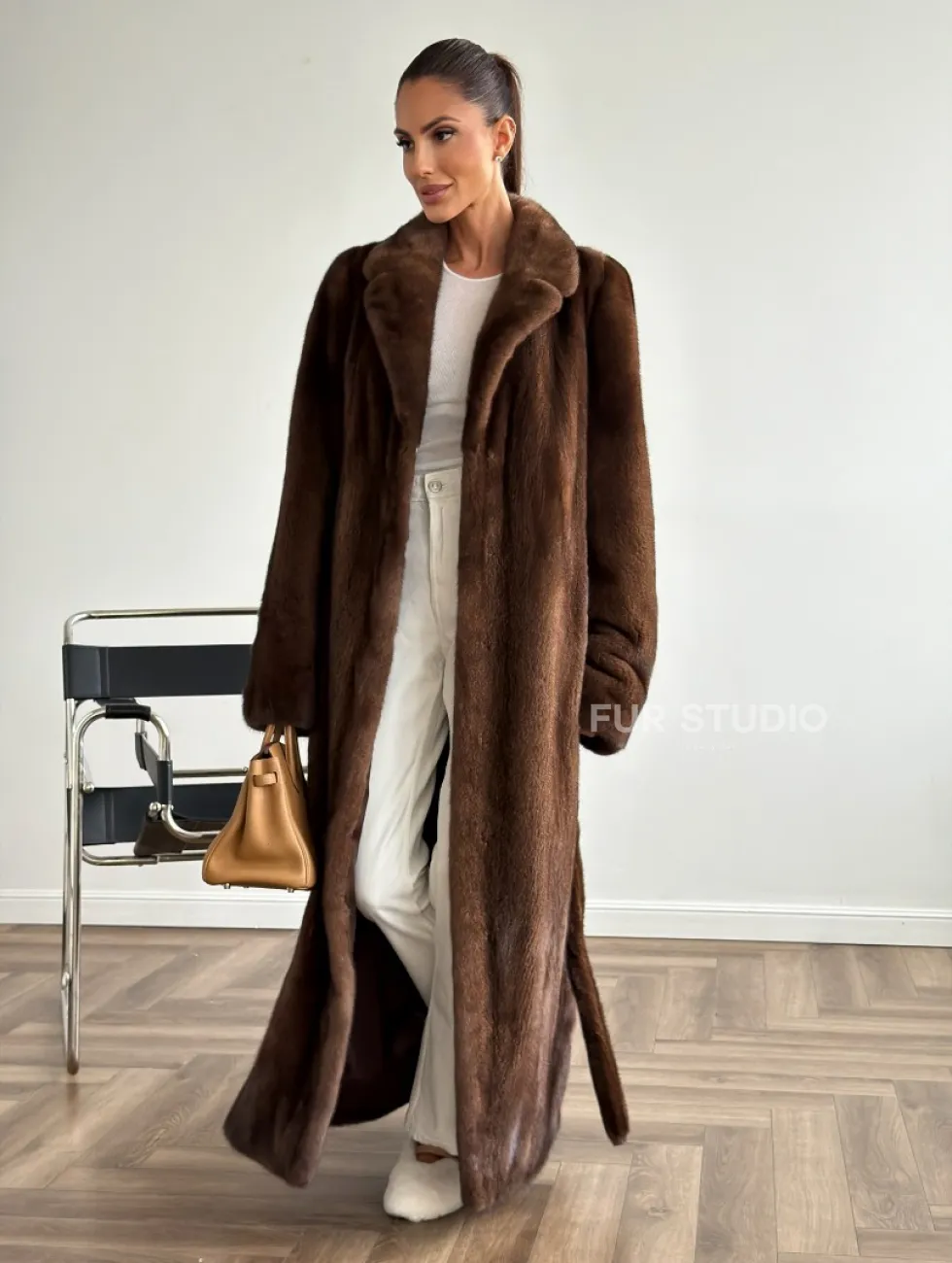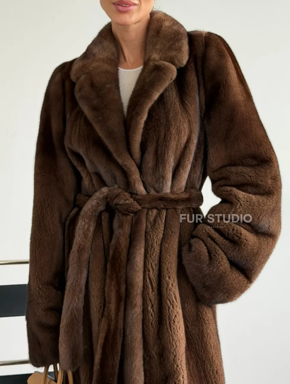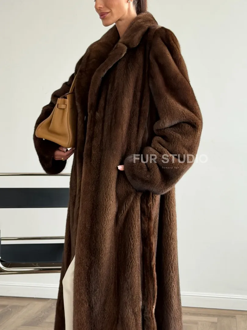 Прямая шуба из норки с поясом доступна для покупки в нашем шоуруме Furs Studio в Москве. У нас так же есть доставка во все города России. Добавьте немного роскоши в свой гардероб с этой шубой, которая будет служить вам многие годы.