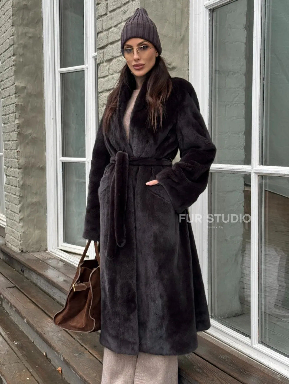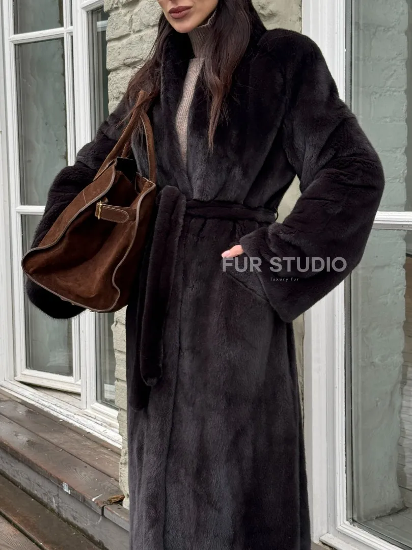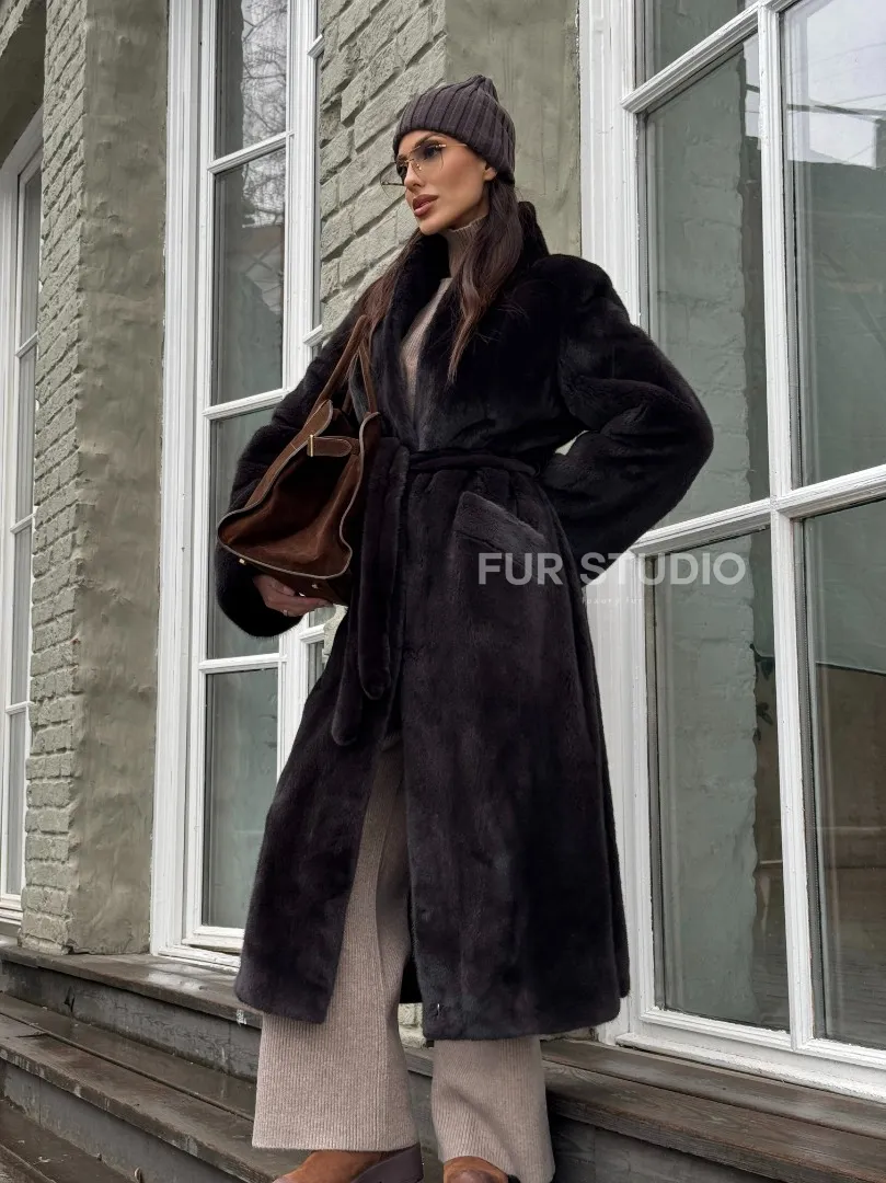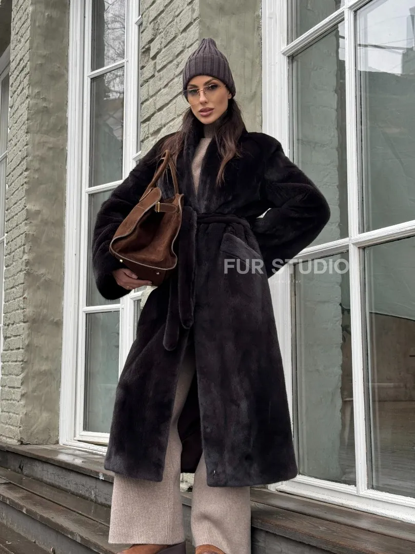 Роскошная шуба из аукционной норки Premium Velvet с V-образным воротником и меховым поясом - горький шоколад доступна для покупки в нашем шоуруме Furs Studio в Москве. У нас так же есть доставка во все города России. Добавьте немного роскоши в свой гардероб с этой шубой, которая будет служить вам многие годы.