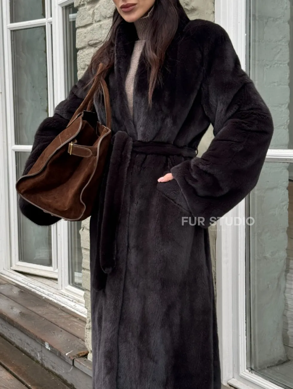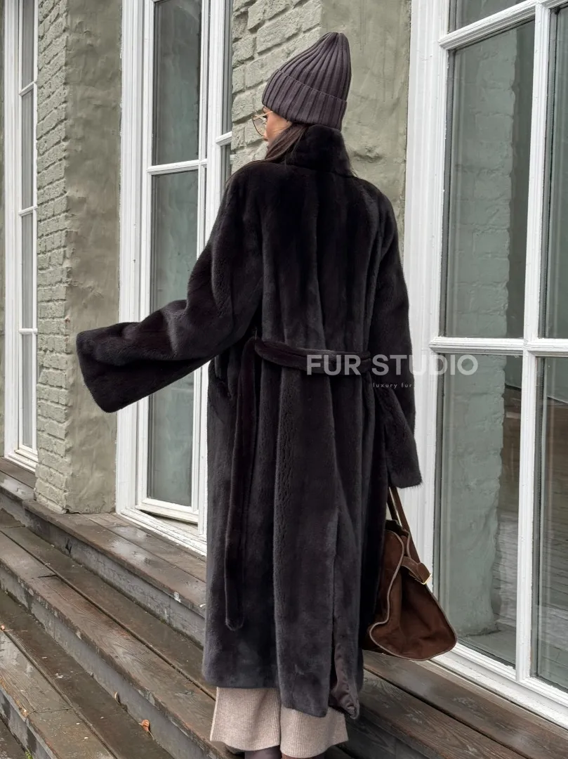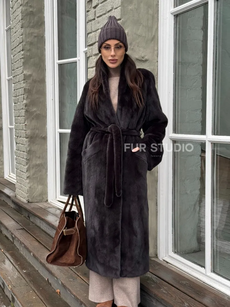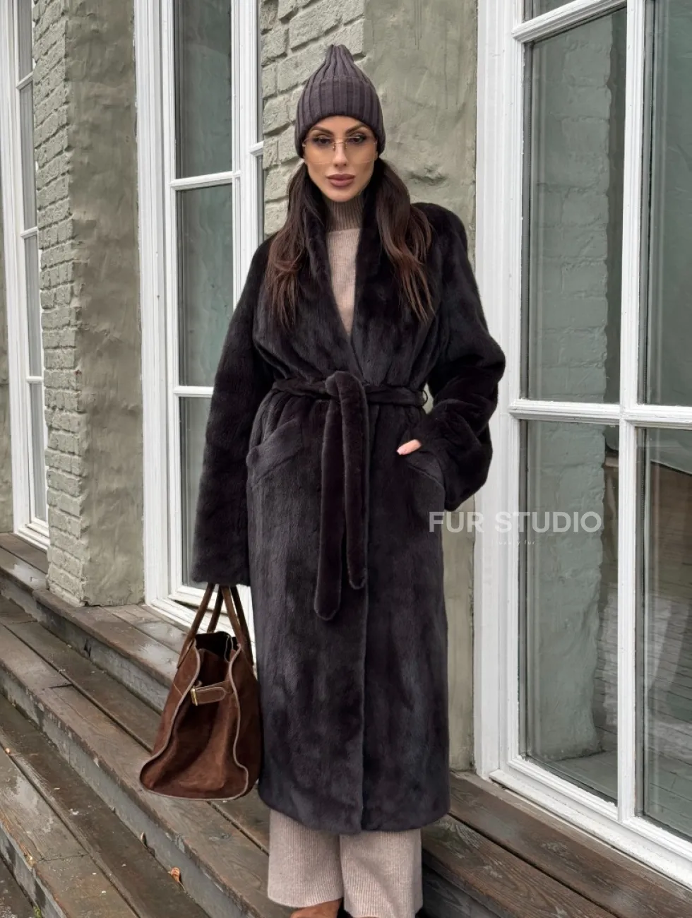 Роскошная шуба из аукционной норки Premium Velvet с V-образным воротником и меховым поясом - горький шоколад доступна для покупки в нашем шоуруме Furs Studio в Москве. У нас так же есть доставка во все города России. Добавьте немного роскоши в свой гардероб с этой шубой, которая будет служить вам многие годы.