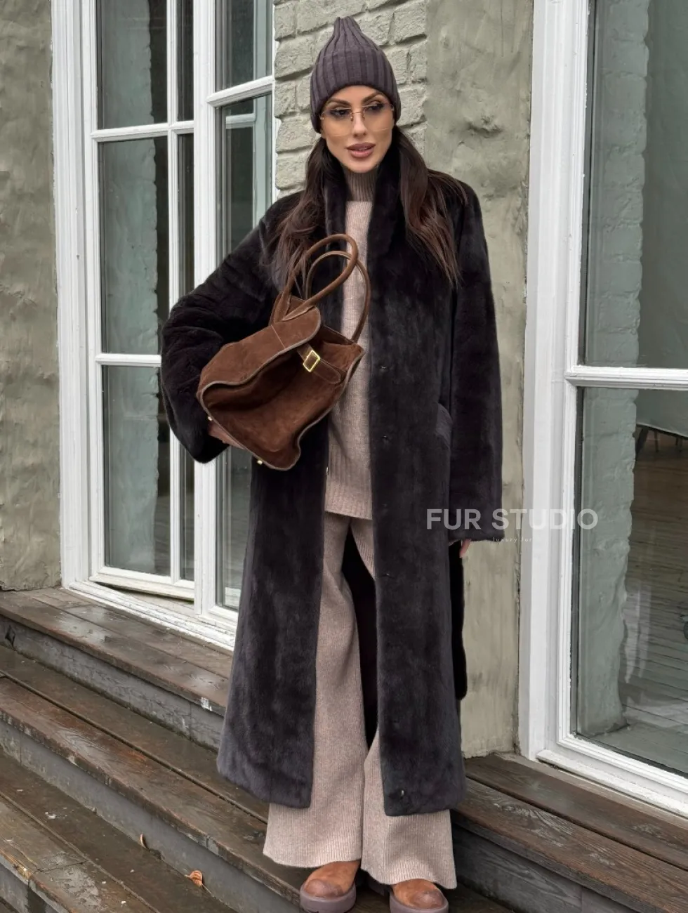 Мех данной шубы аукционная норка , цвет коричневый. Предлагается в размерах от 42 до 52. Длина модели 115-120 см , что выгодно подчеркивает фигуру девушек. Эта модель идеально подойдет для девушек и женщин, предпочитающих роскошные натуральные меха.