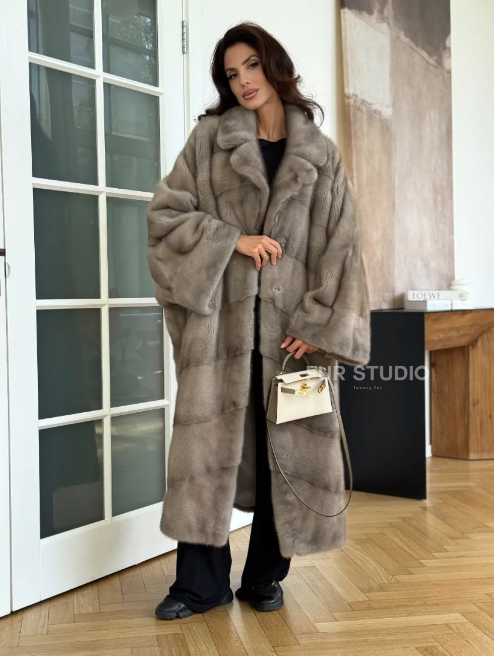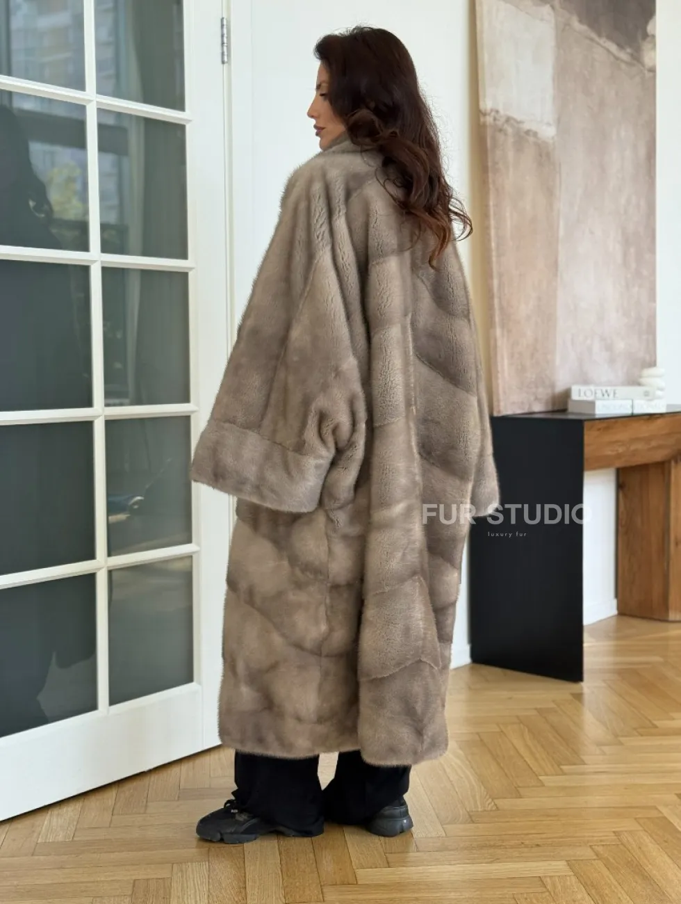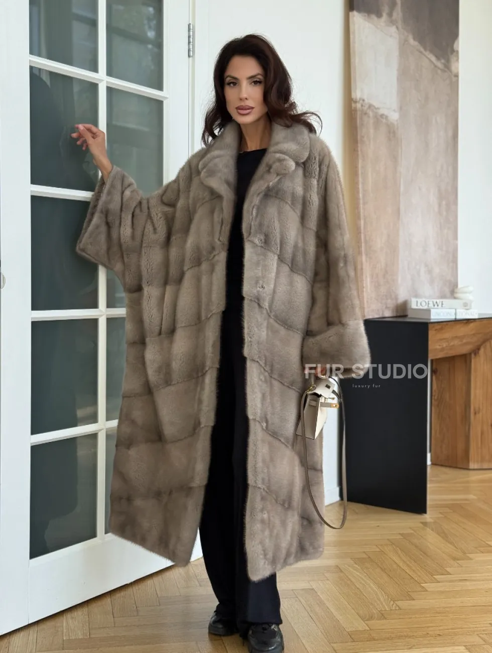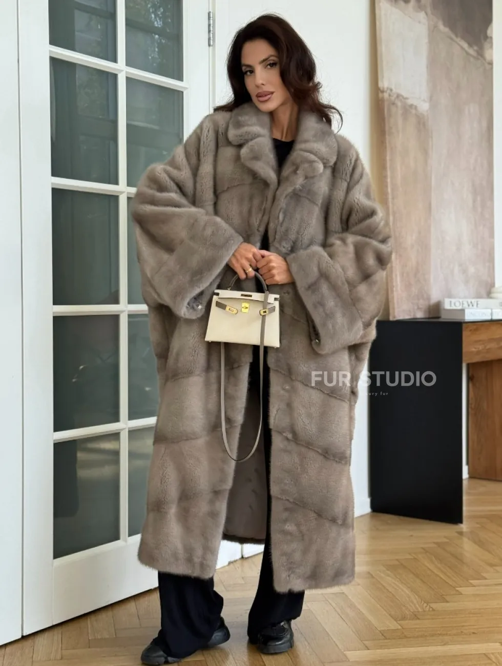 Мех данной шубы аукционная норка, цвет серый. Предлагается в размерах от 42 до 66. Длина модели 120-125 см, что выгодно подчеркивает фигуру девушек. Эта модель идеально подойдет для девушек и женщин, предпочитающих роскошные натуральные меха.