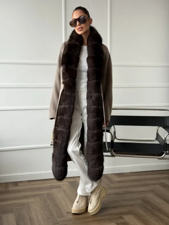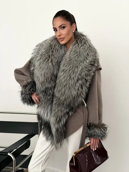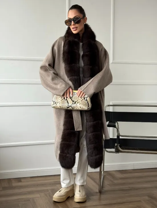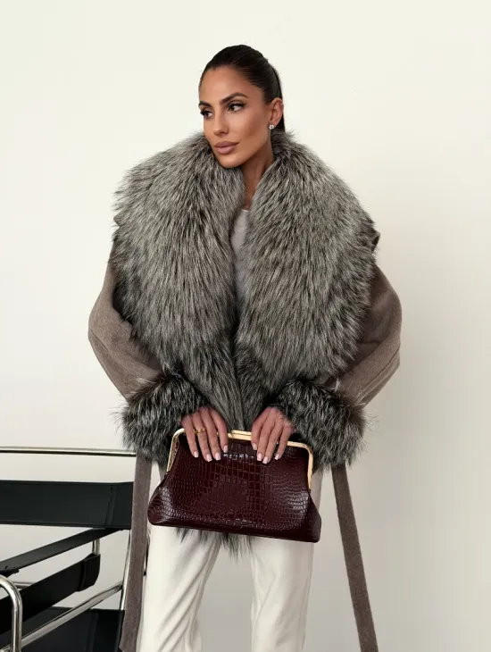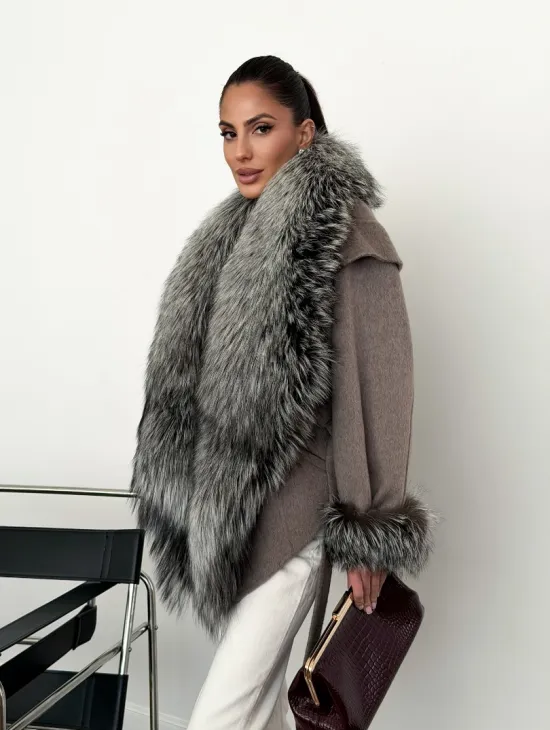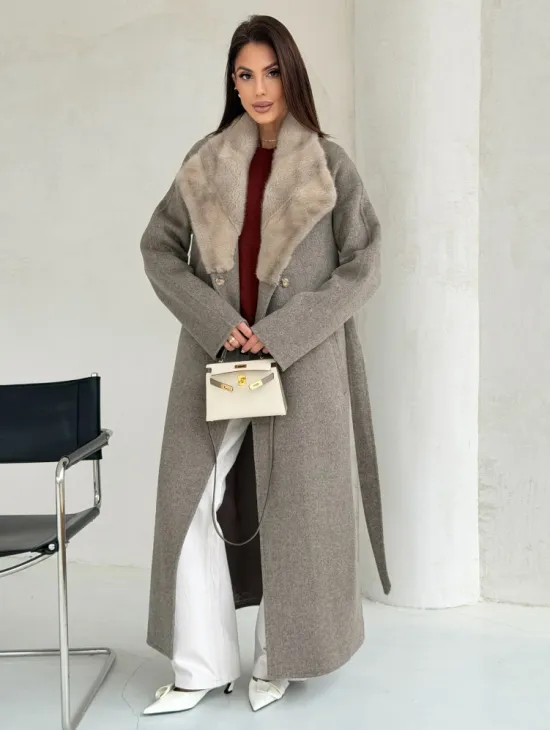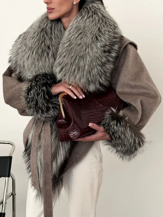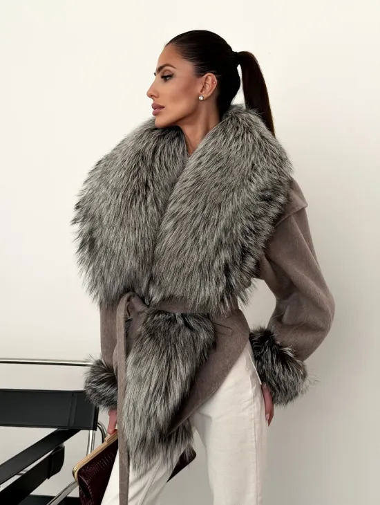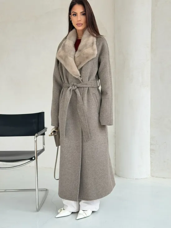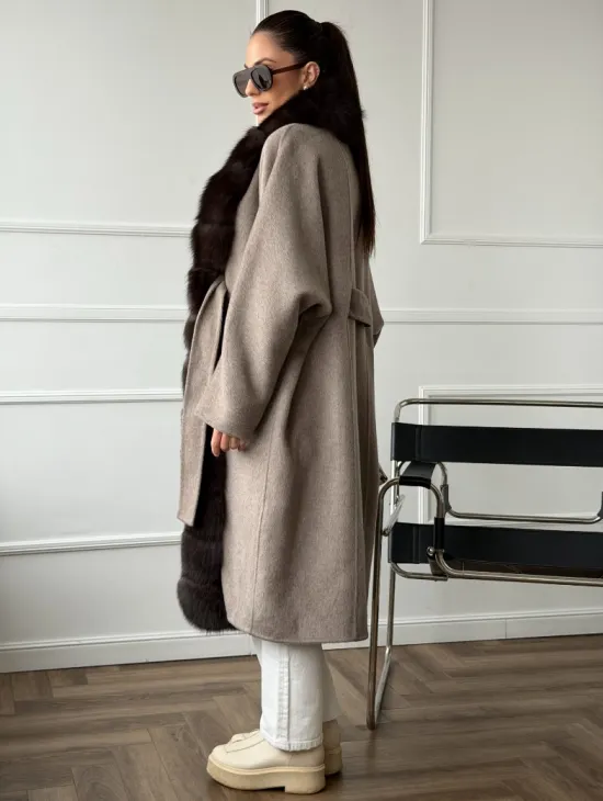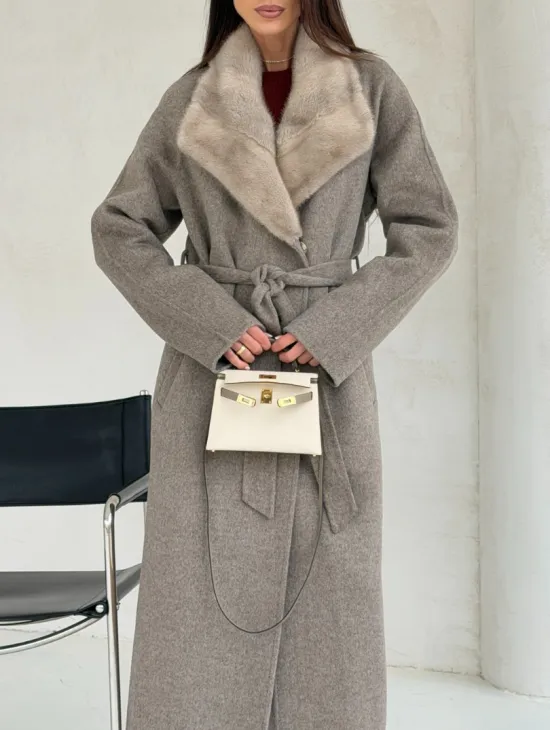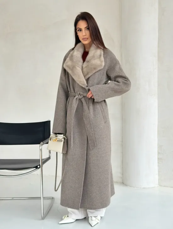 Шерстяная женская куртка с отделкой из меха норки 101852