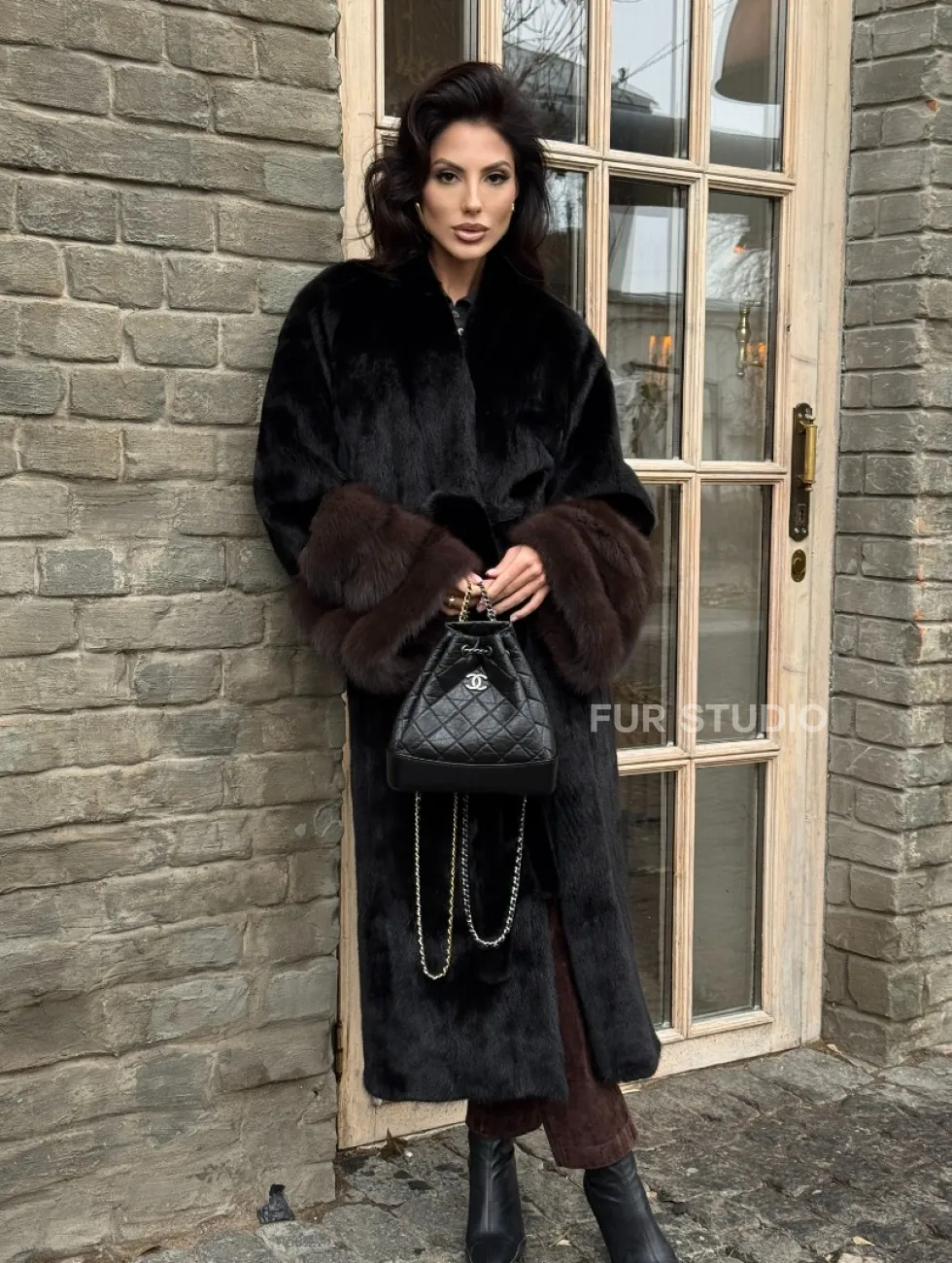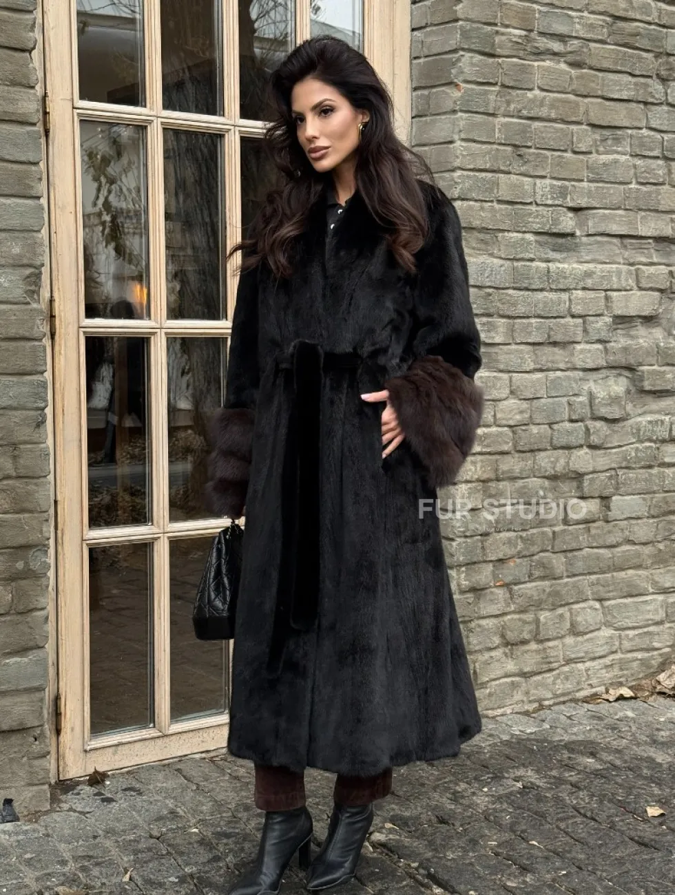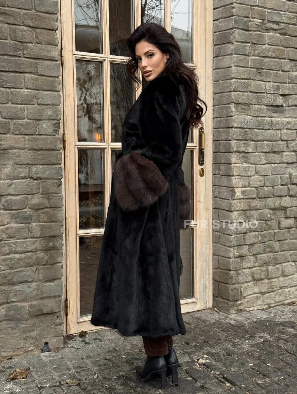 Шикарная черная норковая шуба с меховыми манжетами из куницы доступна для покупки в нашем шоуруме Furs Studio в Москве. У нас так же есть доставка во все города России. Добавьте немного роскоши в свой гардероб с этой шубой, которая будет служить вам многие годы.