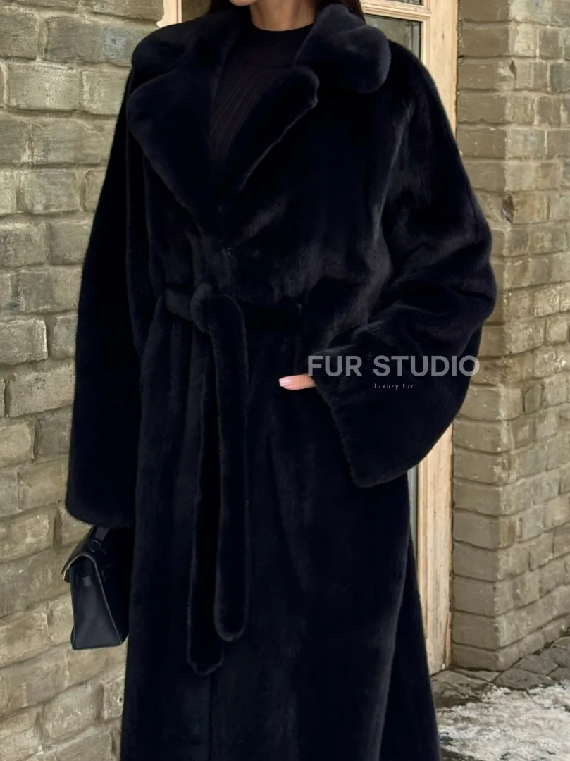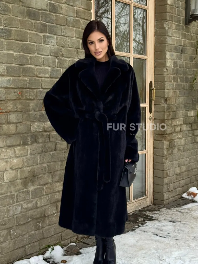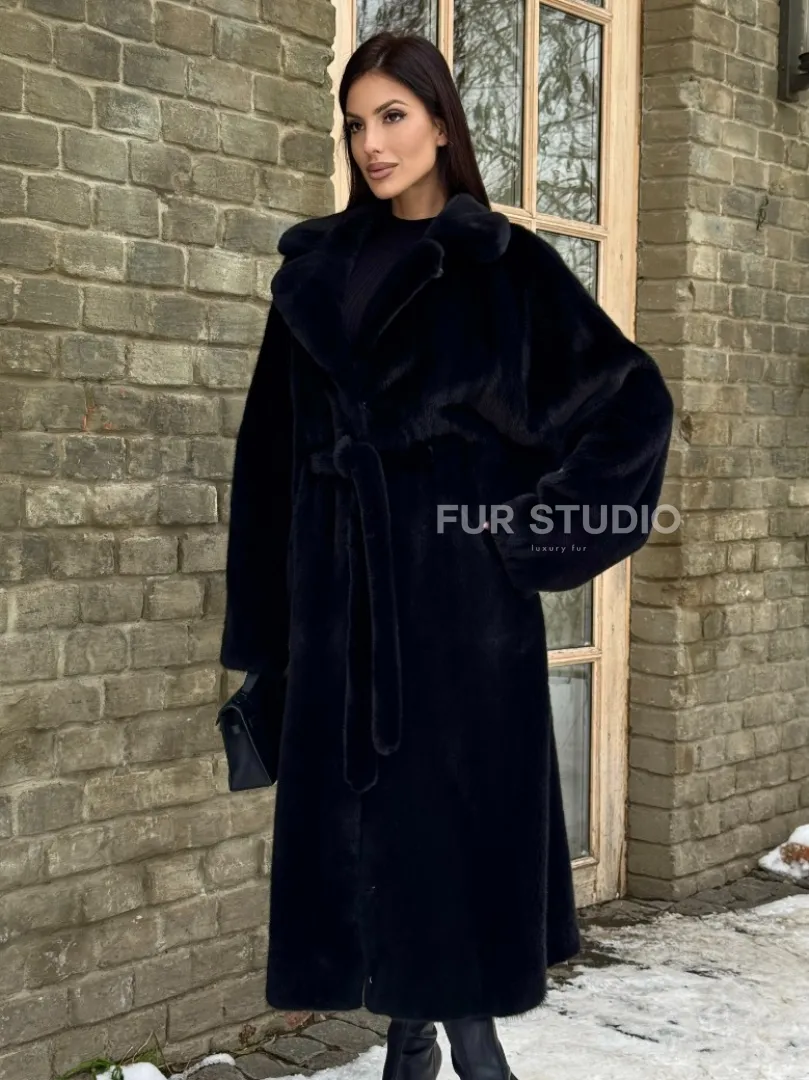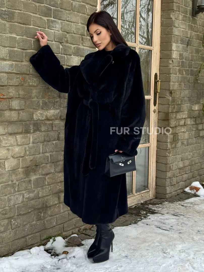 Мех данной шубы аукционная норка , цвет черный. Предлагается в размерах от 42 до 54. Длина модели 115-120 см, что выгодно подчеркивает фигуру девушек. Эта модель идеально подойдет для девушек и женщин, предпочитающих роскошные натуральные меха.