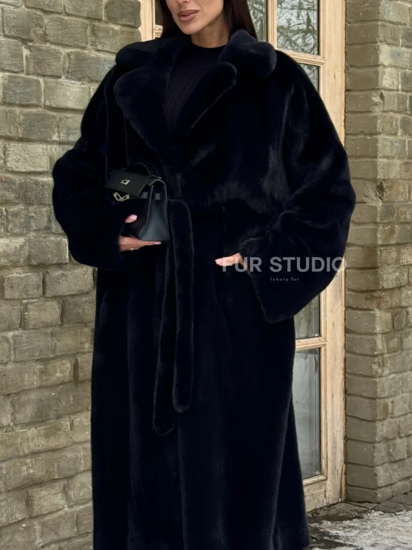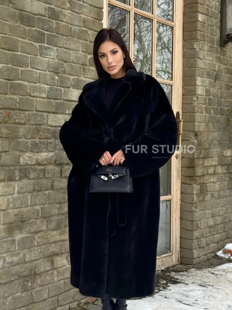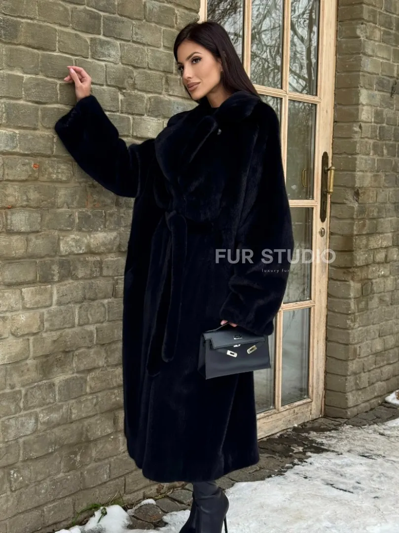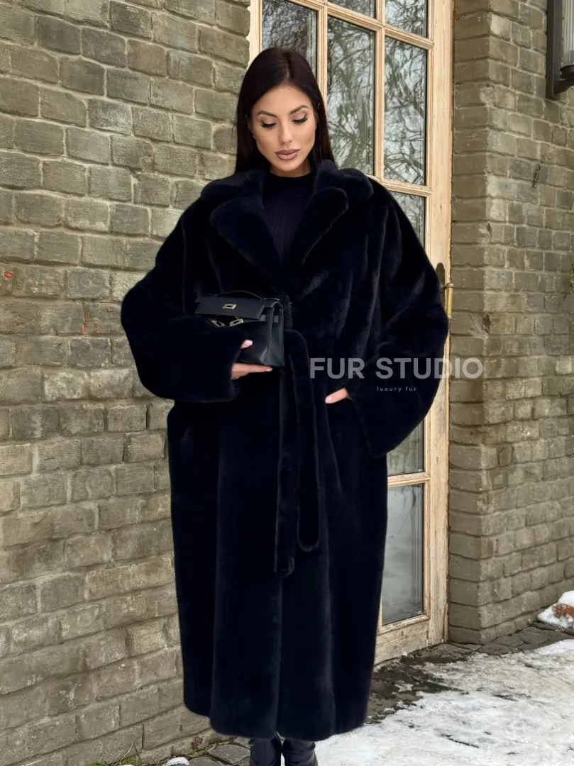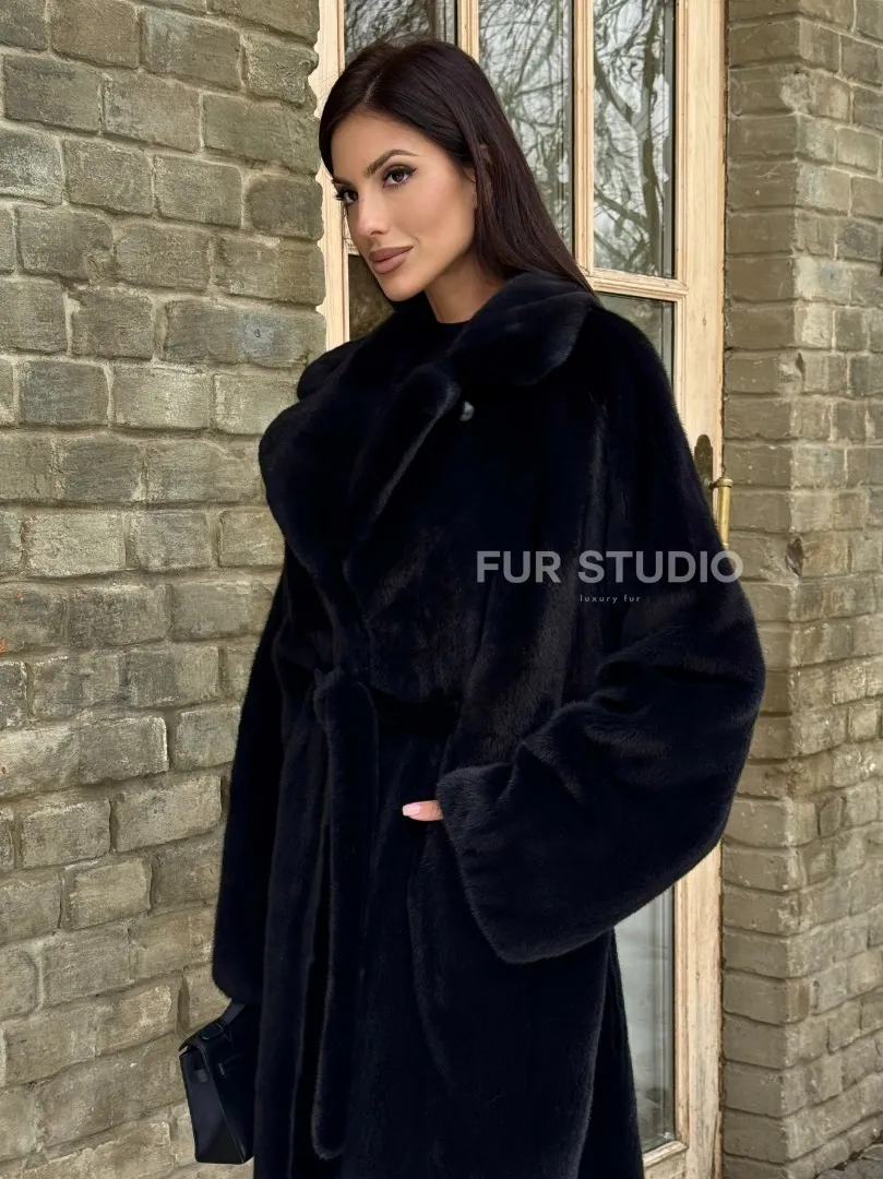 Мех данной шубы аукционная норка , цвет черный. Предлагается в размерах от 42 до 54. Длина модели 115-120 см, что выгодно подчеркивает фигуру девушек. Эта модель идеально подойдет для девушек и женщин, предпочитающих роскошные натуральные меха.