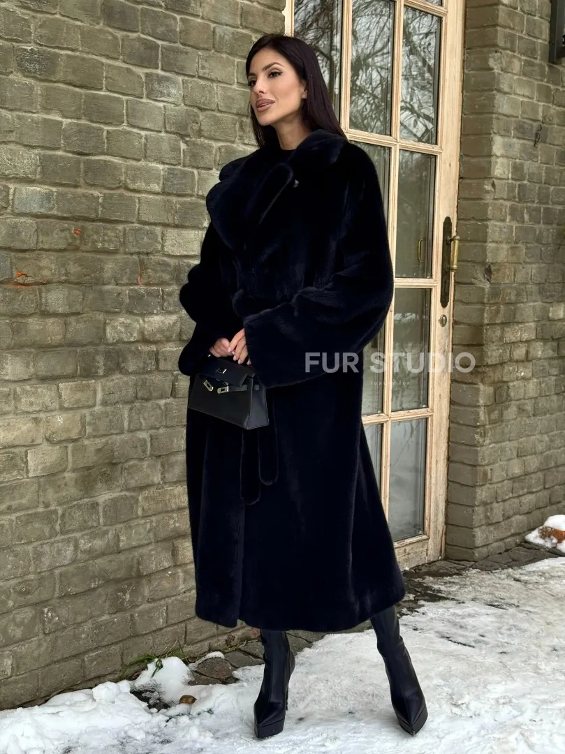 Шикарное норковое кимоно с английским воротником в черно-синем цвете доступна для покупки в нашем шоуруме Furs Studio в Москве. У нас так же есть доставка во все города России. Добавьте немного роскоши в свой гардероб с этой шубой, которая будет служить вам многие годы.