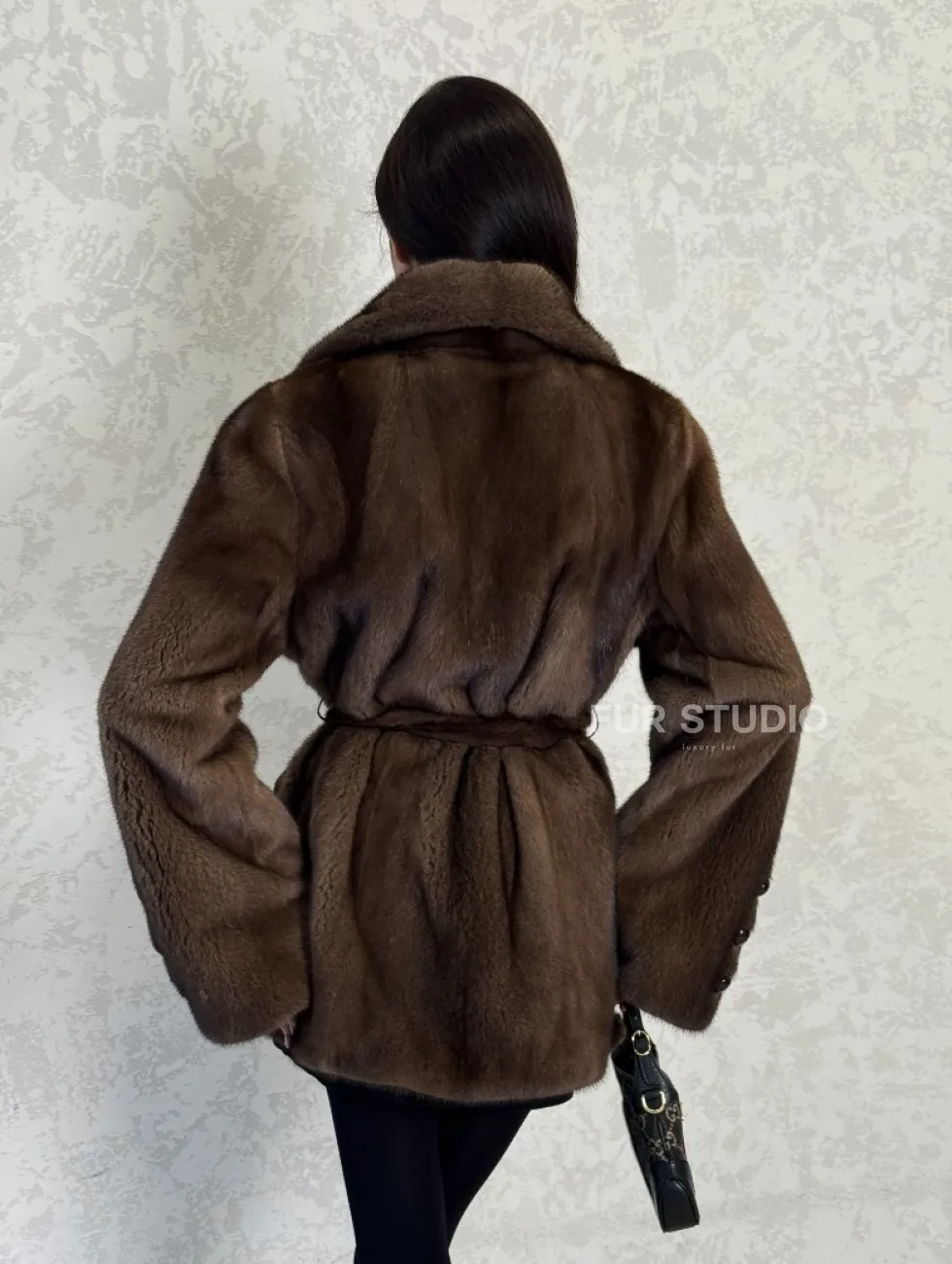 Мех данной шубы аукционная норка , цвет коричневый. Предлагается в размерах от 42 до 50. Длина модели 70-75 см, что выгодно подчеркивает фигуру девушек. Эта модель идеально подойдет для девушек и женщин, предпочитающих роскошные натуральные меха.