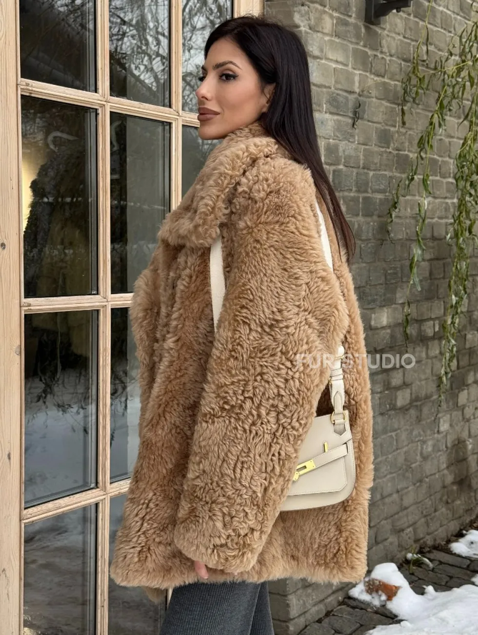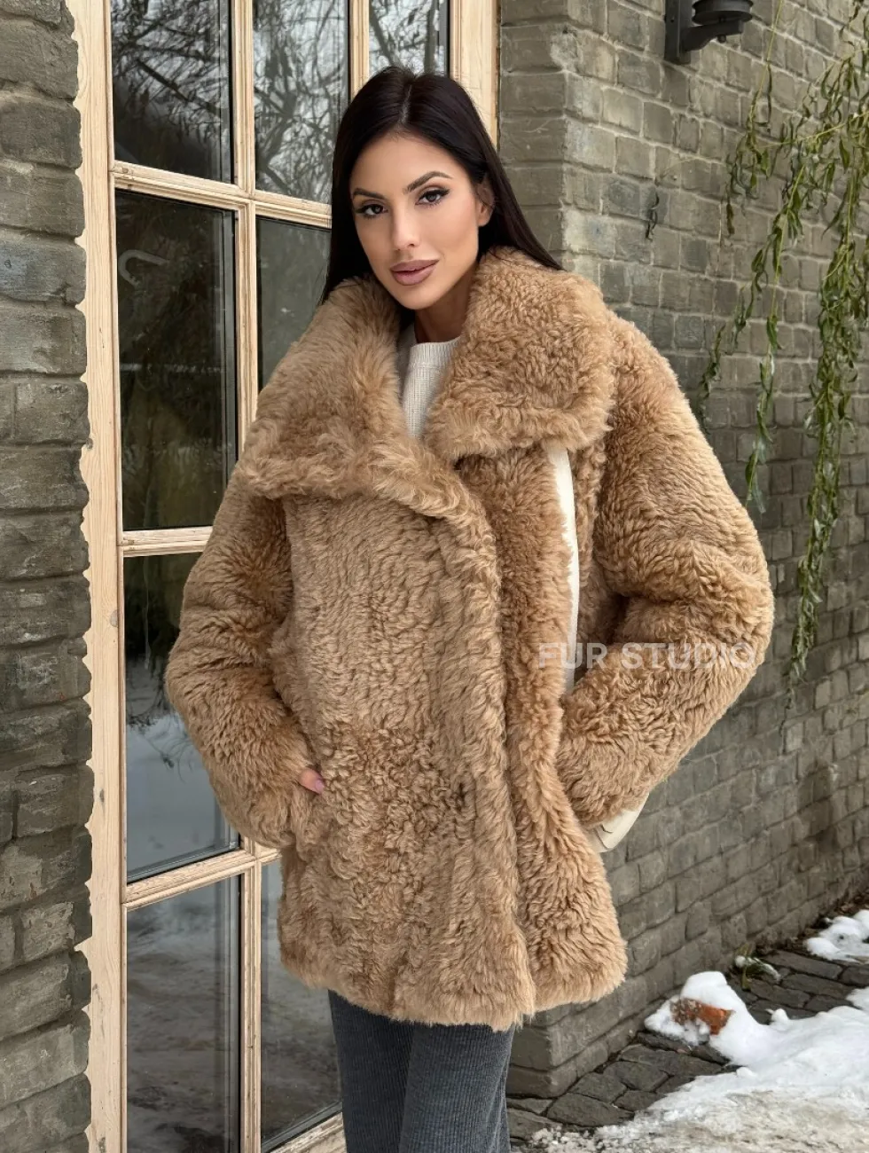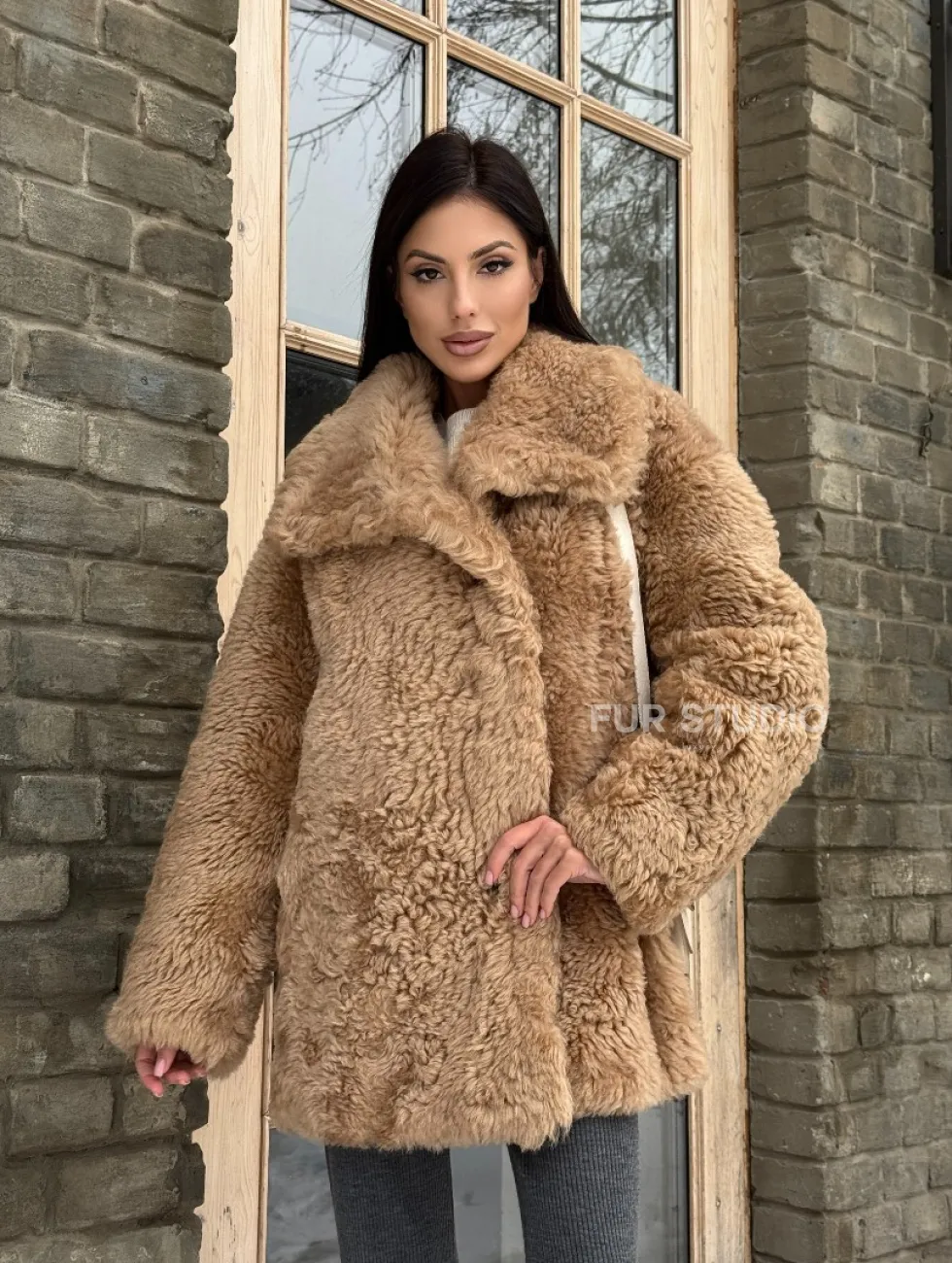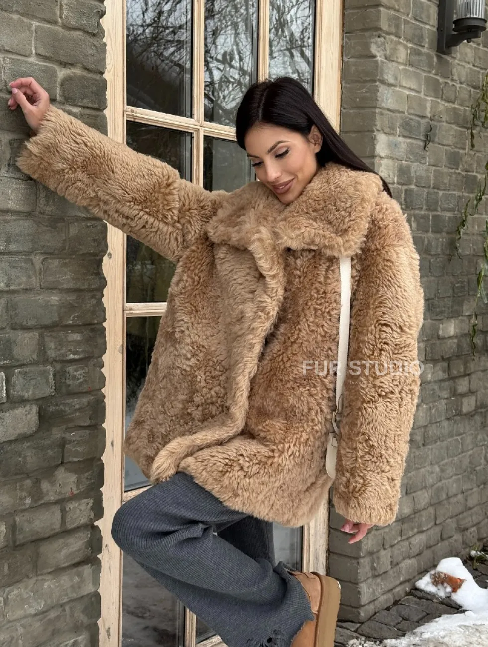 Шуба - дубленка из овчины в бежевом цвете доступна для покупки в нашем шоуруме Furs Studio в Москве, а также предлагается удобная доставка во все города России. Обогатите свой гардероб этой дубленкой, которая прослужит вам многие годы, добавив немного роскоши в ваш повседневный образ.